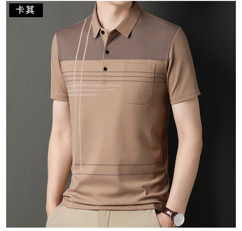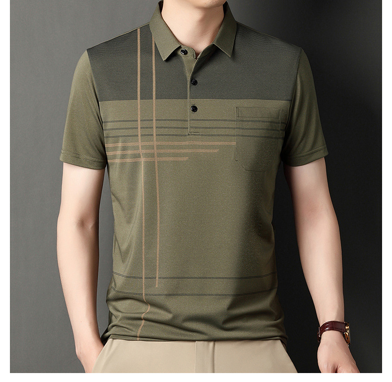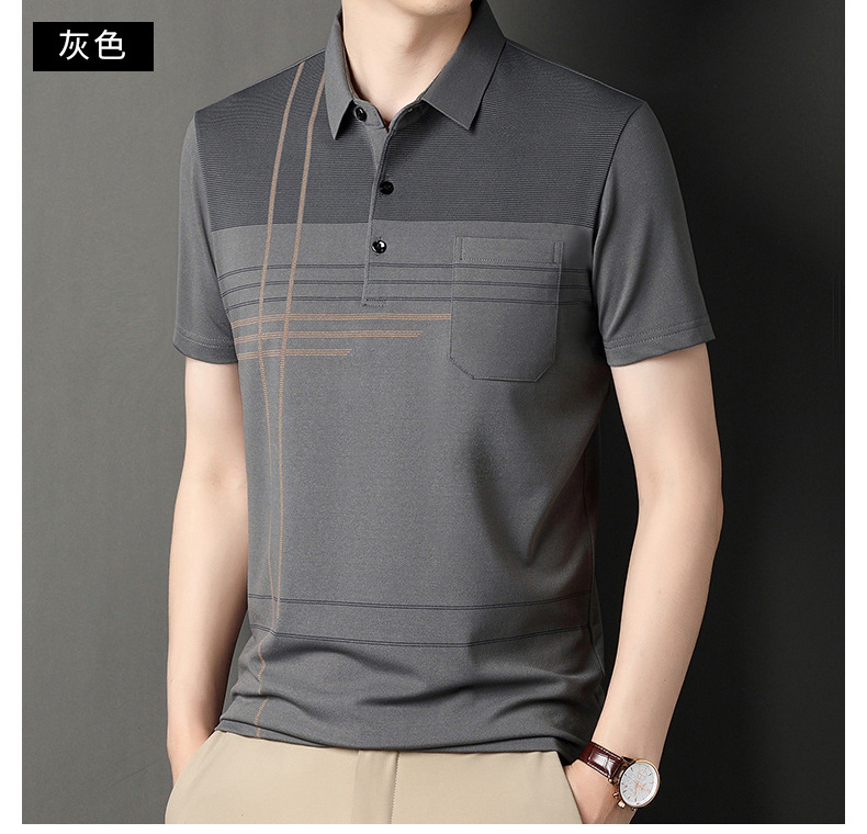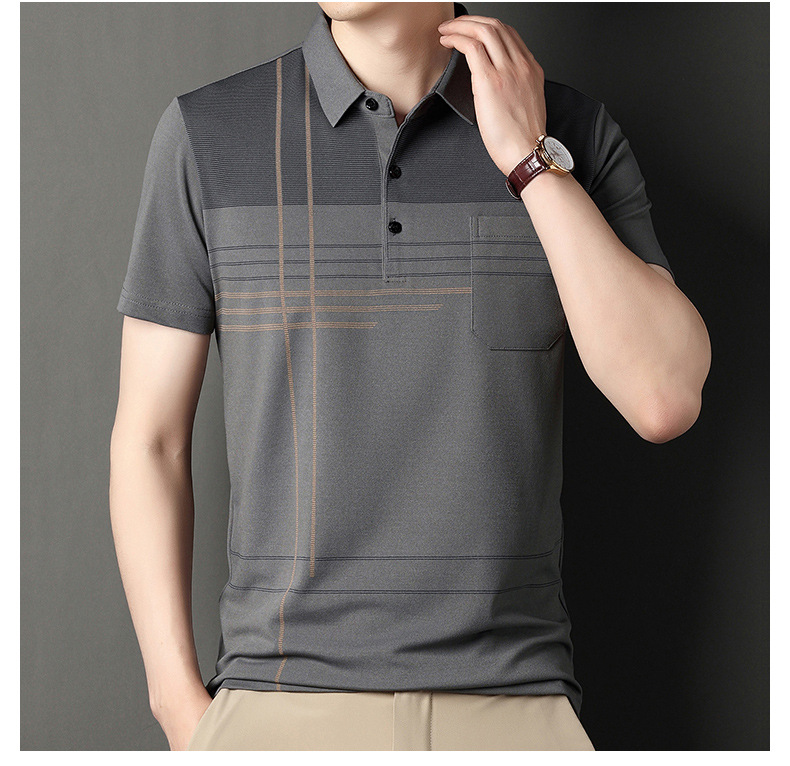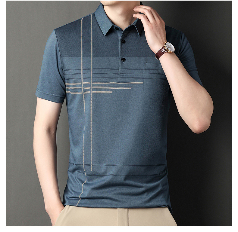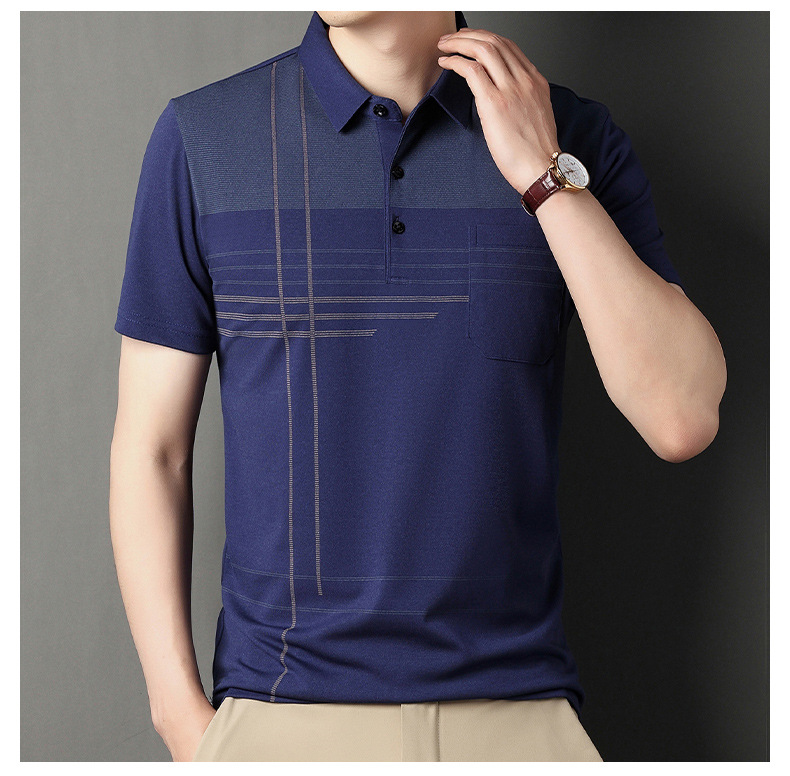 머서리화 된면 피부 친화적 인 통기성 항균 반팔 티셔츠 남성용 진짜 포켓 폴로 반팔 가벼운 럭셔리 레저 스포츠 티셔츠
