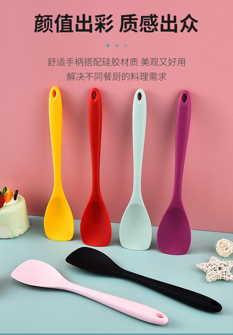 식품 학년 실리콘 샐러드 삽 통합 올인원 플랫 삽 교반 삽 샐러드 스푼 베이킹 도구