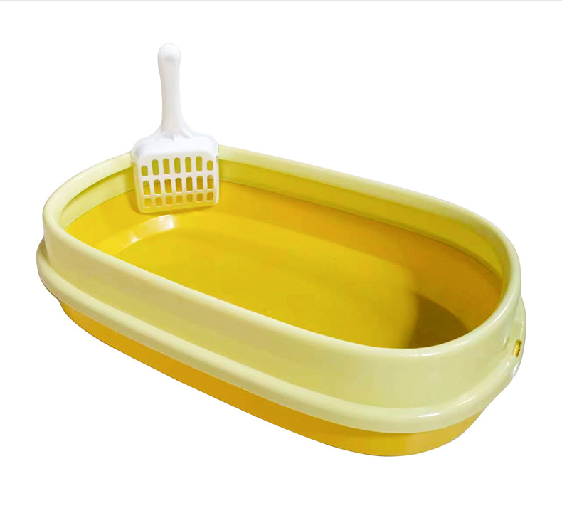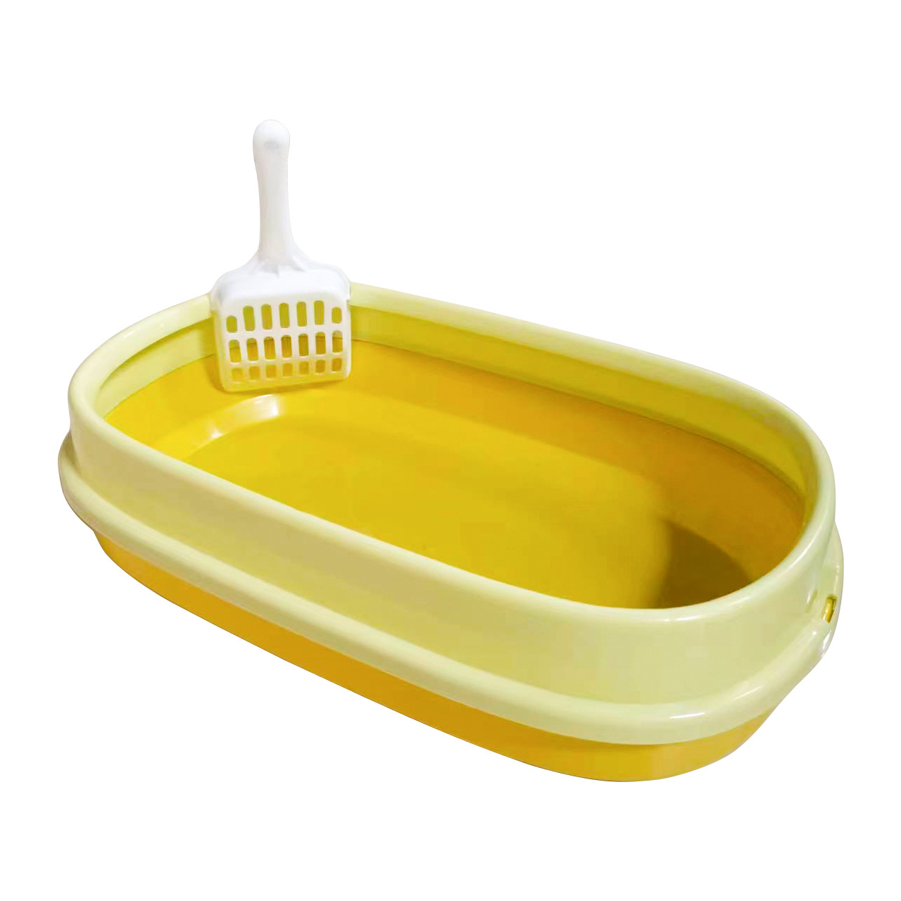 삽과 함께 열린 고양이 쓰레기 상자 매체 (노란색)