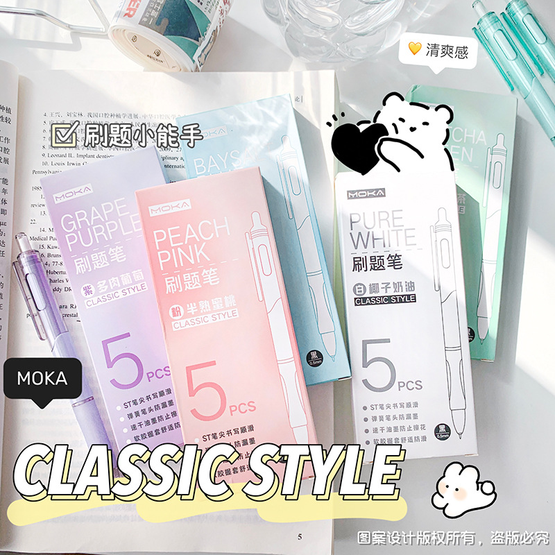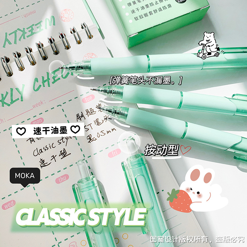 0.5mm 고급스러운 ST 헤드 푸시형 젤 펜 검정색 수성펜 학생용 필기구 사무실 서명펜
