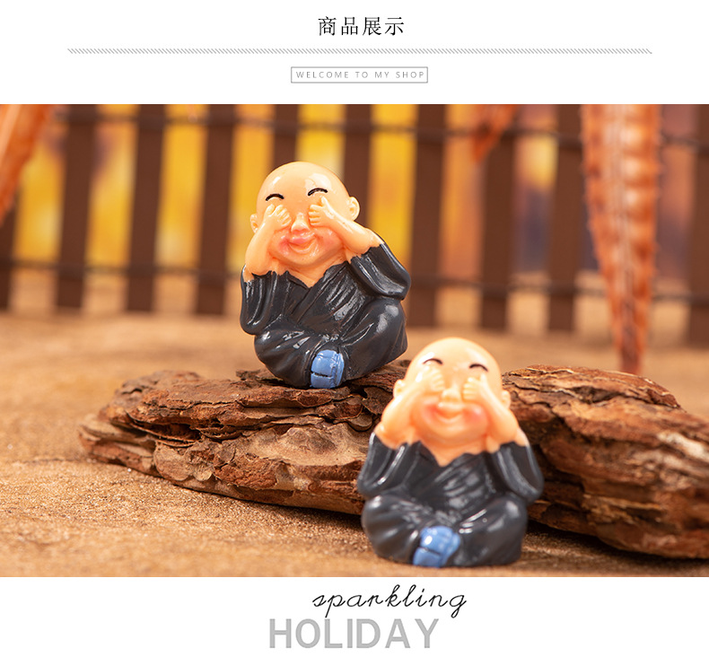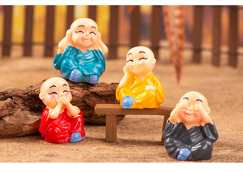 마이크로 풍경 창조적 인 조경 장식 작은 장식품 4 작은 스님 탁상 자동차 중앙 제어 장식 도매