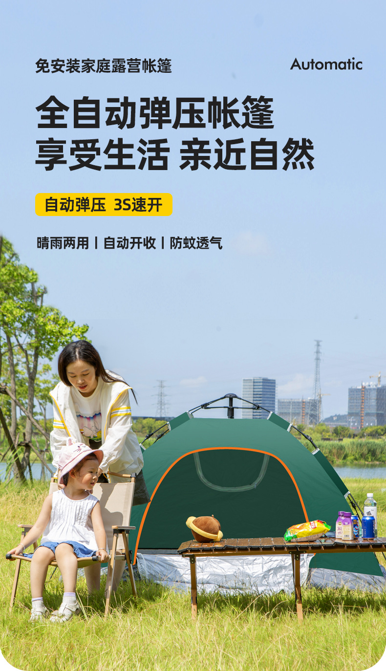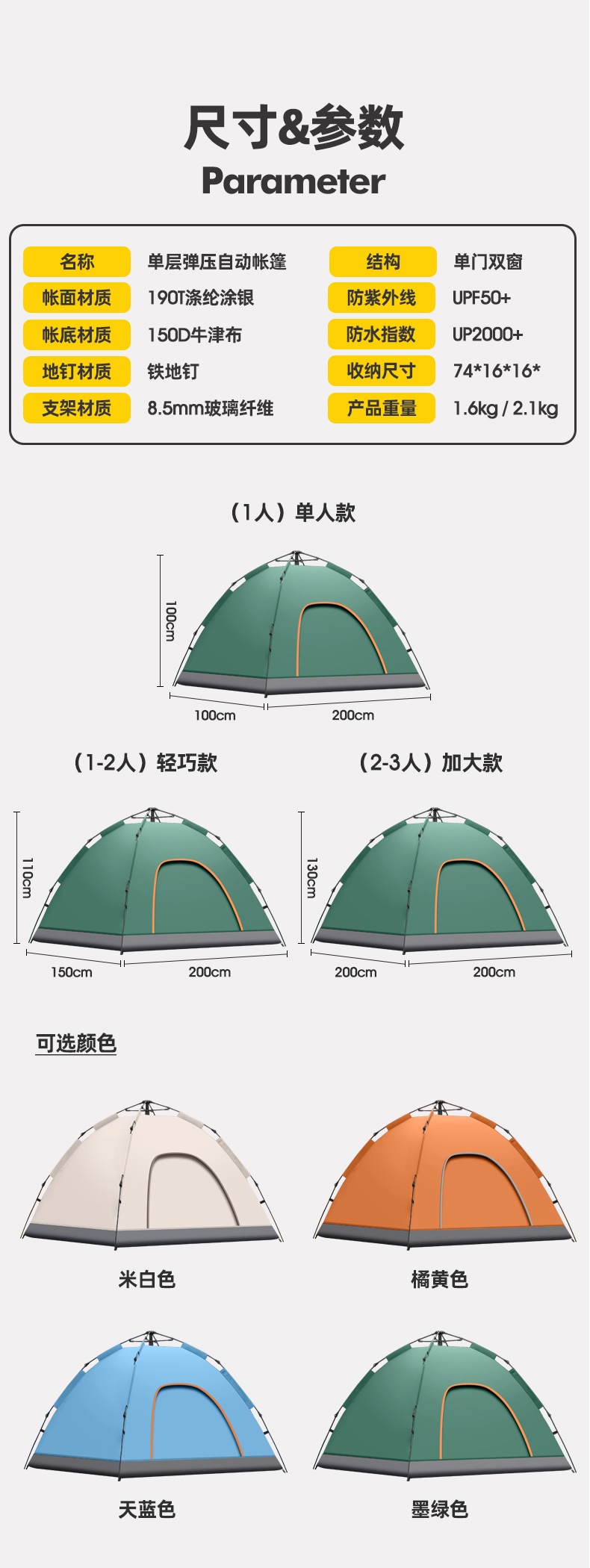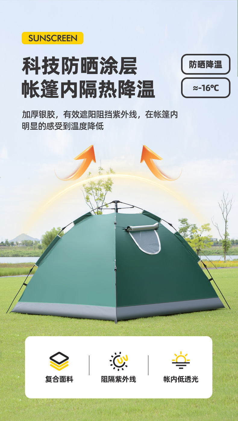공장 재고 야외 캠핑 텐트 2-3-4 명 완전 자동 텐트 빠른 개방 태양 보호 캠핑 텐트 캐노피