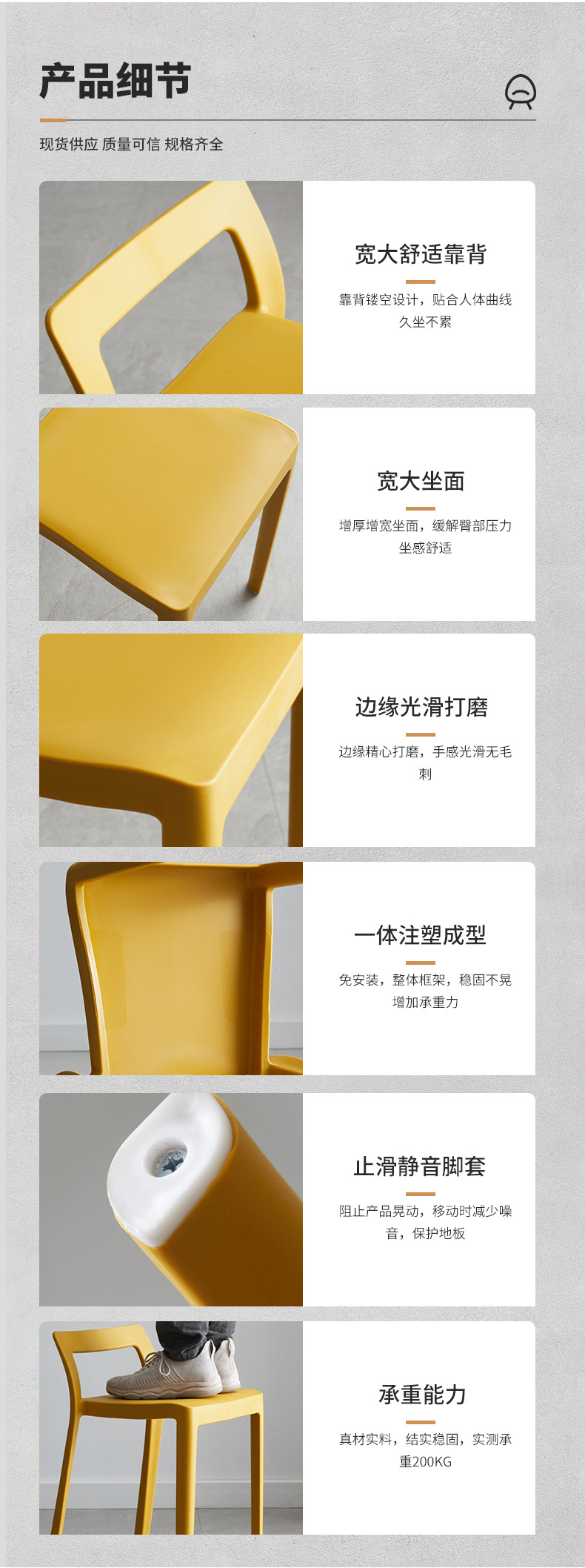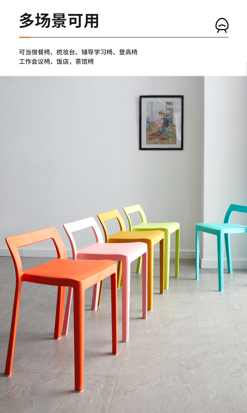 가정용 플라스틱 등받이 의자 두꺼운 성인 식탁 세련된 사각 의자 레스토랑 카페 대체 의자