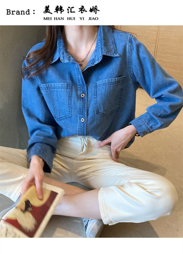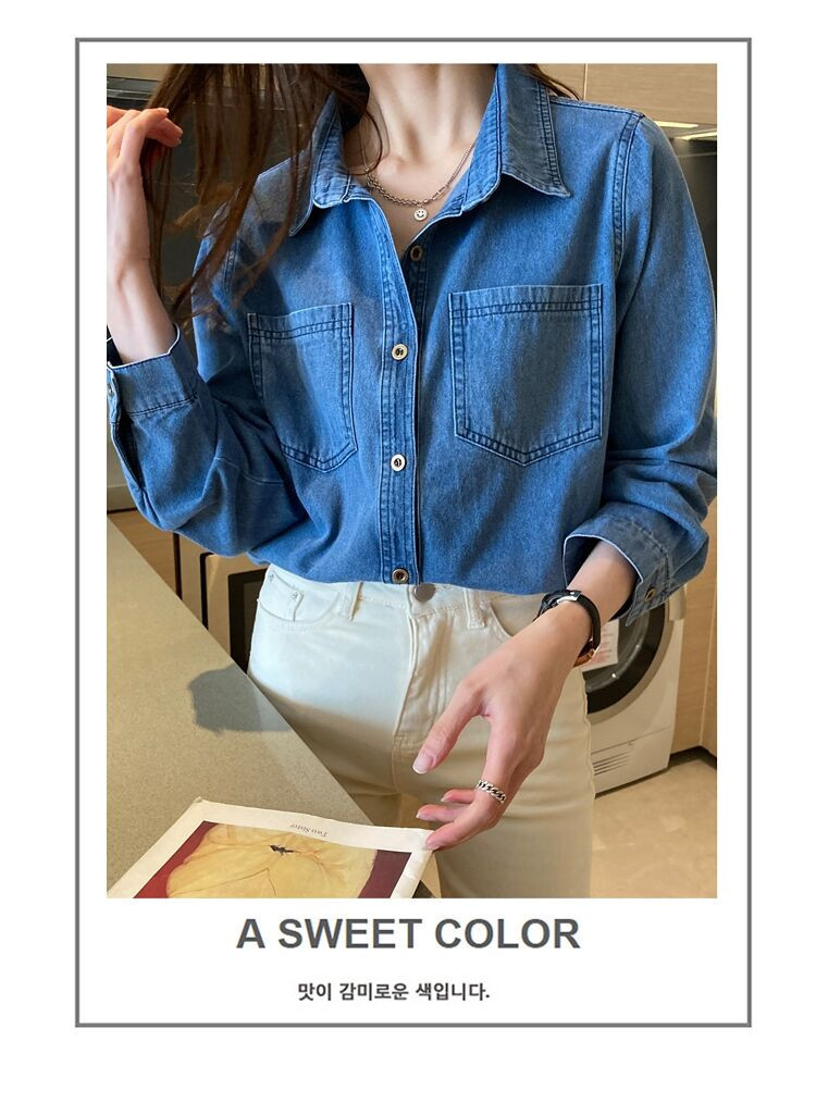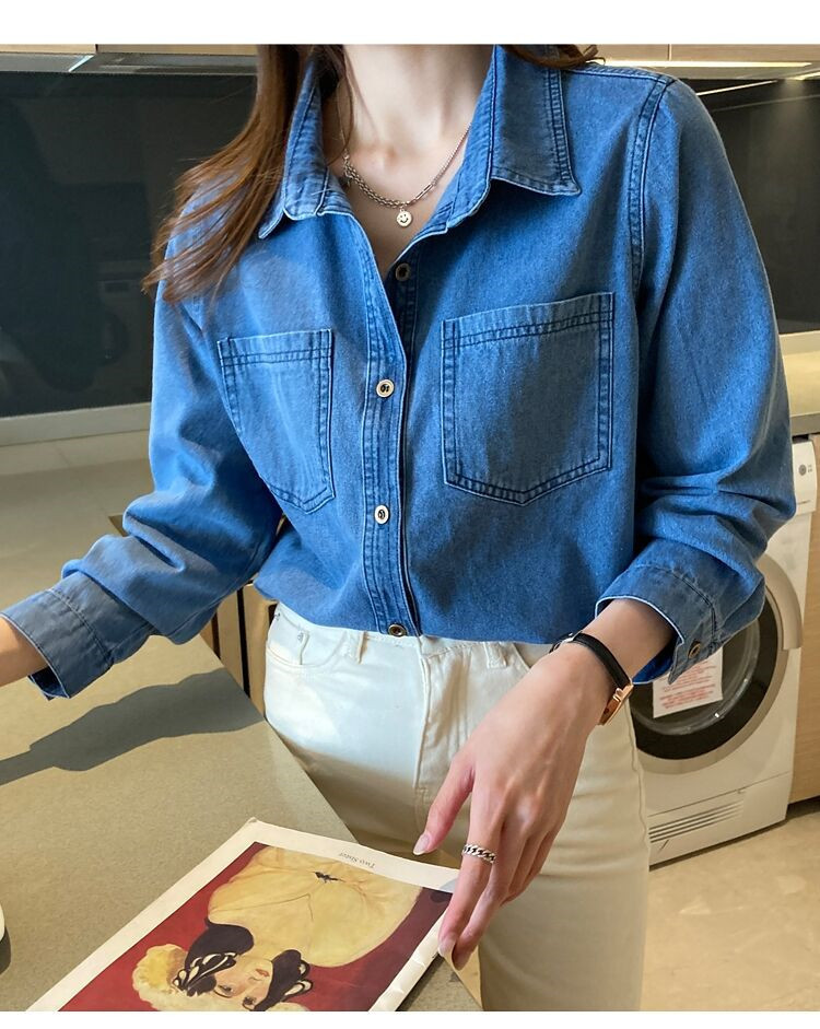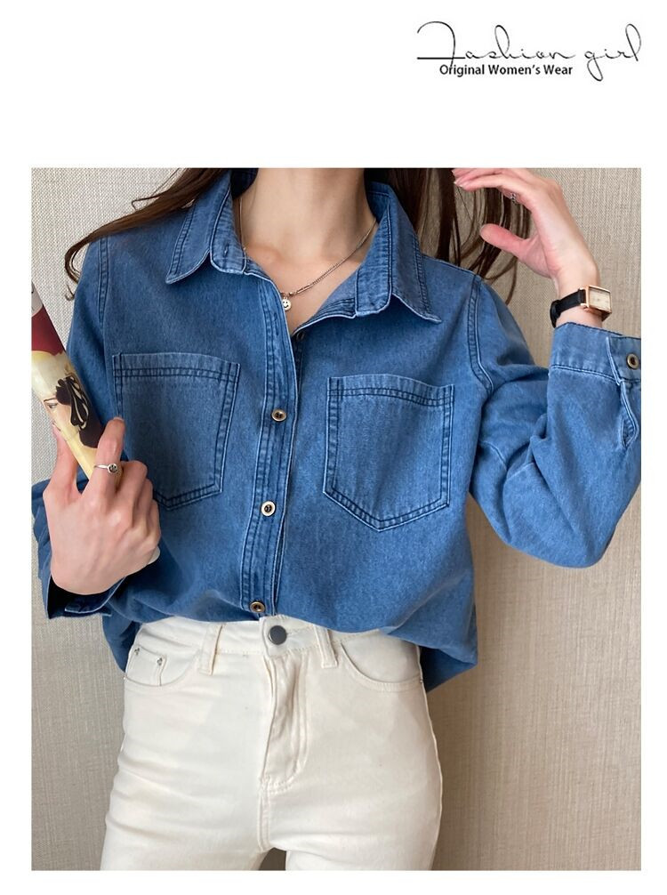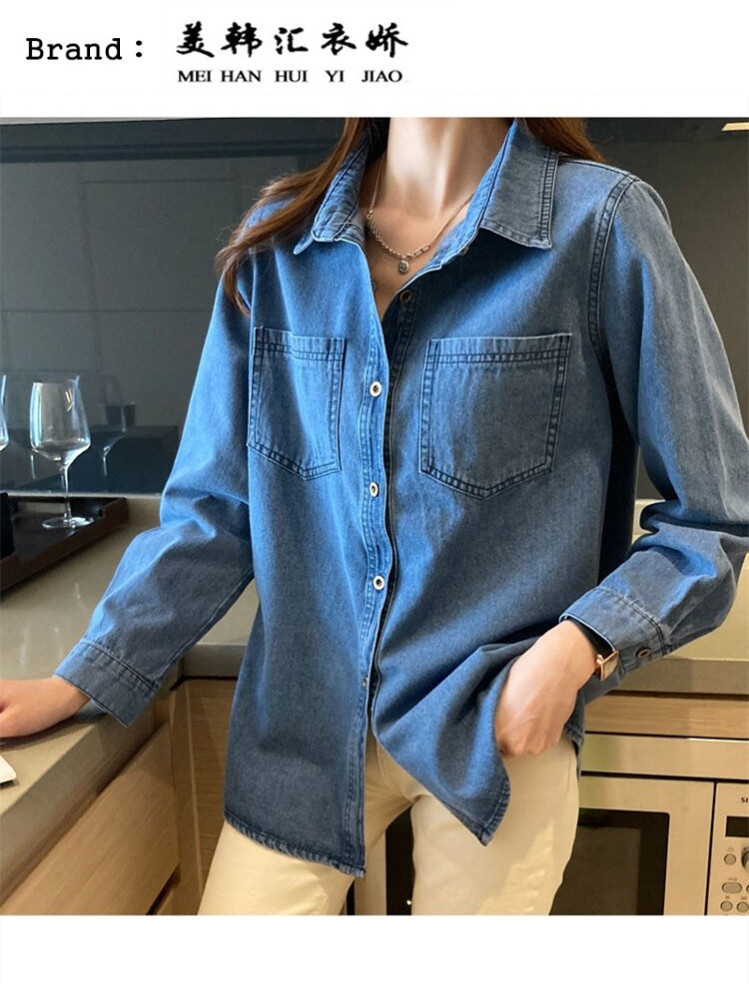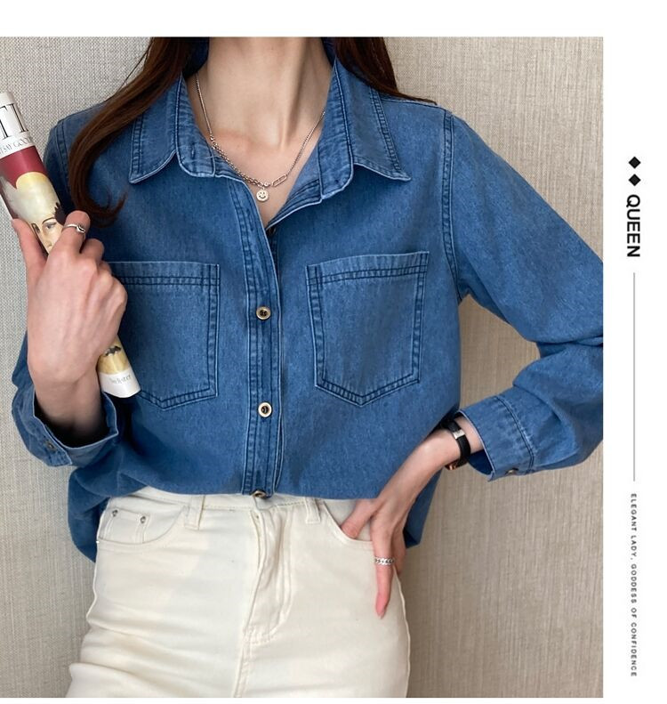 데님 셔츠 여성용 긴팔 컬리지 스타일 2026 봄 가을 신상 슬림핏 다용도 한국 스타일 데님 셔츠 여성용 베이스 셔츠