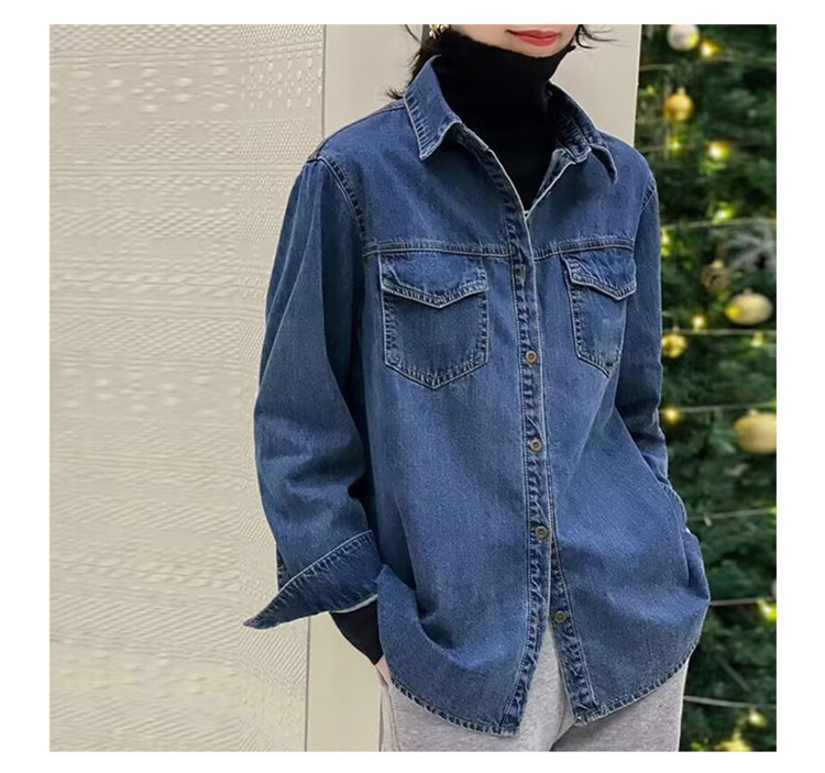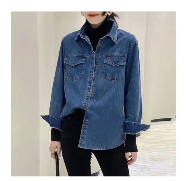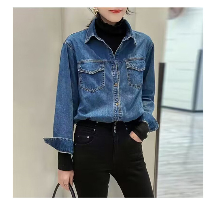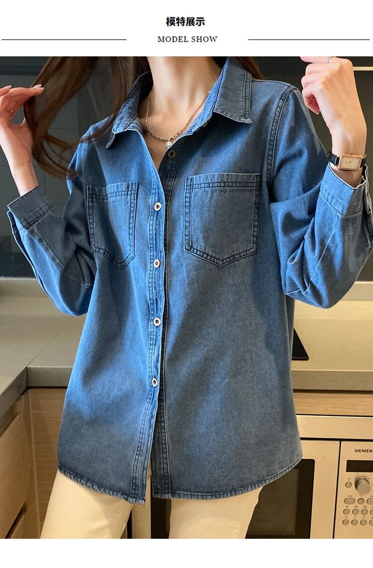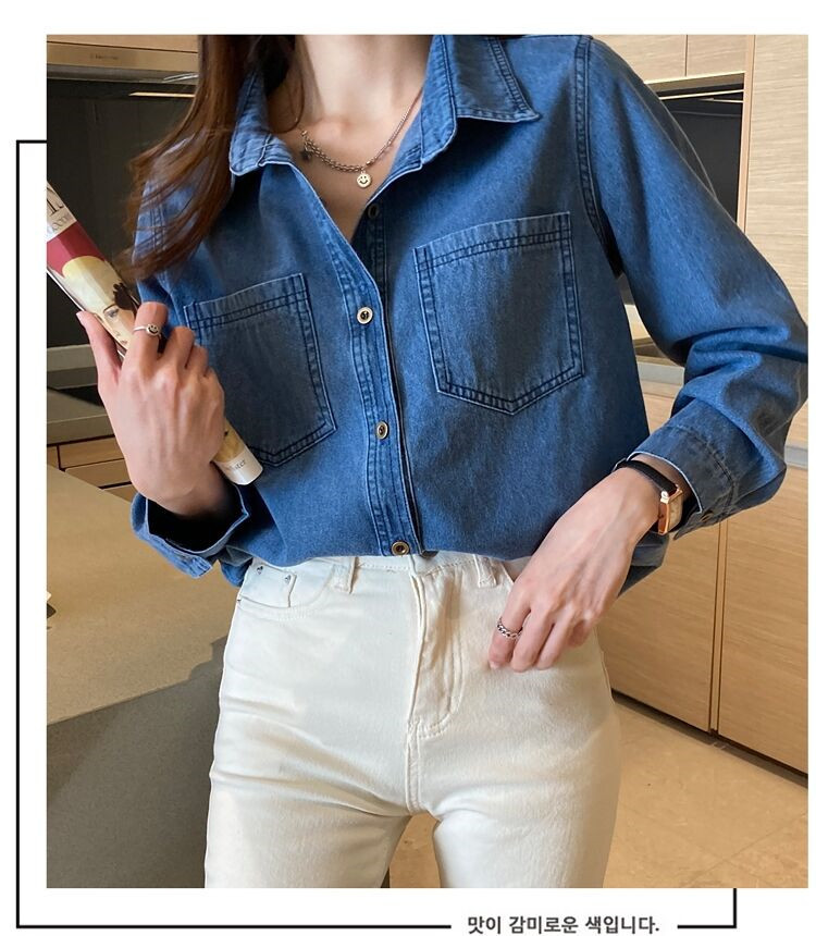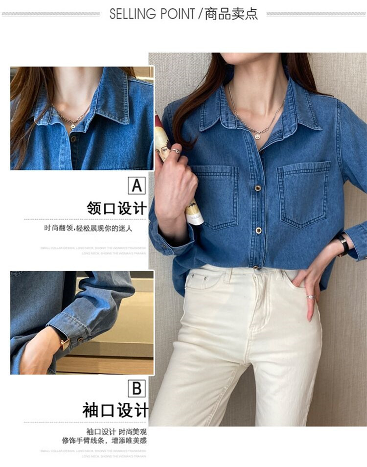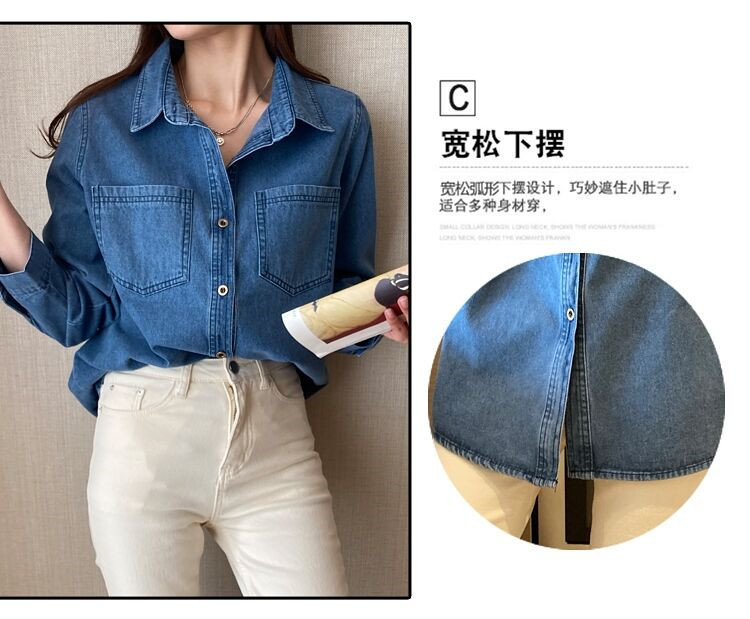 데님 셔츠 여성용 긴팔 컬리지 스타일 2026 봄 가을 신상 슬림핏 다용도 한국 스타일 데님 셔츠 여성용 베이스 셔츠