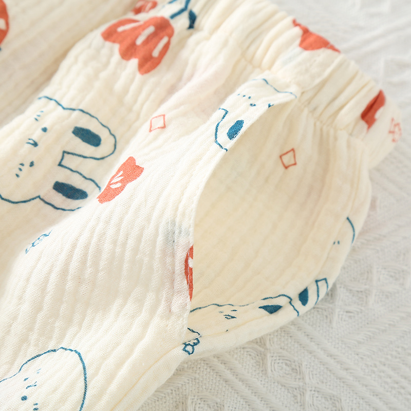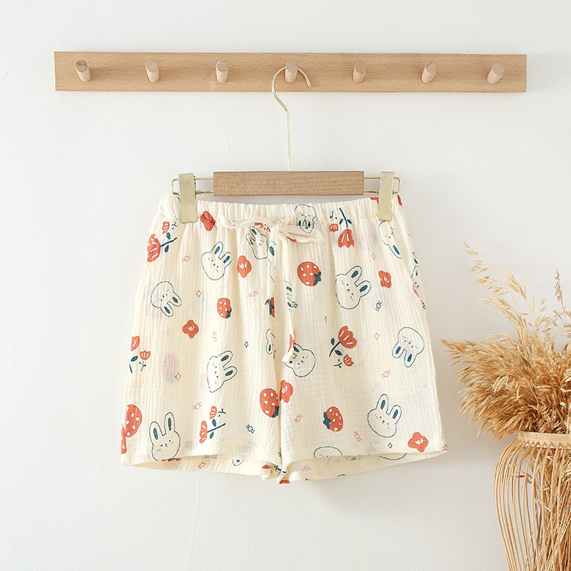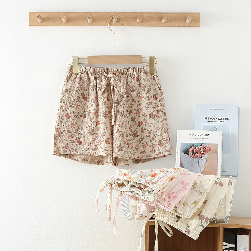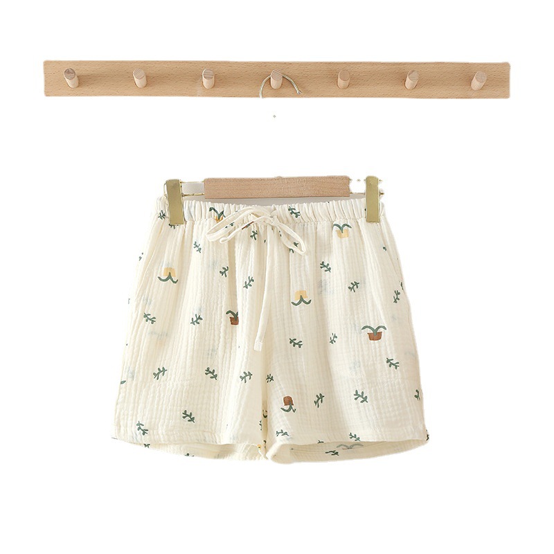 여름 면 크레이프 반바지 여성용 잠옷 바지 얇은 멀티 컬러 비치 바지 일본식 느슨한 더블 레이어 거즈 홈 여름