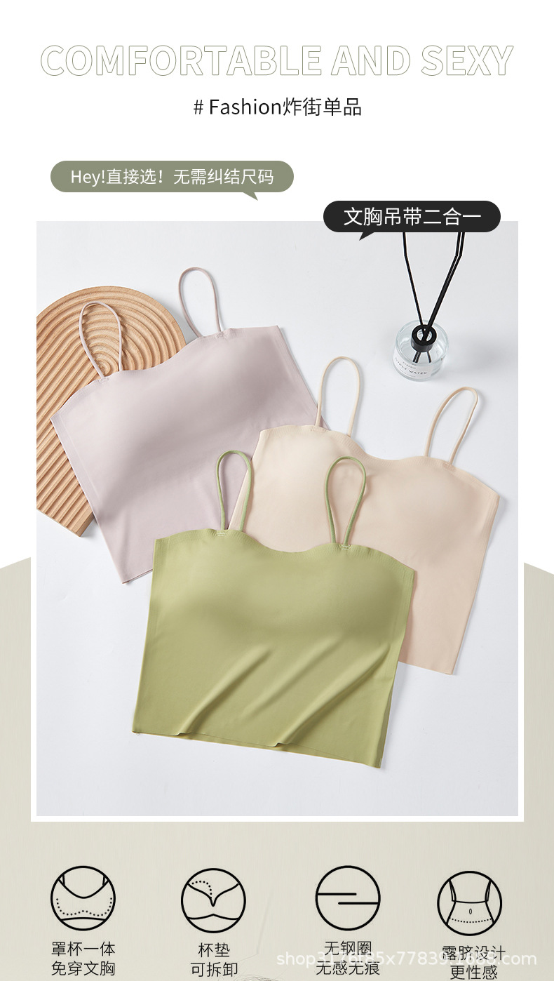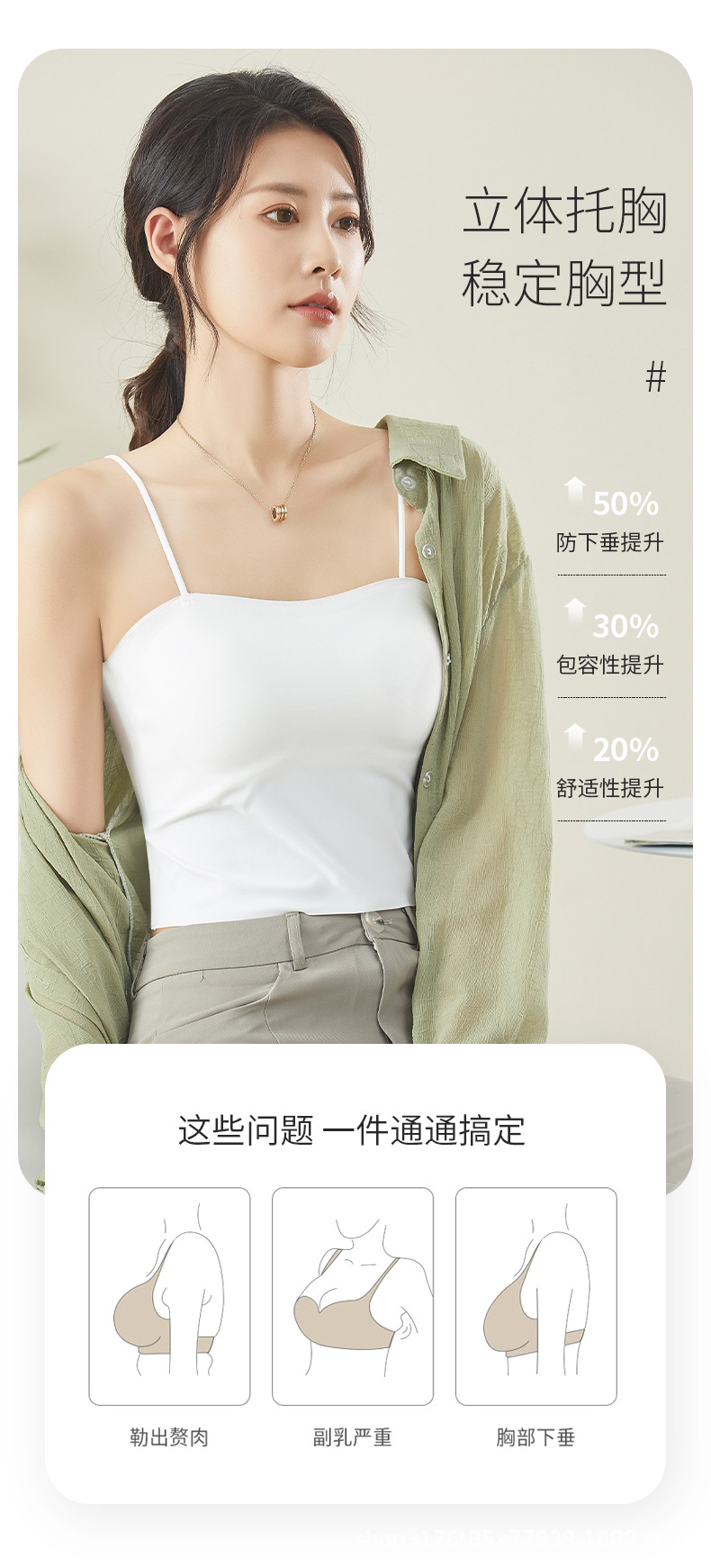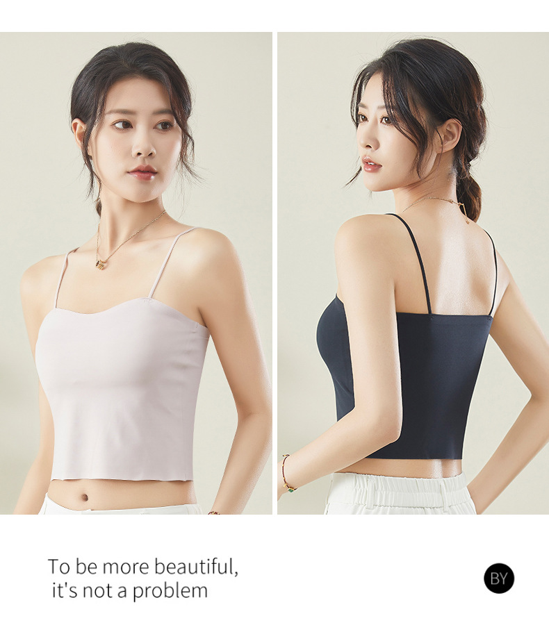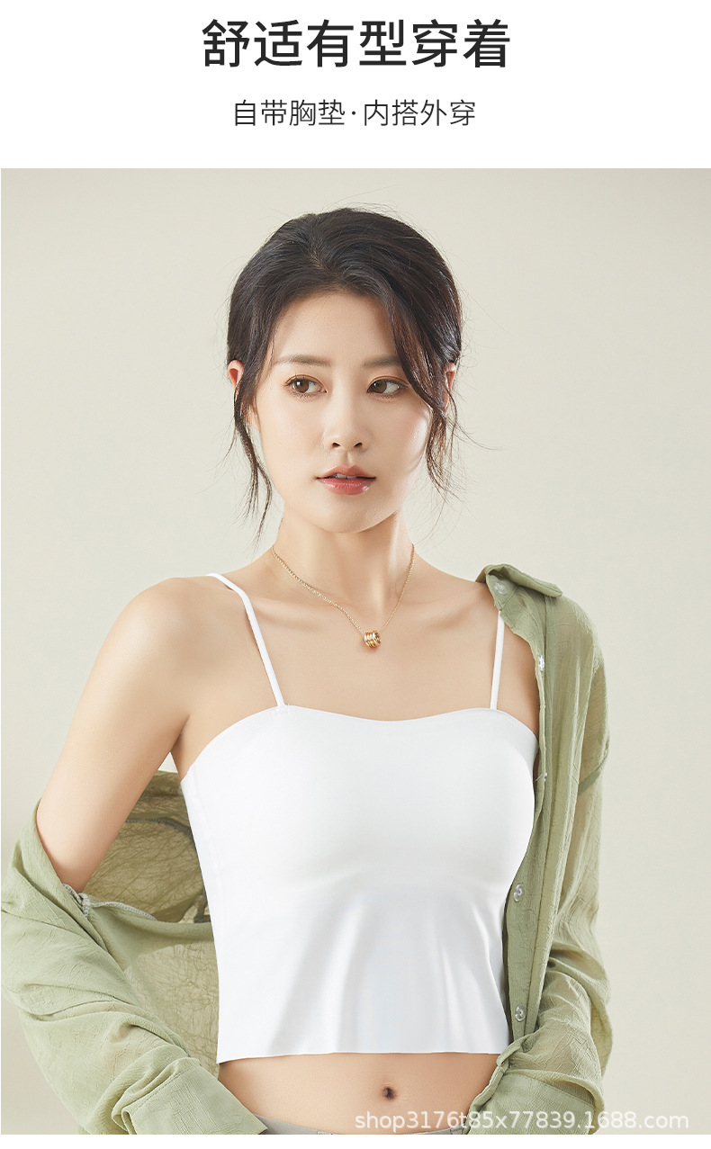 슬링 속옷 벨트 가슴 패드 아이스 실크 비 마킹 아름다운 등받이 착용 프리 브라 원피스 여성용 베이스 아우터 착용 흰색 조끼 여름