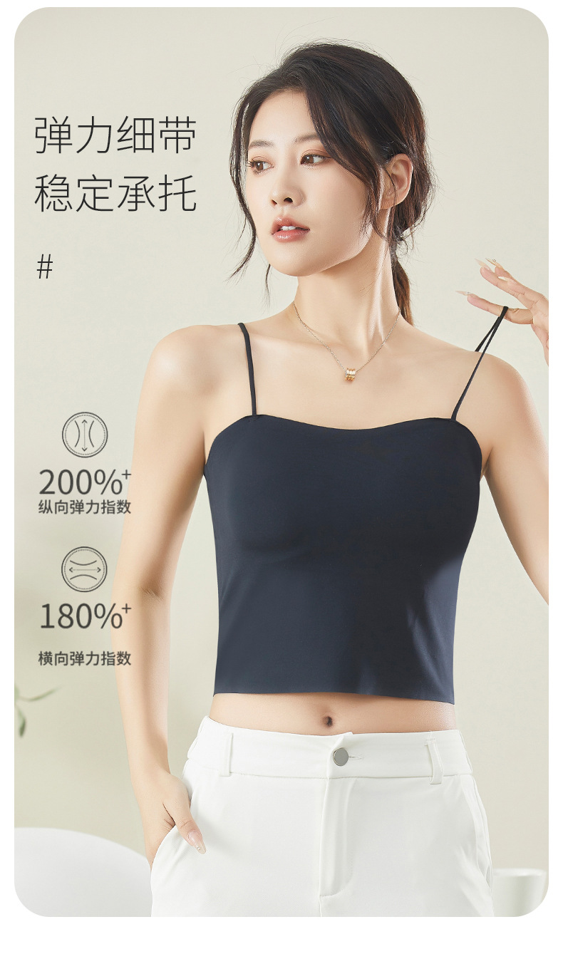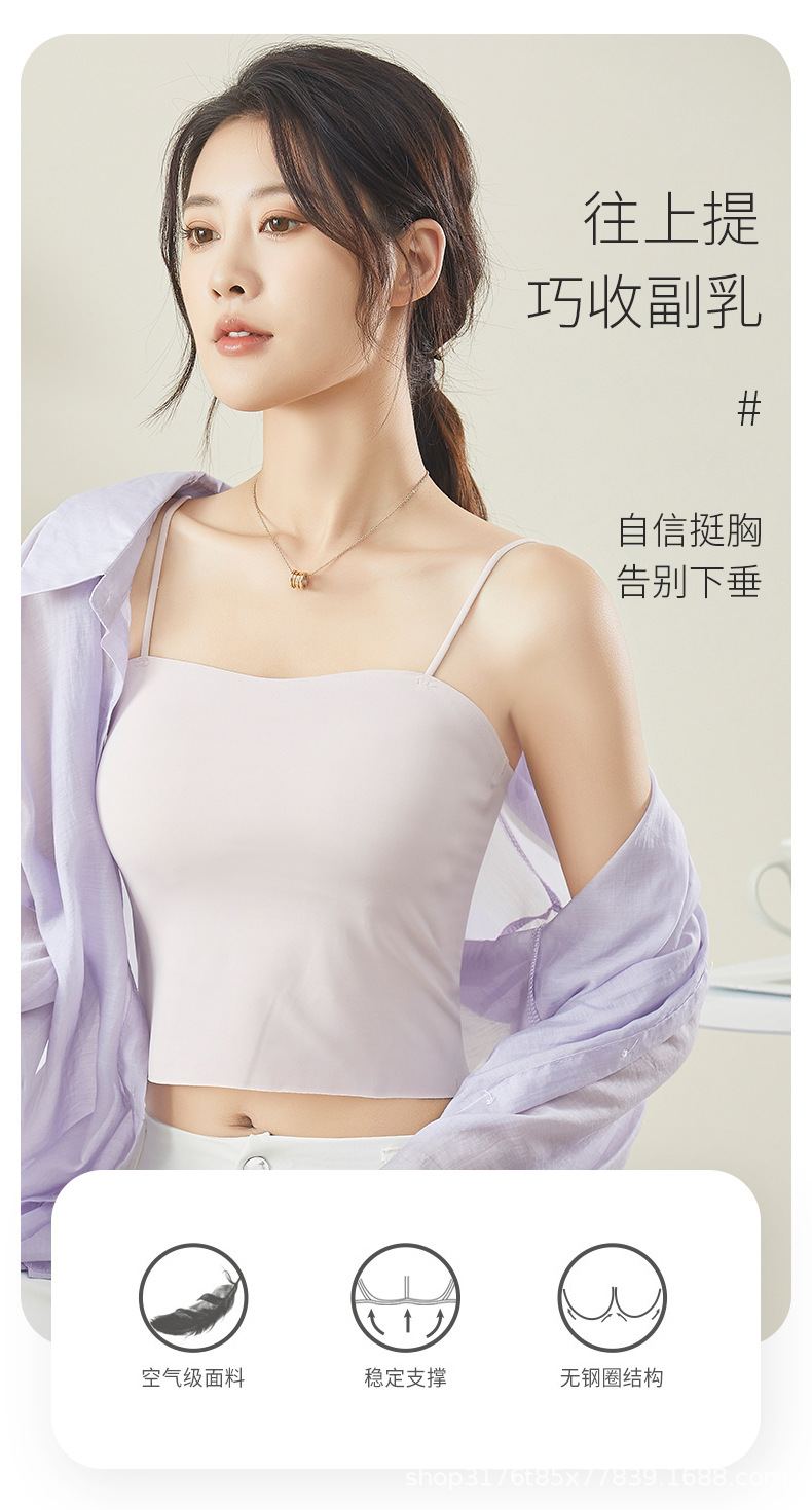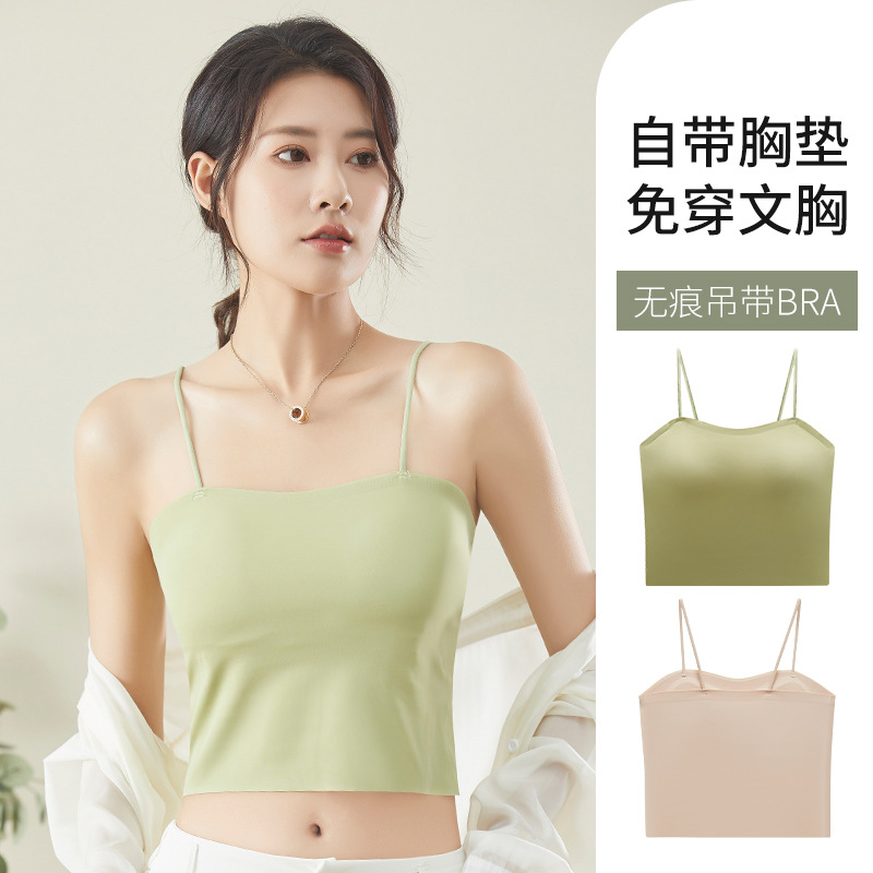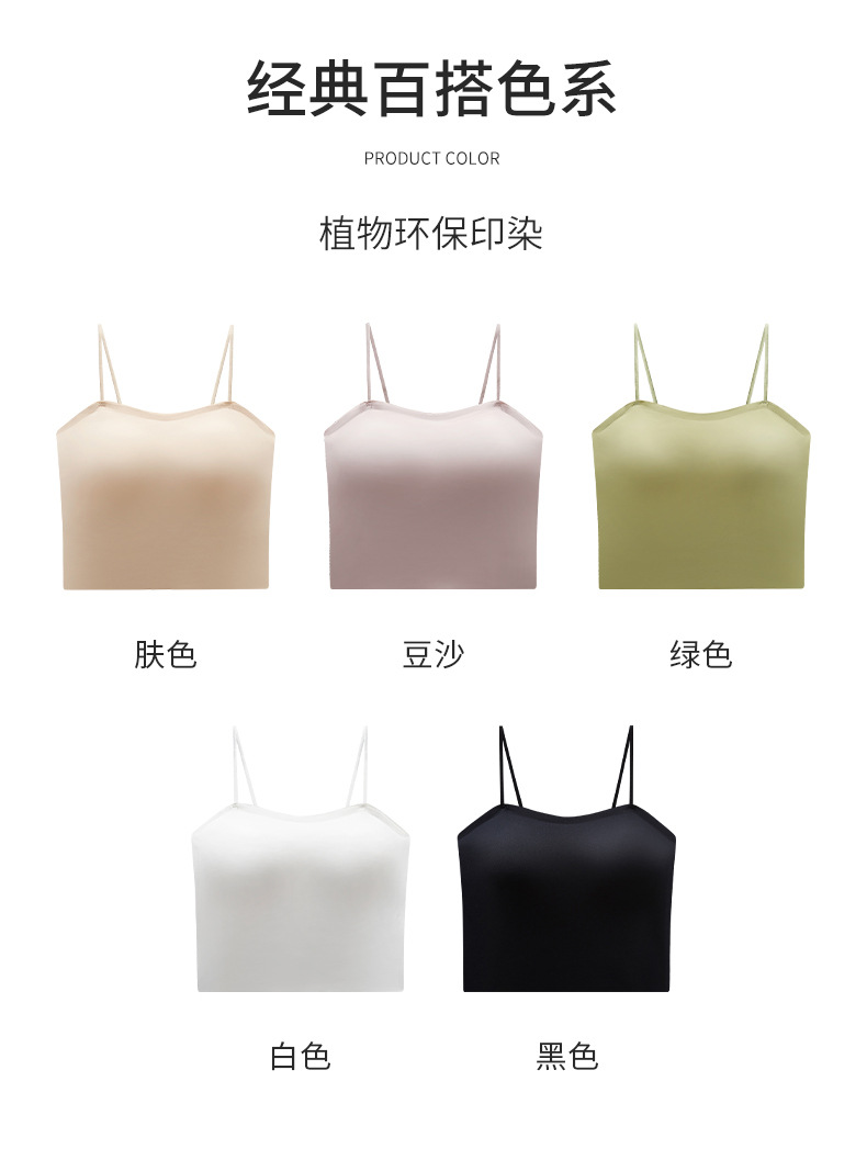 슬링 속옷 벨트 가슴 패드 아이스 실크 비 마킹 아름다운 등받이 착용 프리 브라 원피스 여성용 베이스 아우터 착용 흰색 조끼 여름