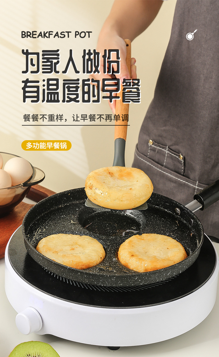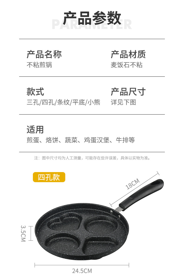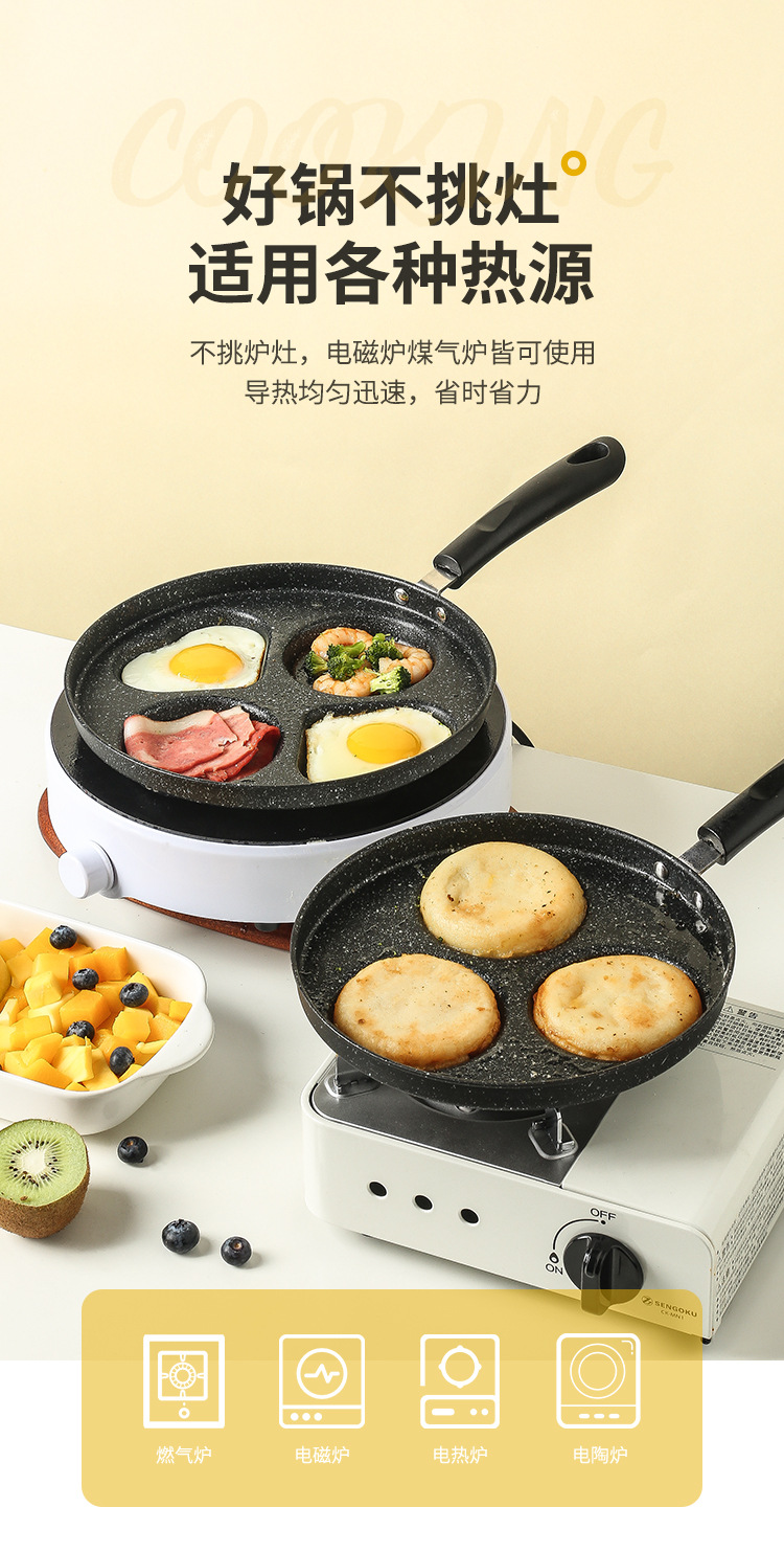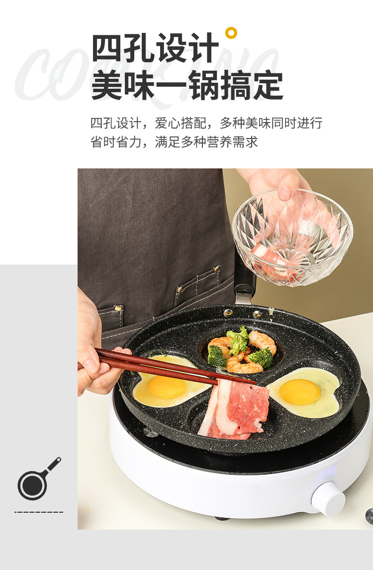 Maifan 돌 계란 프라이팬 아침 식사 팬 가정용 4 홀 프라이팬 다기능 계란 프라이팬 버거 금형 평평한 바닥 프라이팬