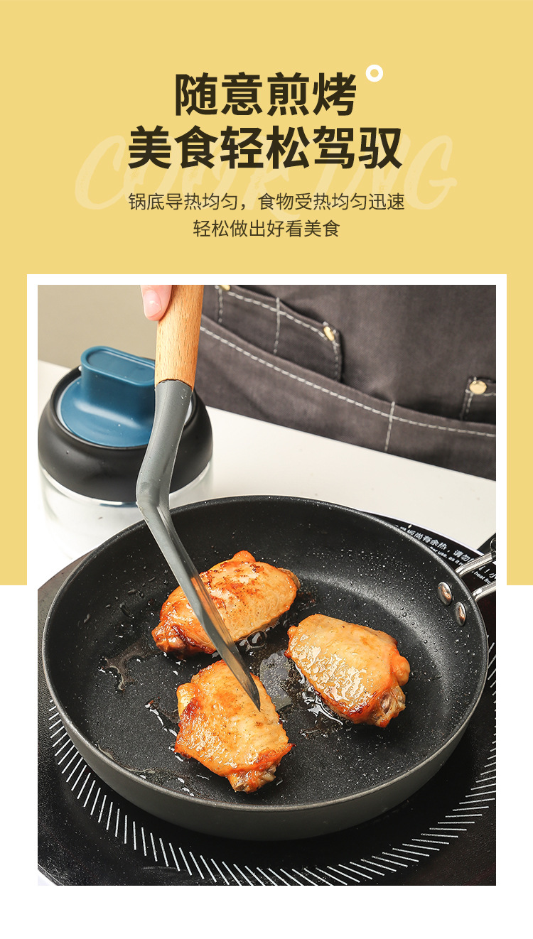 두껍게 웃는 얼굴 프라이팬 [나뭇결 손잡이]]