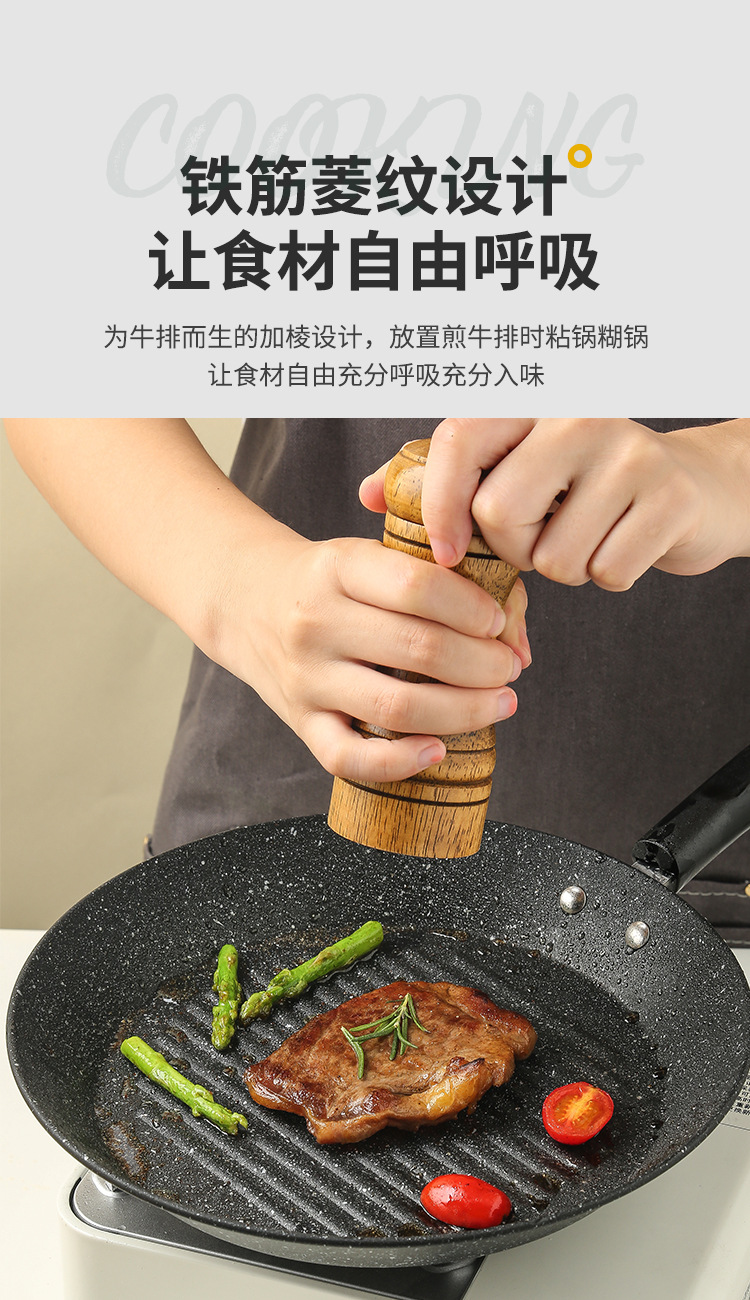 줄무늬가있는 두꺼운 프라이팬 [나뭇결 손잡이]]