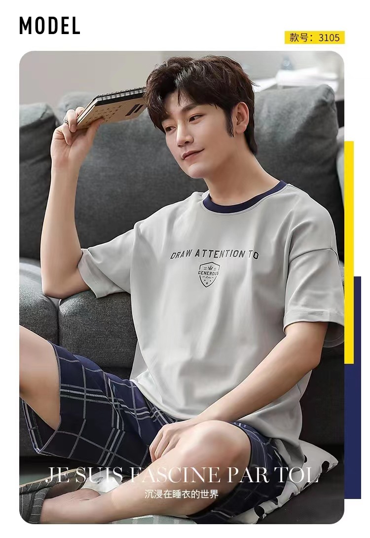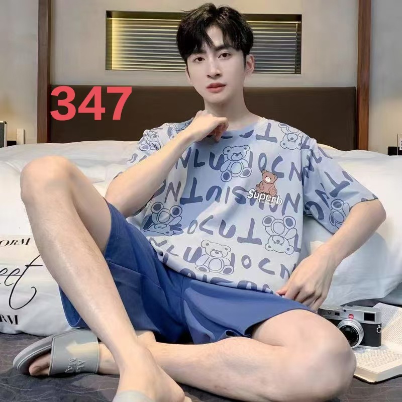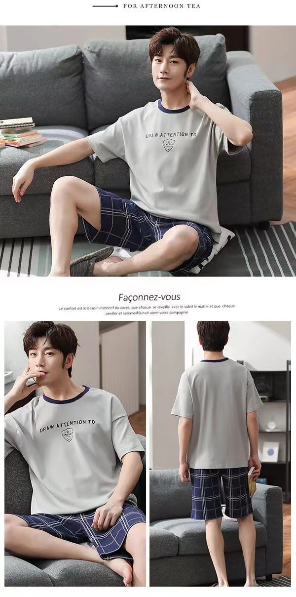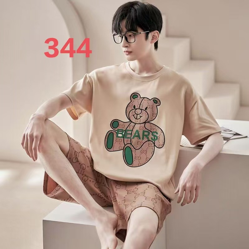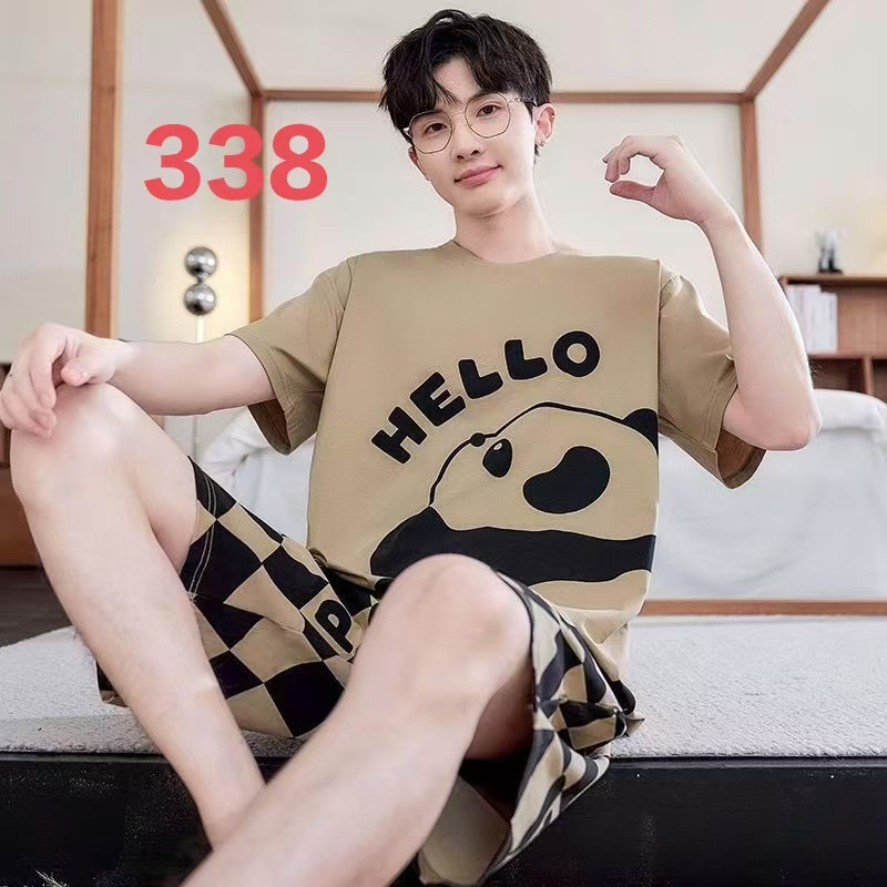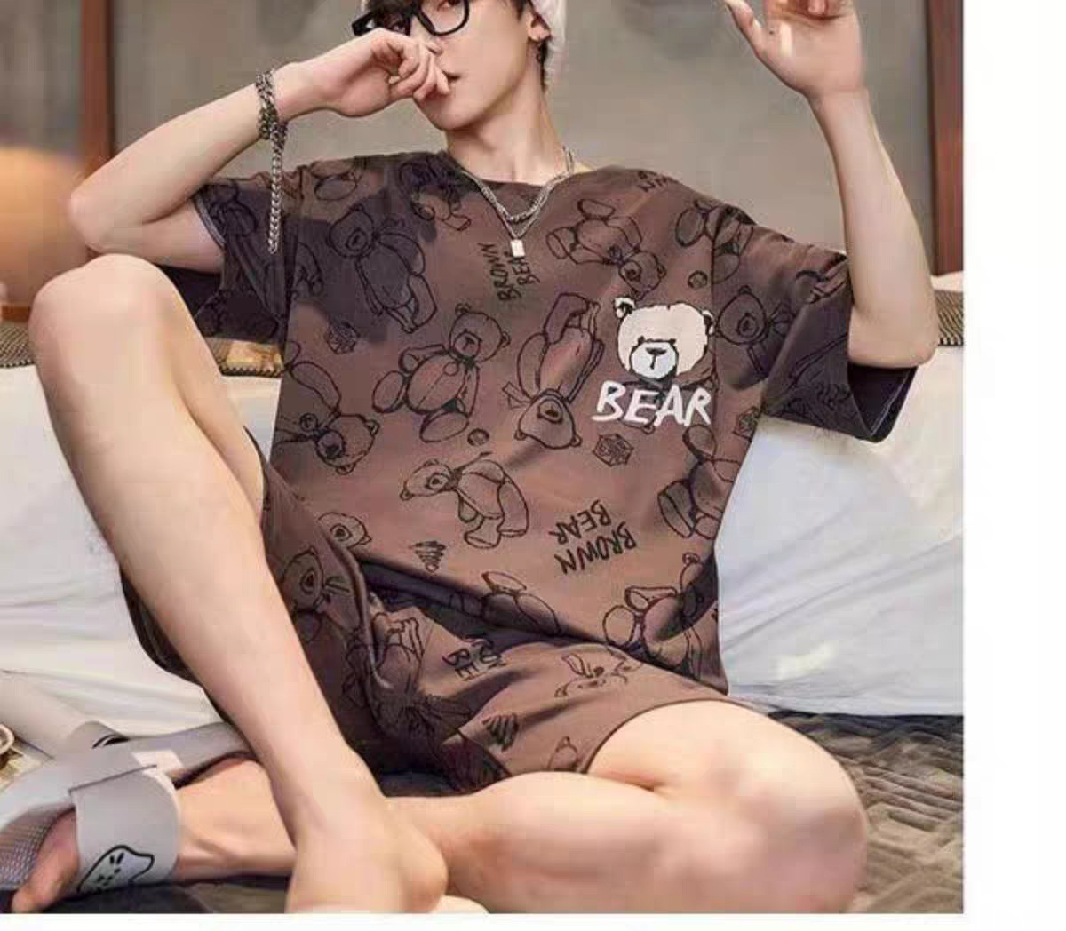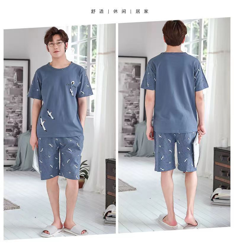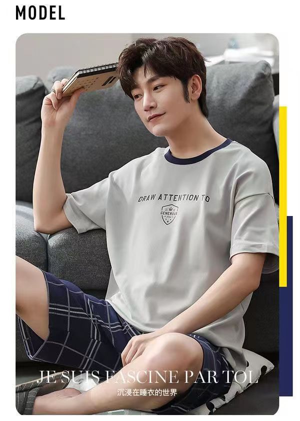 새로운 잠옷 남자의 여름 반팔 반바지 세트 한국식 느슨한 플러스 사이즈 만화 캐주얼 아웃웨어 가정 옷