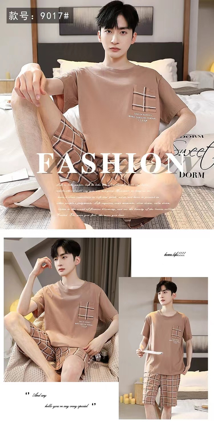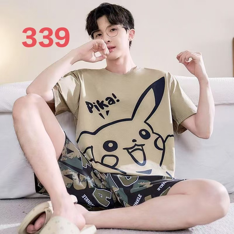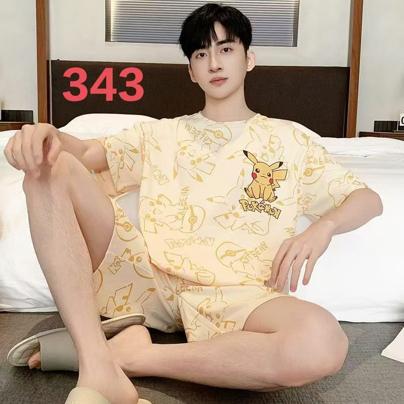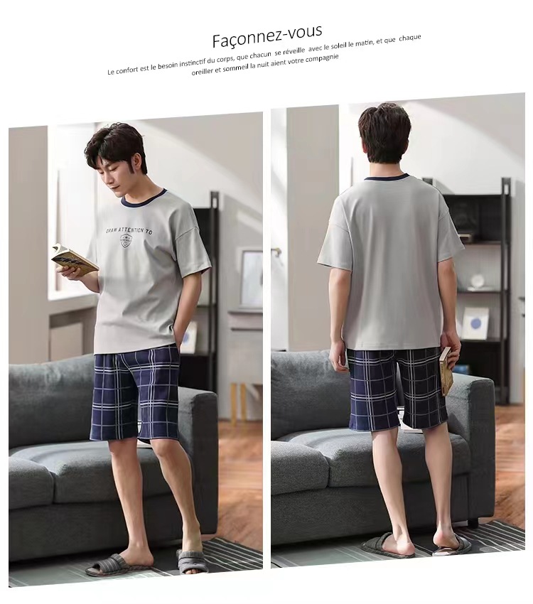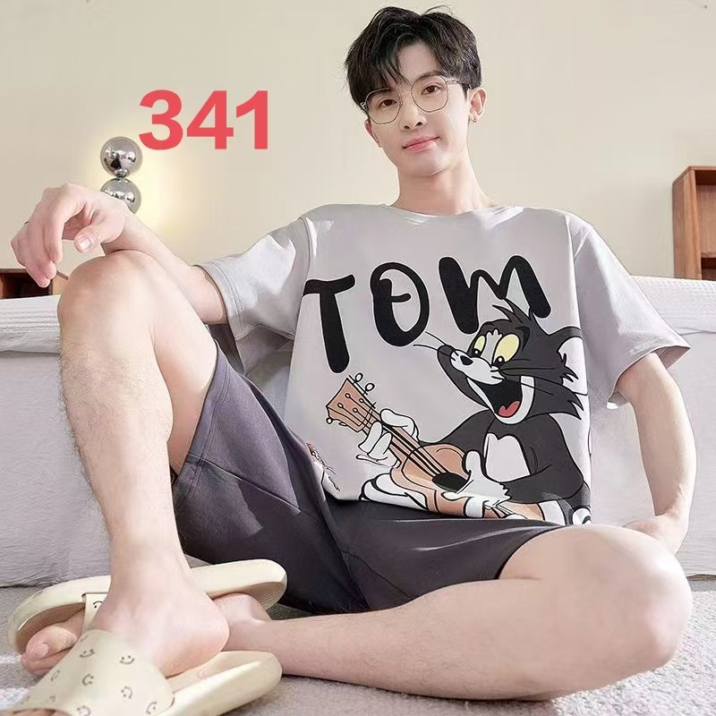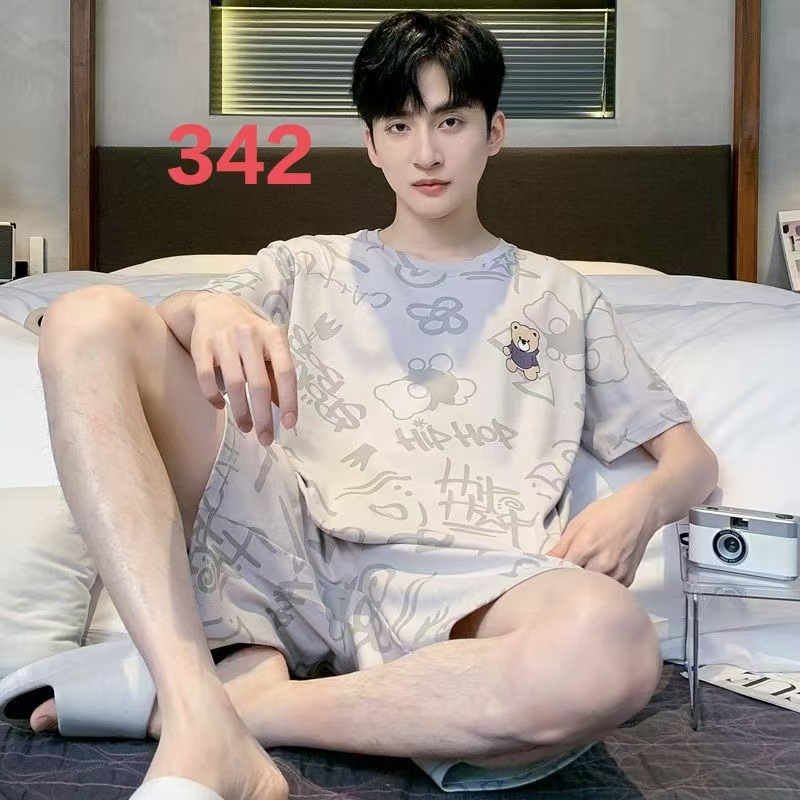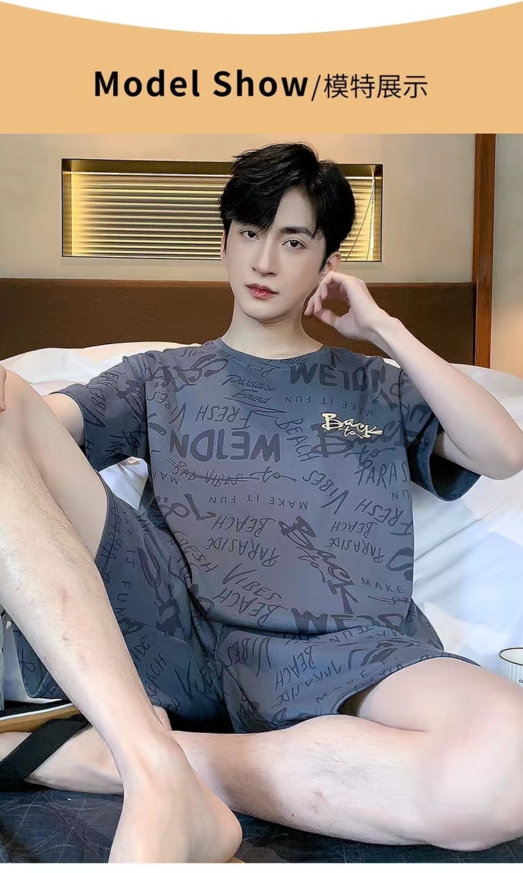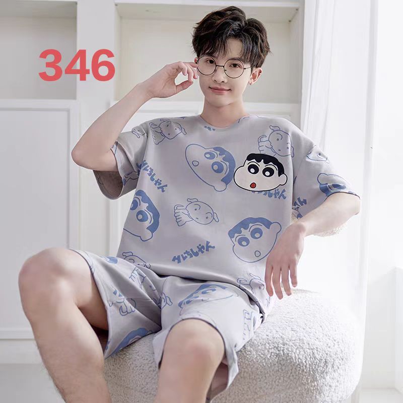 새로운 잠옷 남자의 여름 반팔 반바지 세트 한국식 느슨한 플러스 사이즈 만화 캐주얼 아웃웨어 가정 옷