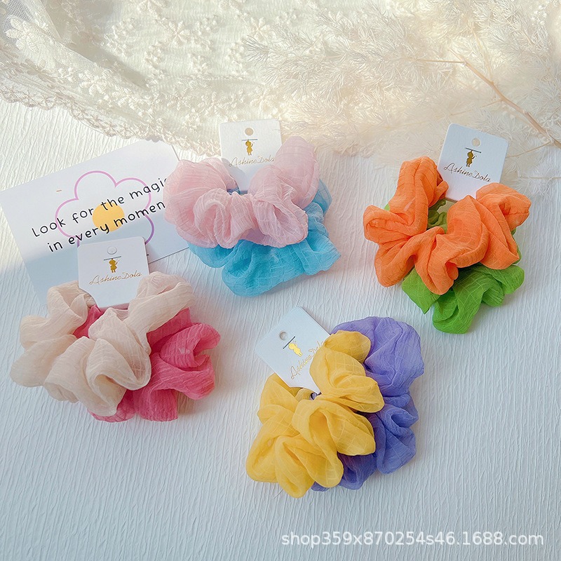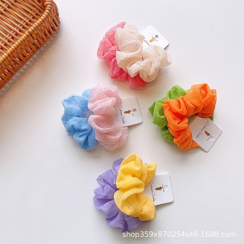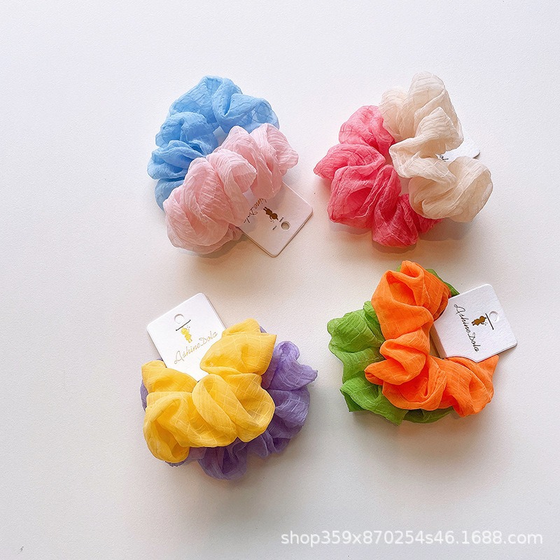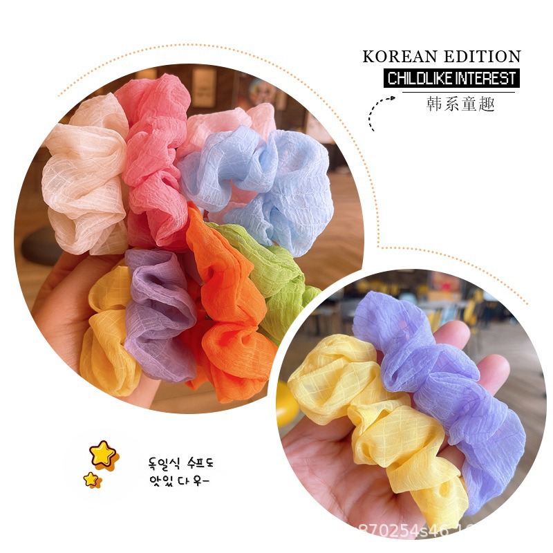 봄과 여름 한국의 밝은 색 대장 링 어린이 포니테일 고무줄 귀여운 색상 AB 새로운 메쉬 헤어 로프