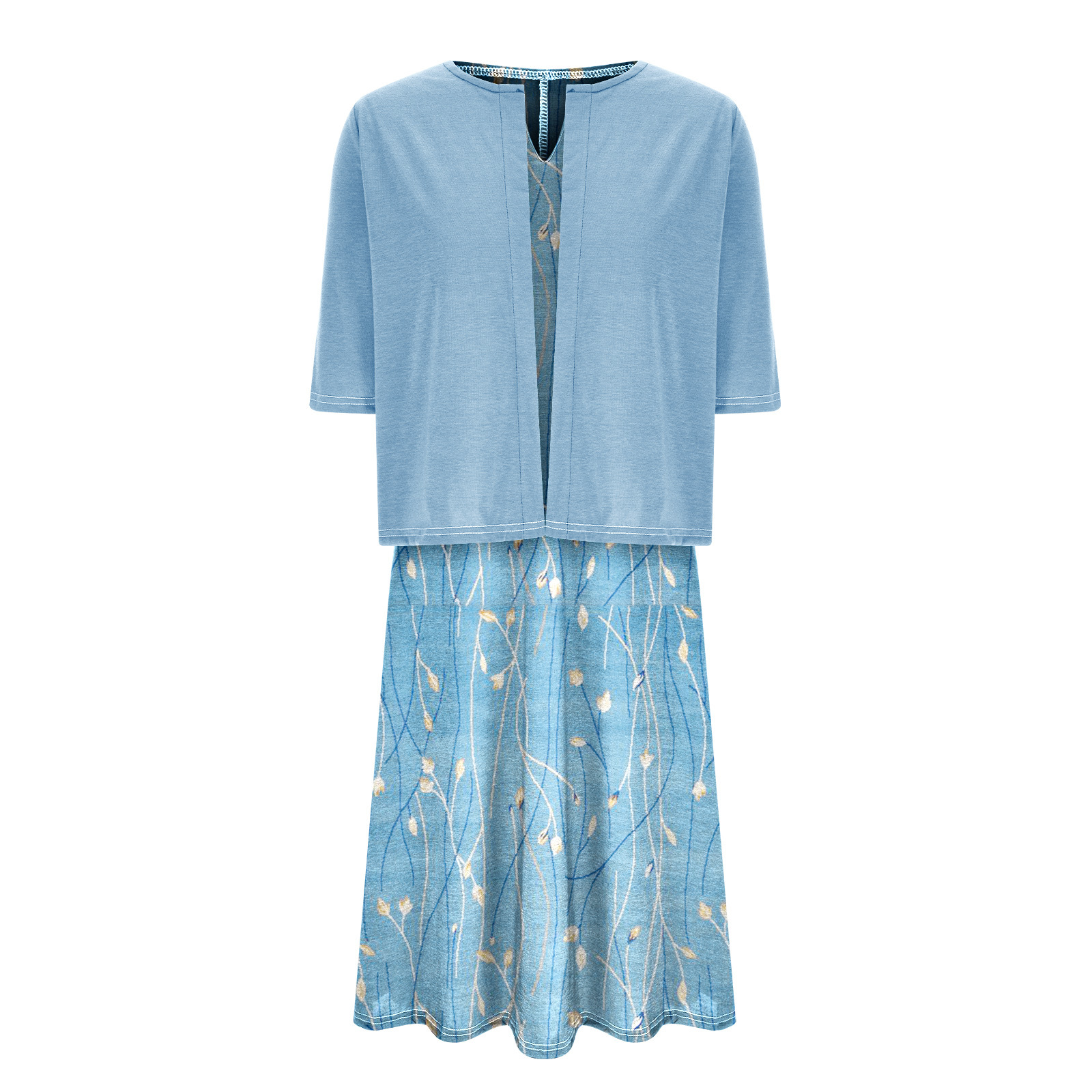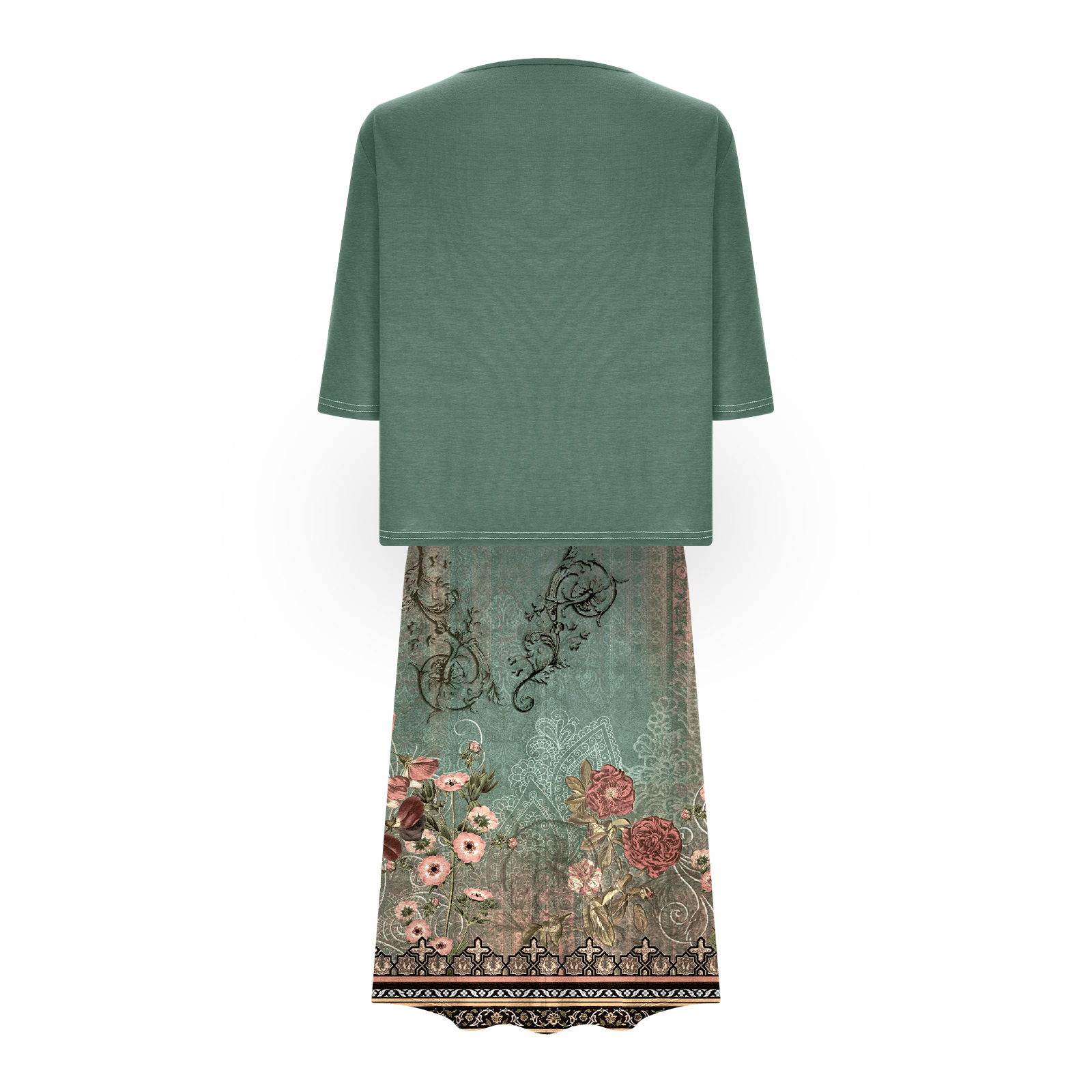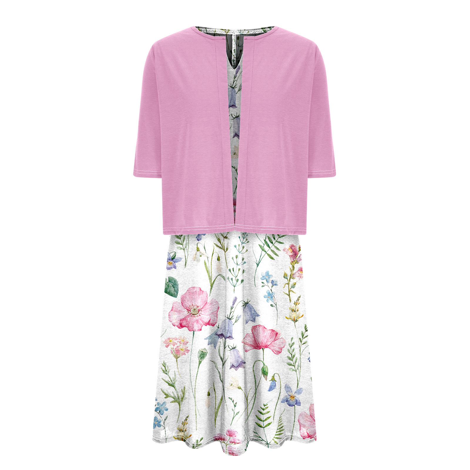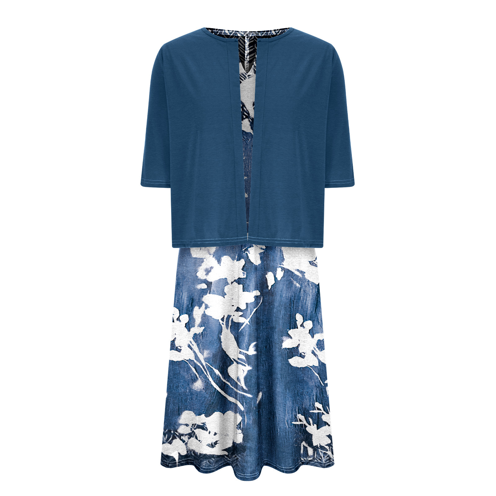 유럽과 미국의 새로운 민족 스타일 우아한 꽃 프린트 조끼 원피스 매칭 중간 소매 카디건 재킷 투피스 세트