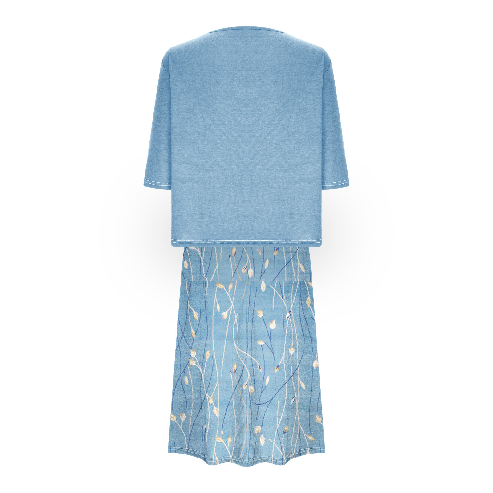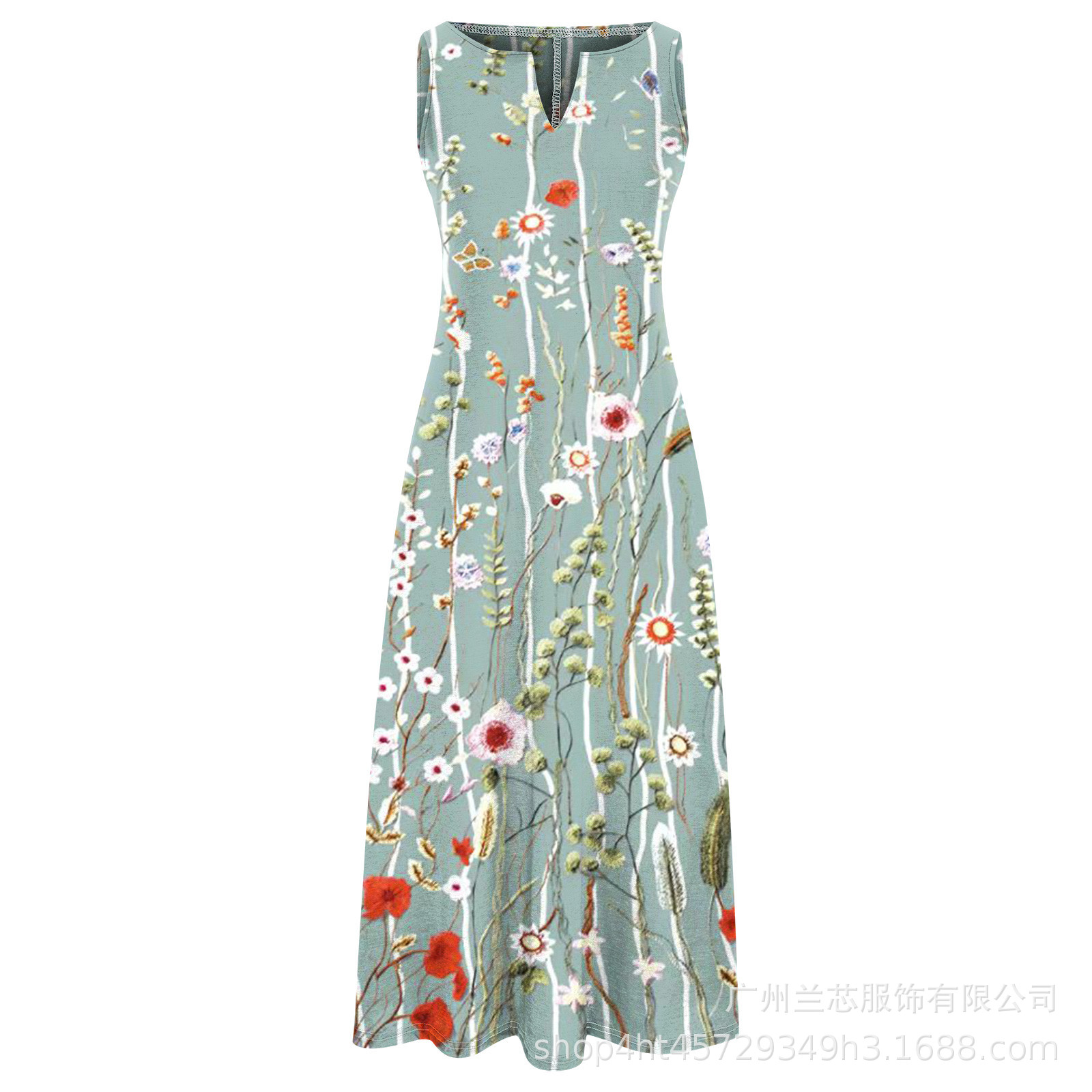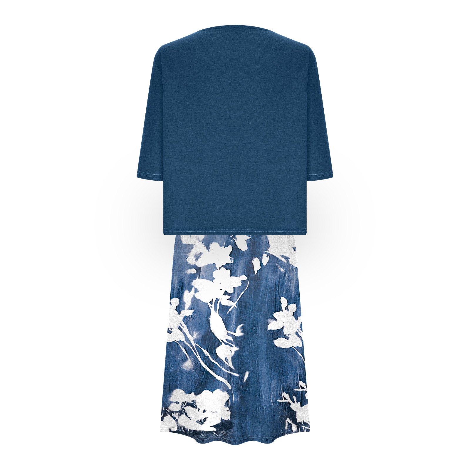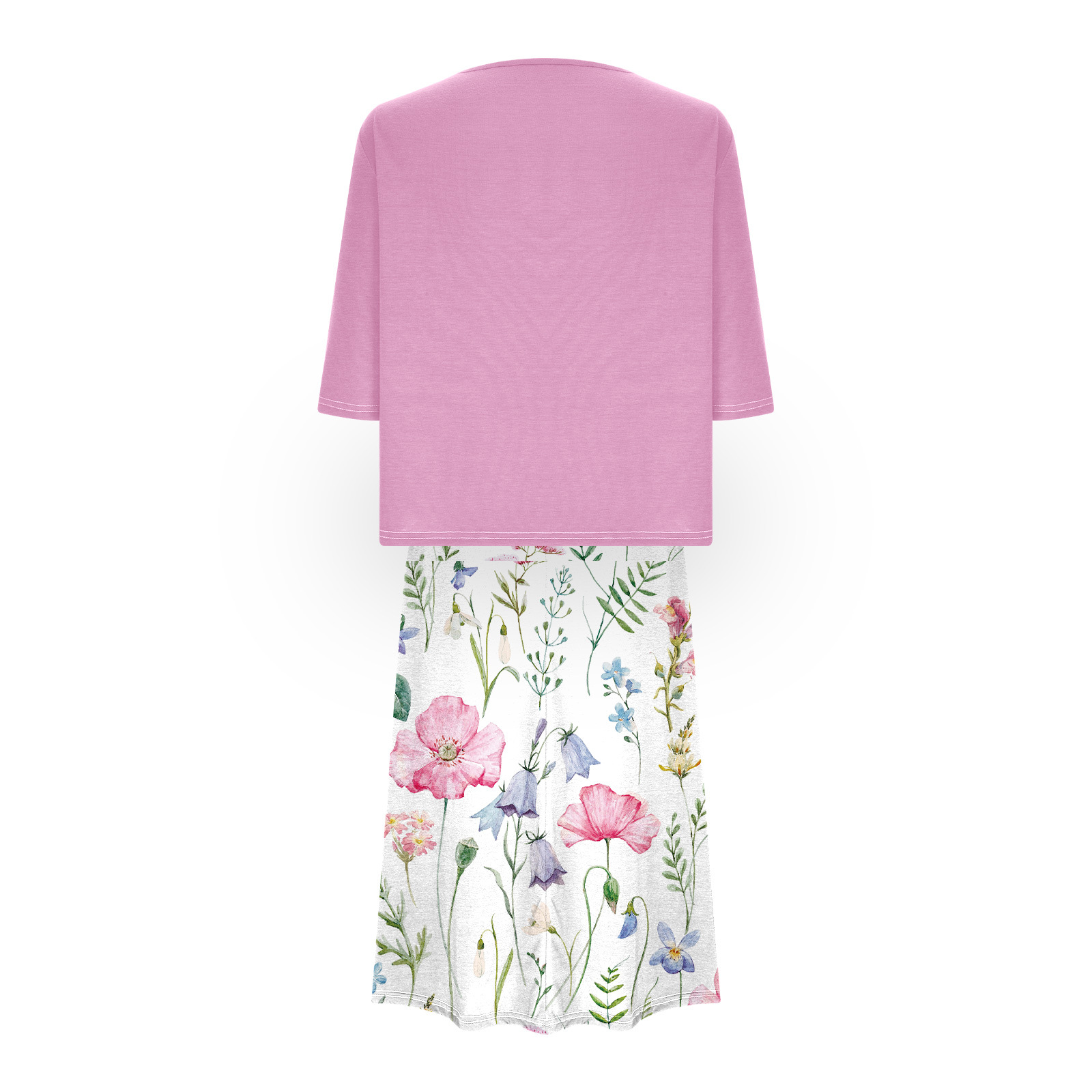 유럽과 미국의 새로운 민족 스타일 우아한 꽃 프린트 조끼 원피스 매칭 중간 소매 카디건 재킷 투피스 세트
