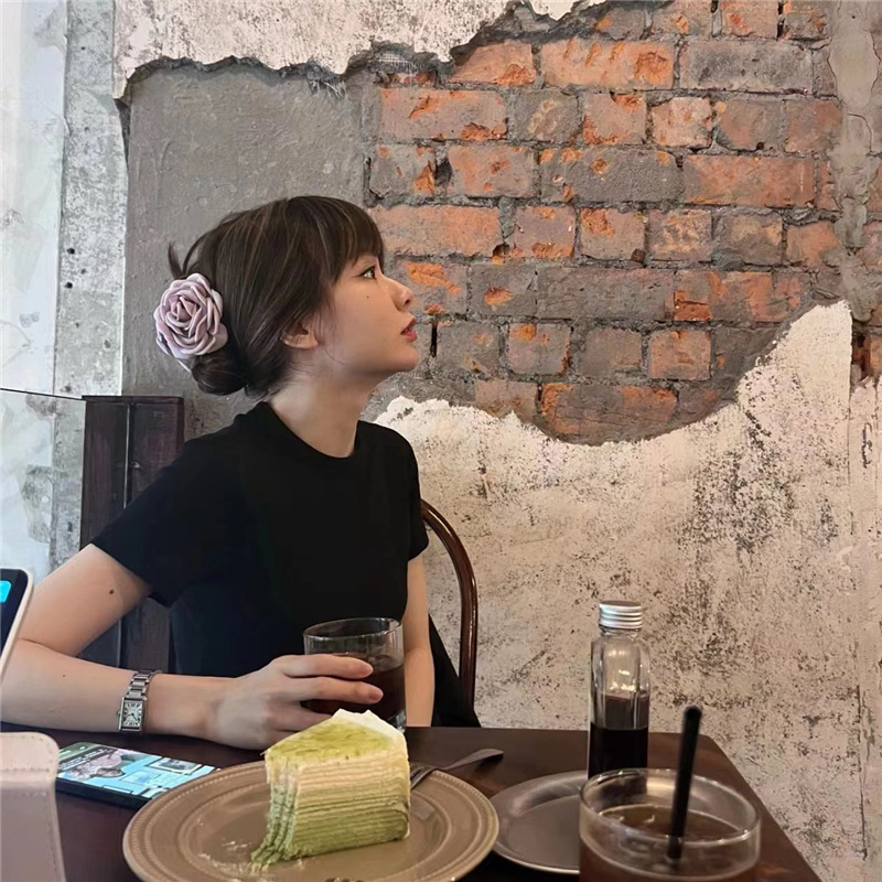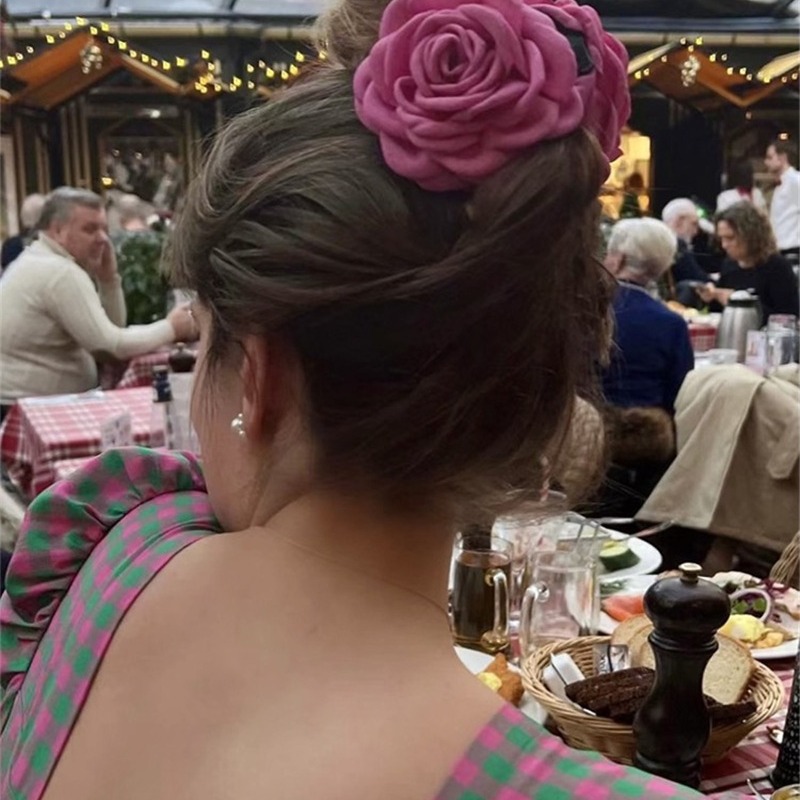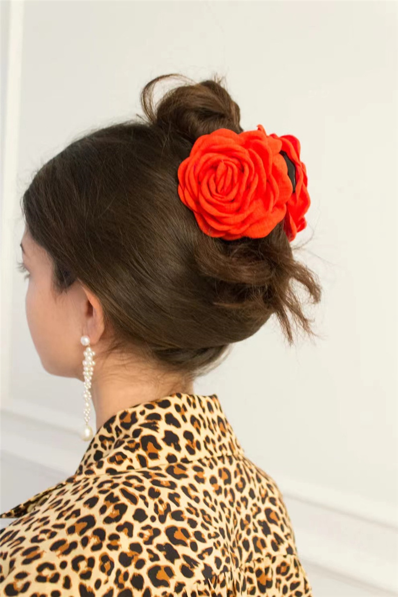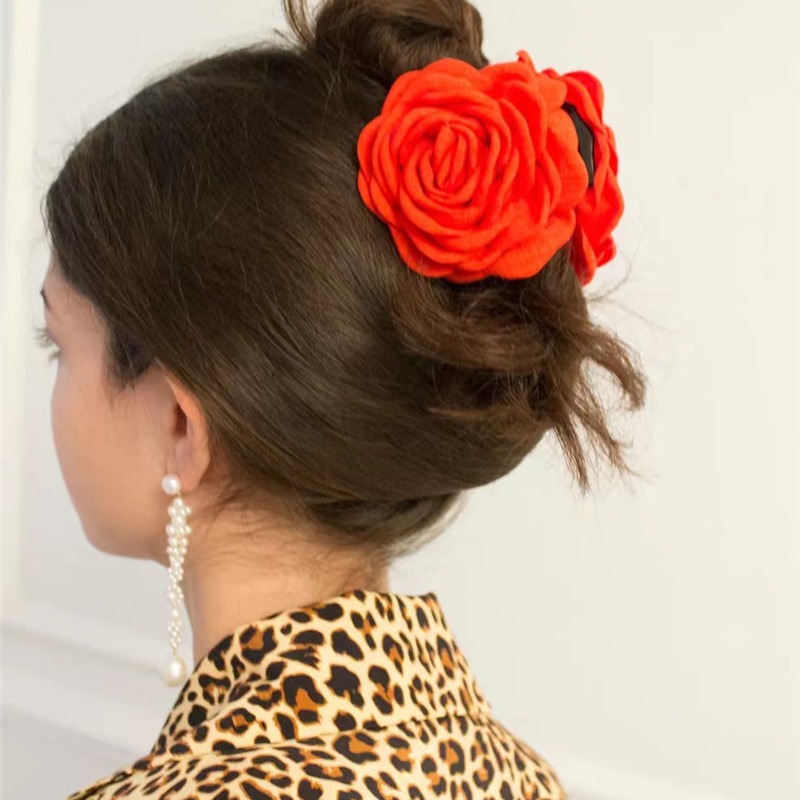 한국식 프랑스식 장미 꽃 그랩 클립 여성용 하이 엔드 느낌 머리 머리 상어 클립 헤어핀 헤드웨어 빈티지