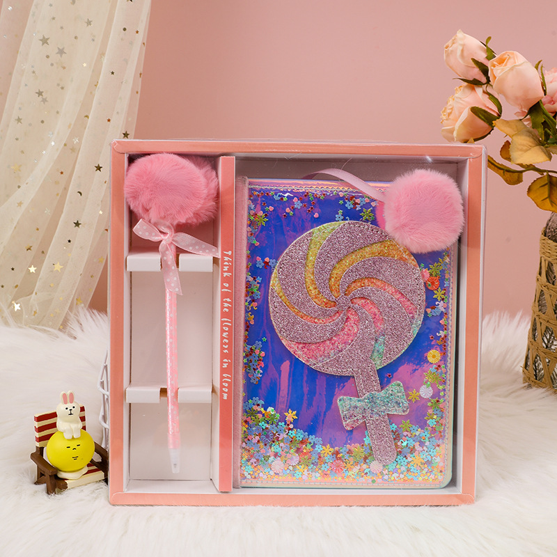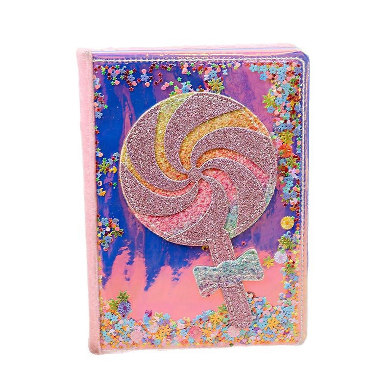 학생 A5 노트북 어린이 만화 롤리팝 노트북 세트 문구 선물 상자 귀여운 PU 스팽글 메모장