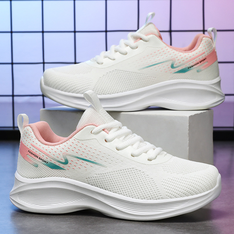 여성 신발 2026 여름 신상품 가볍고 캐주얼한 두꺼운 밑창 스포츠화, 편안한 플라이니트 메쉬 통기성 여성 러닝화