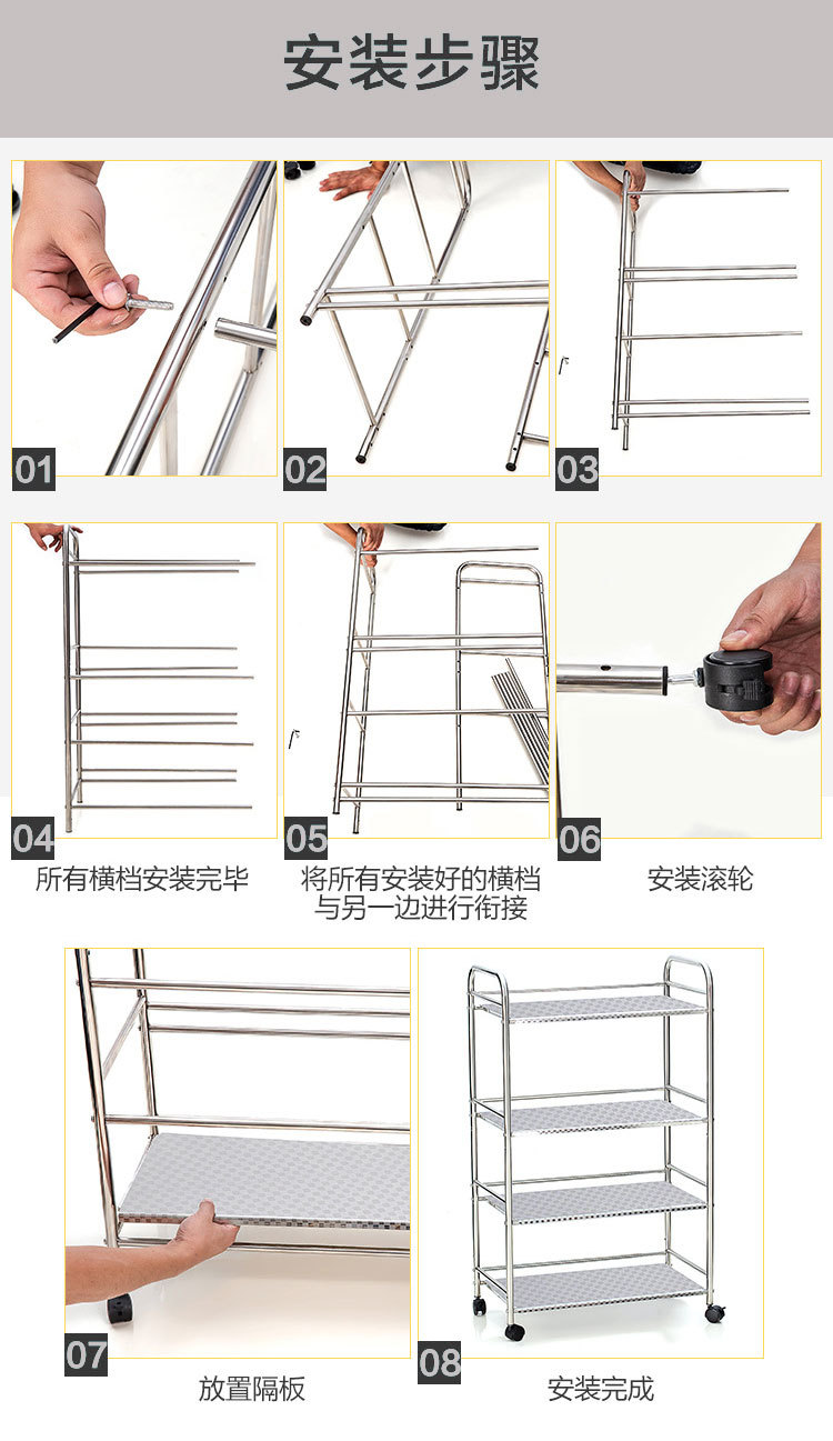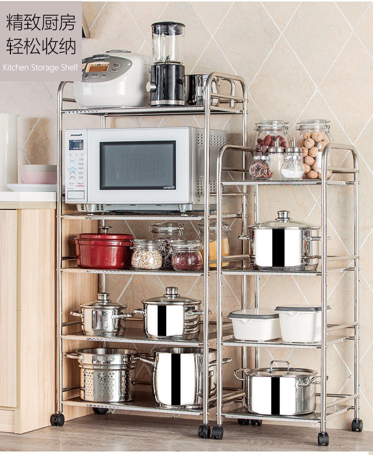 주방 스테인레스 스틸 스토리지 랙 가정용 바닥 3 층 4 층 5 층 스토리지 랙 전자 레인지 랙 스토리지 랙 선반