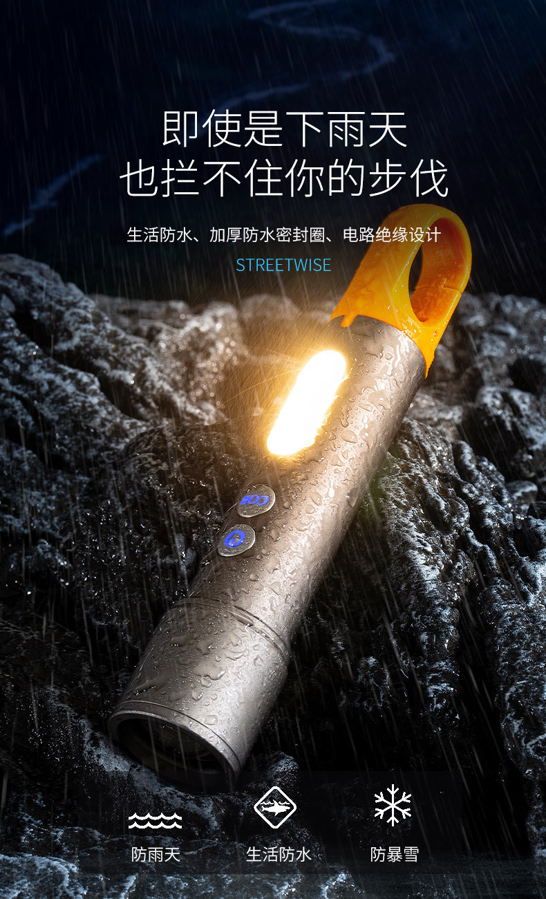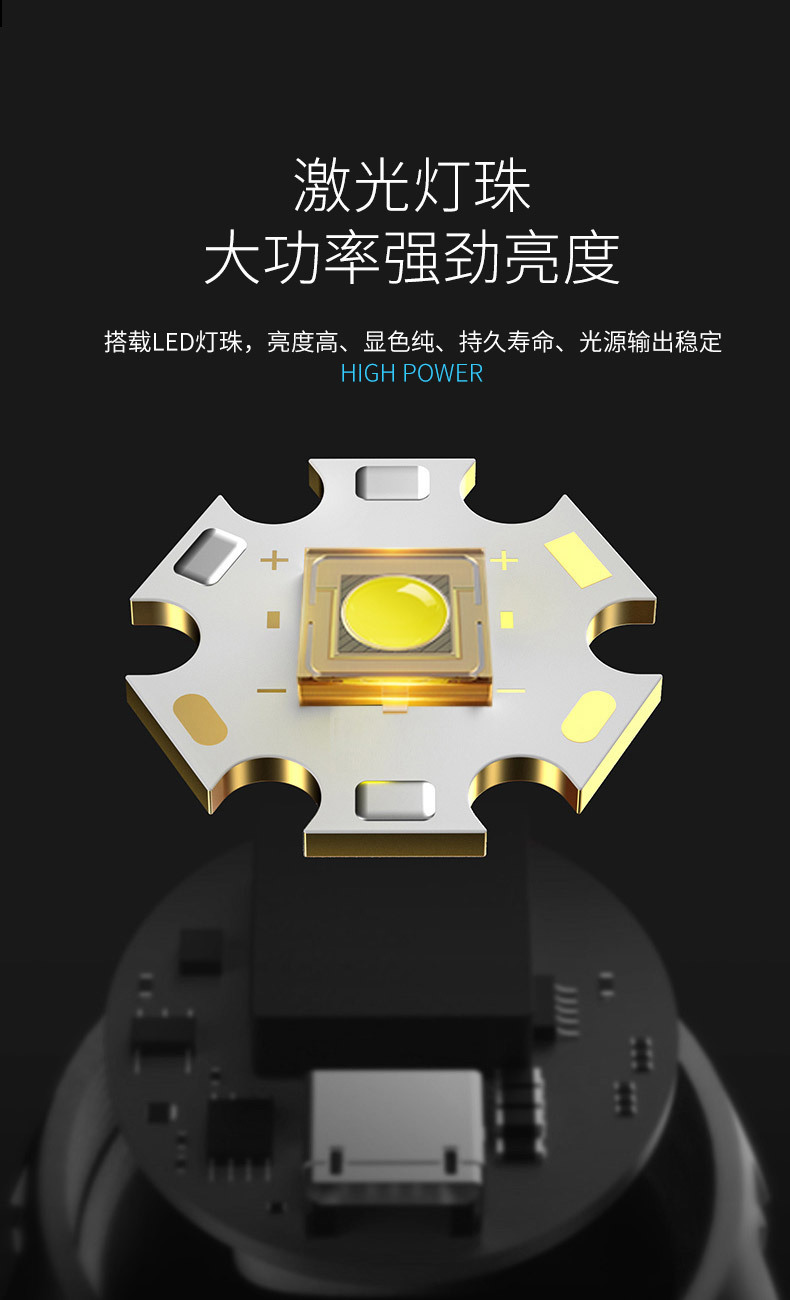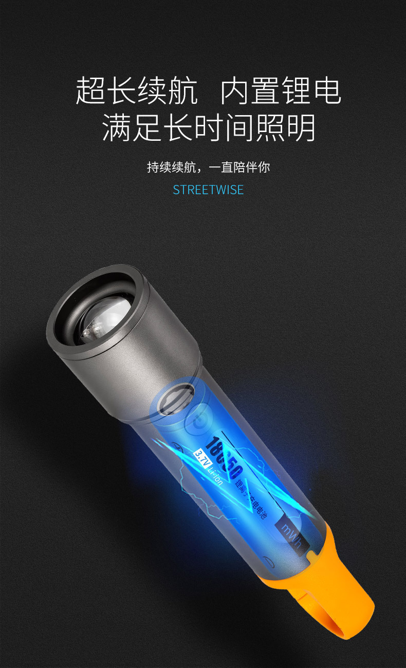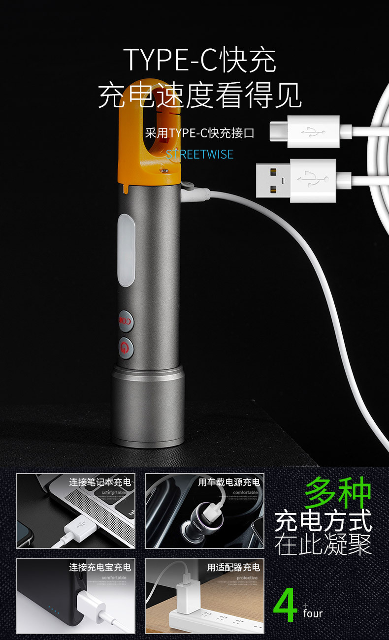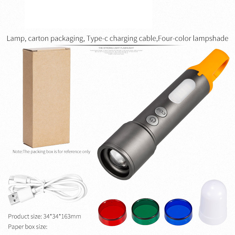 새로운 야외 알루미늄 합금 손전등 고휘도 긴 내구성 텔레스코픽 줌 고속 충전 휴대용 비상 조명 손전등