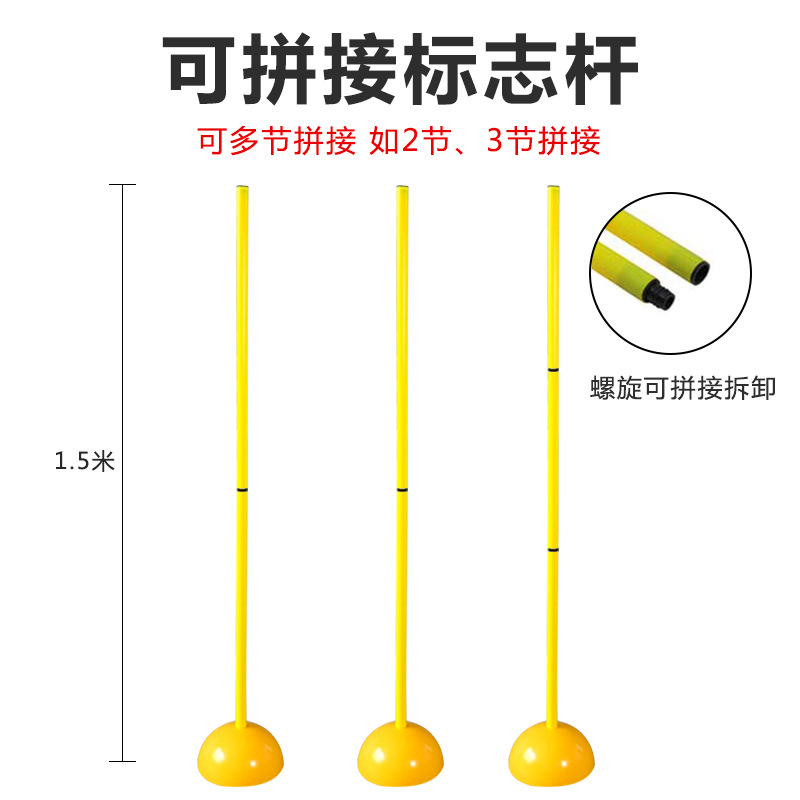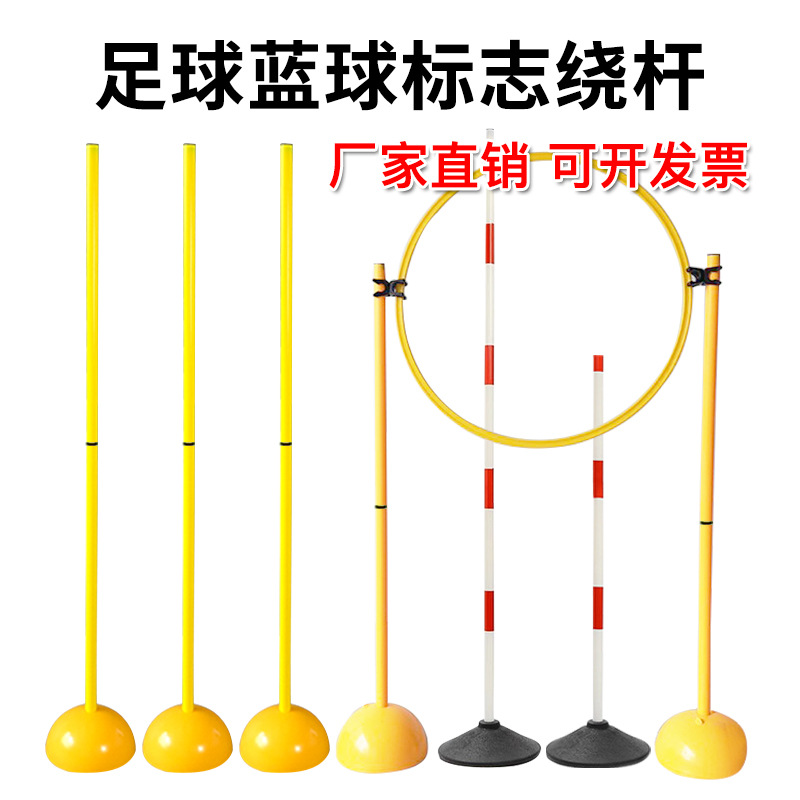 사인 폴 축구 훈련 장비 농구 보조 장비 뱀 달리기 장애물 장대 더미 주변의 축구 접합 테스트