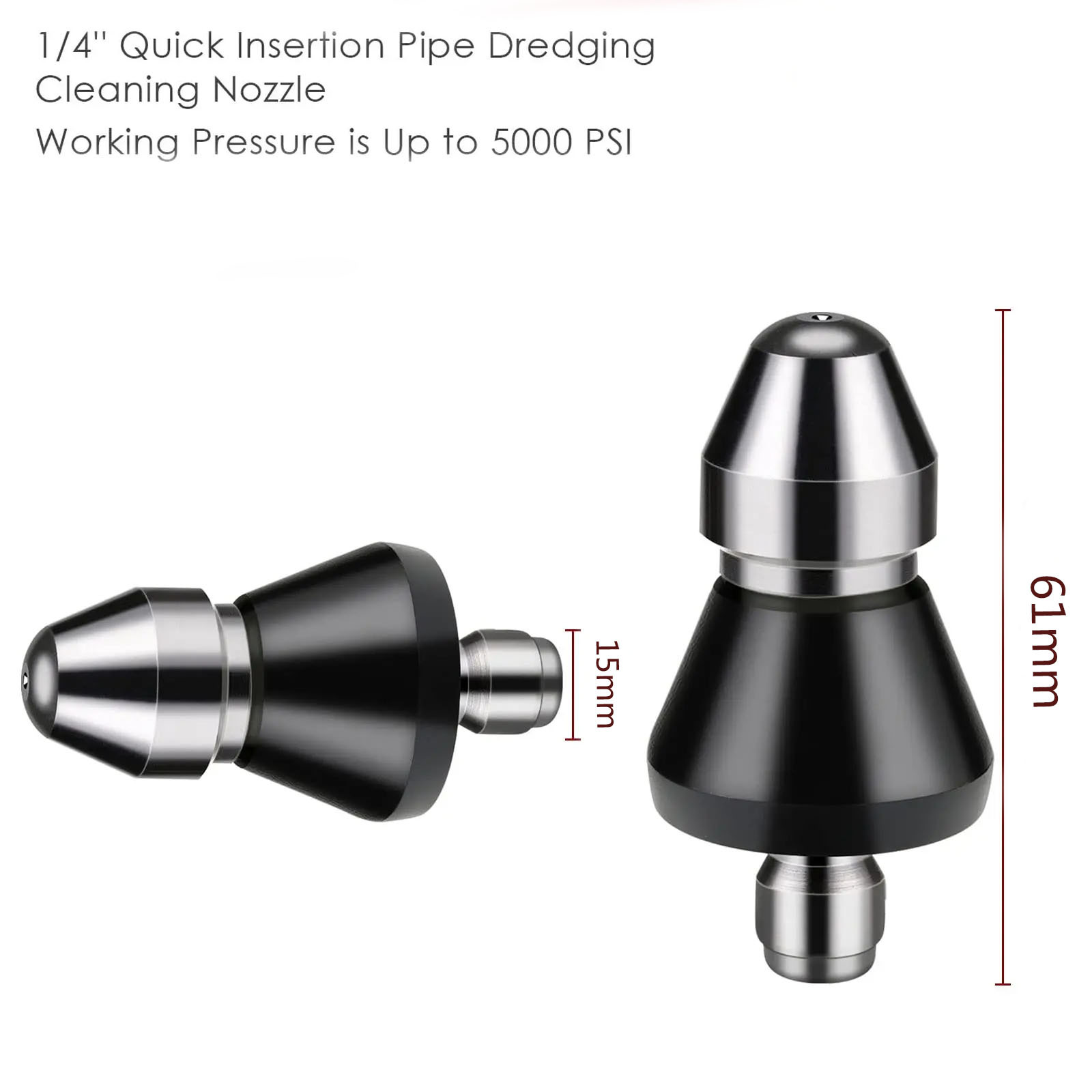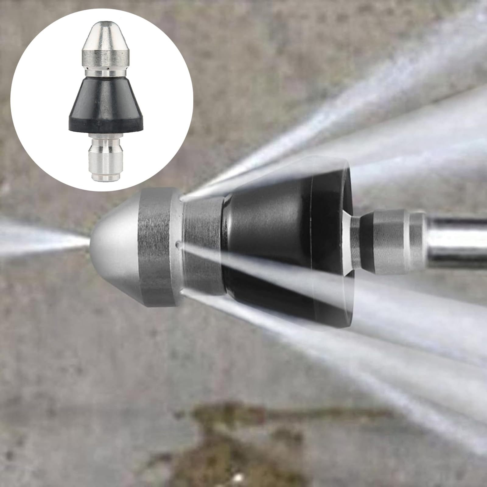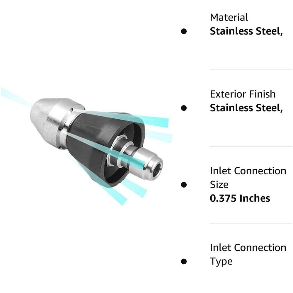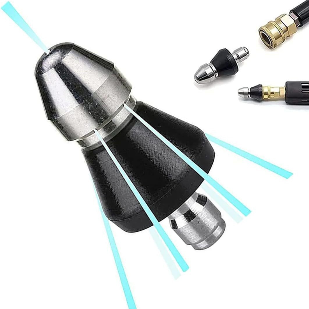 고압세척기 스테인리스 스프레이 노즐, 래트헤드 워터 마우스, 배관 청소 및 막힘 해소용, 전면 1개, 후면 6개 스프레이 노즐