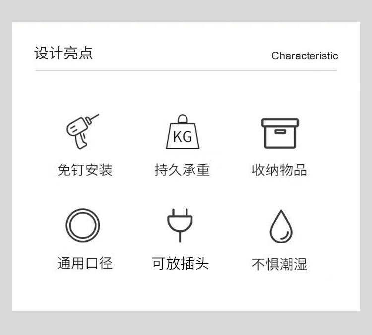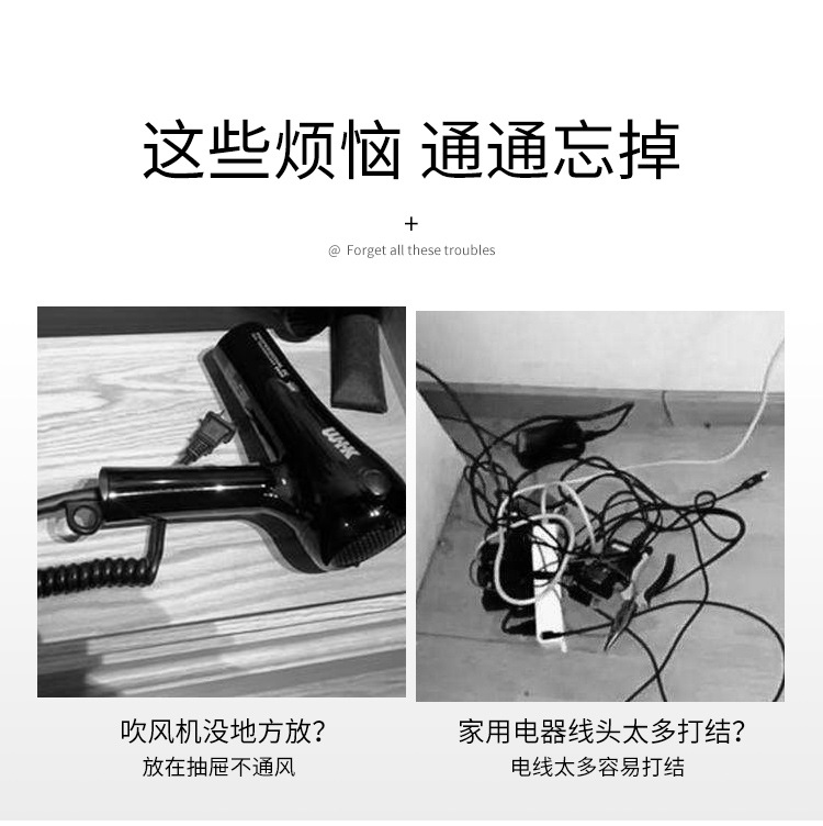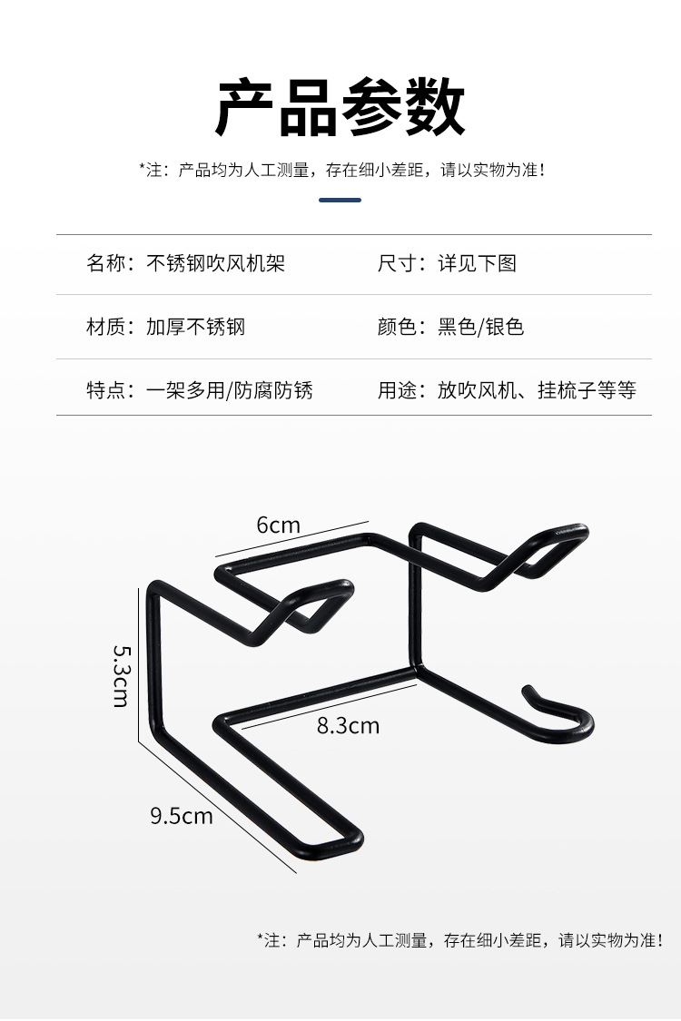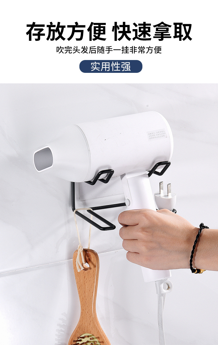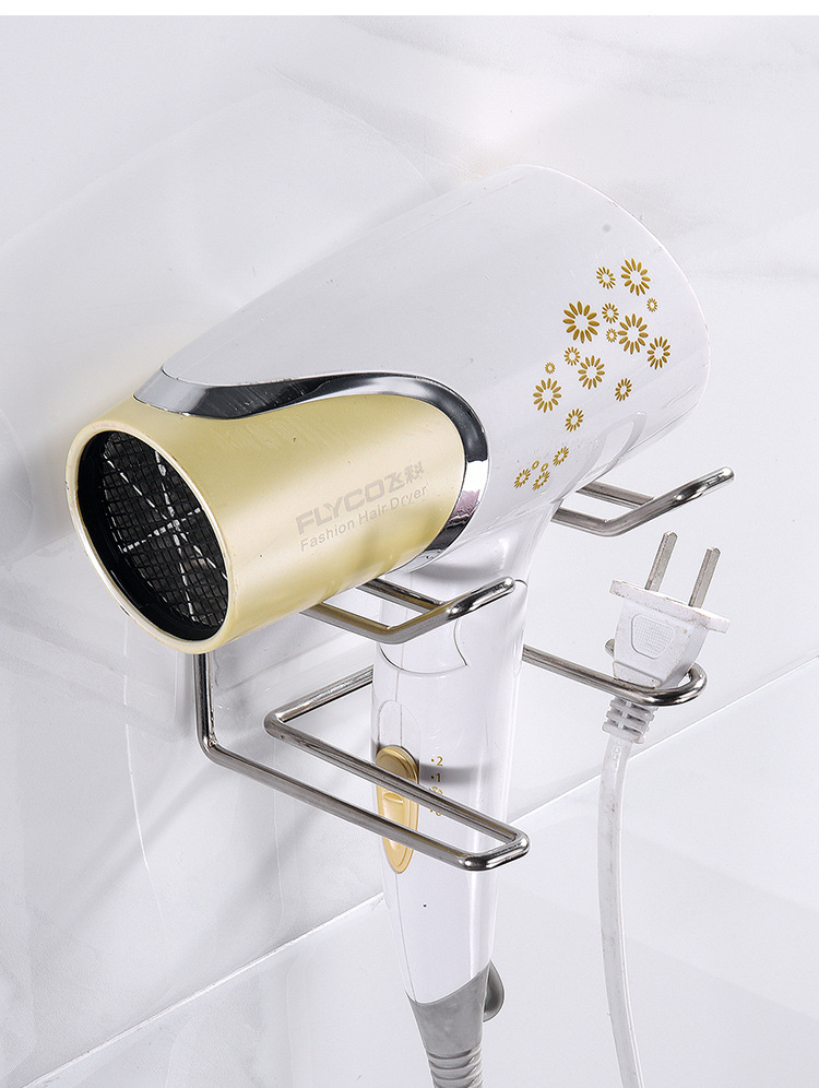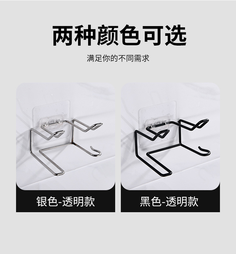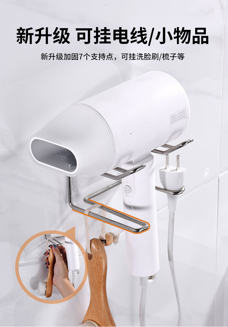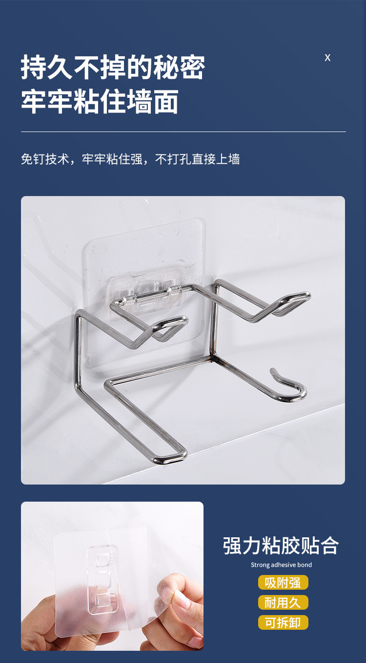 商品名称:无痕贴壁挂不锈钢可挂插头吹风机架--本色银