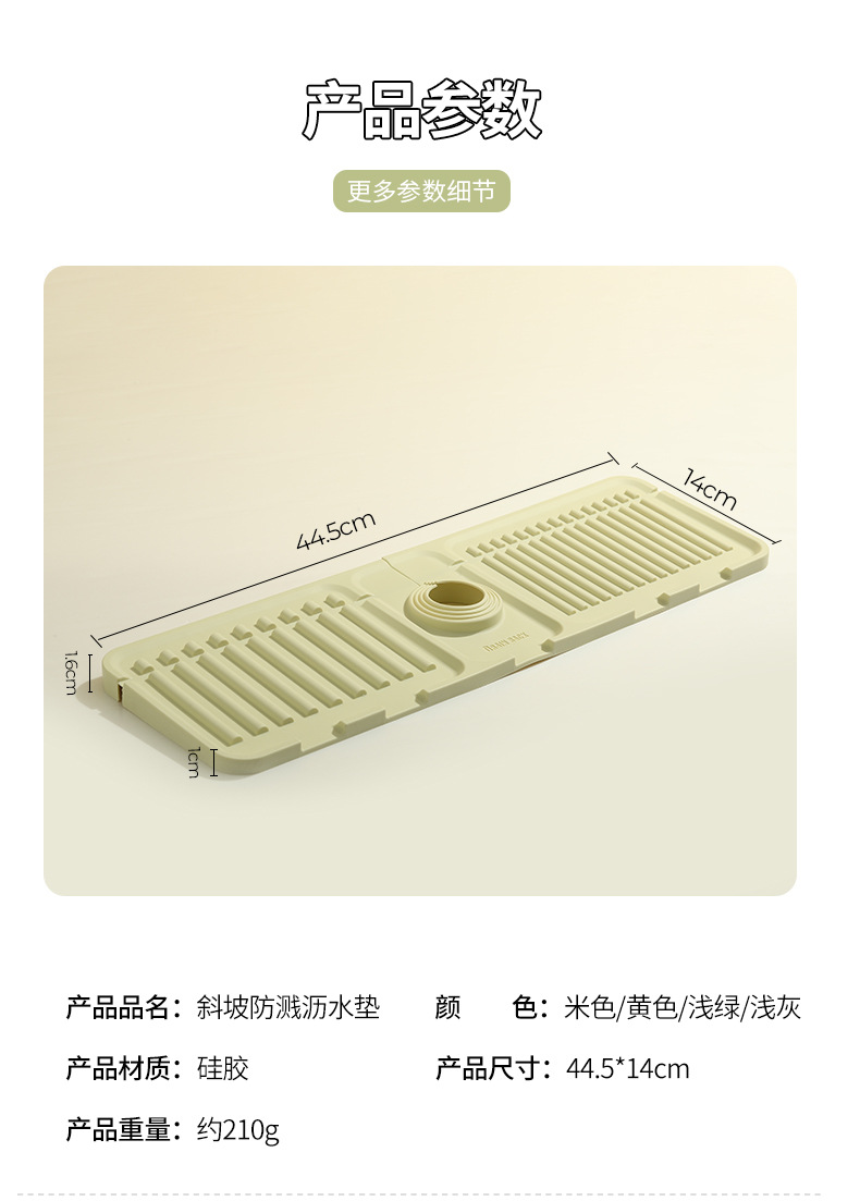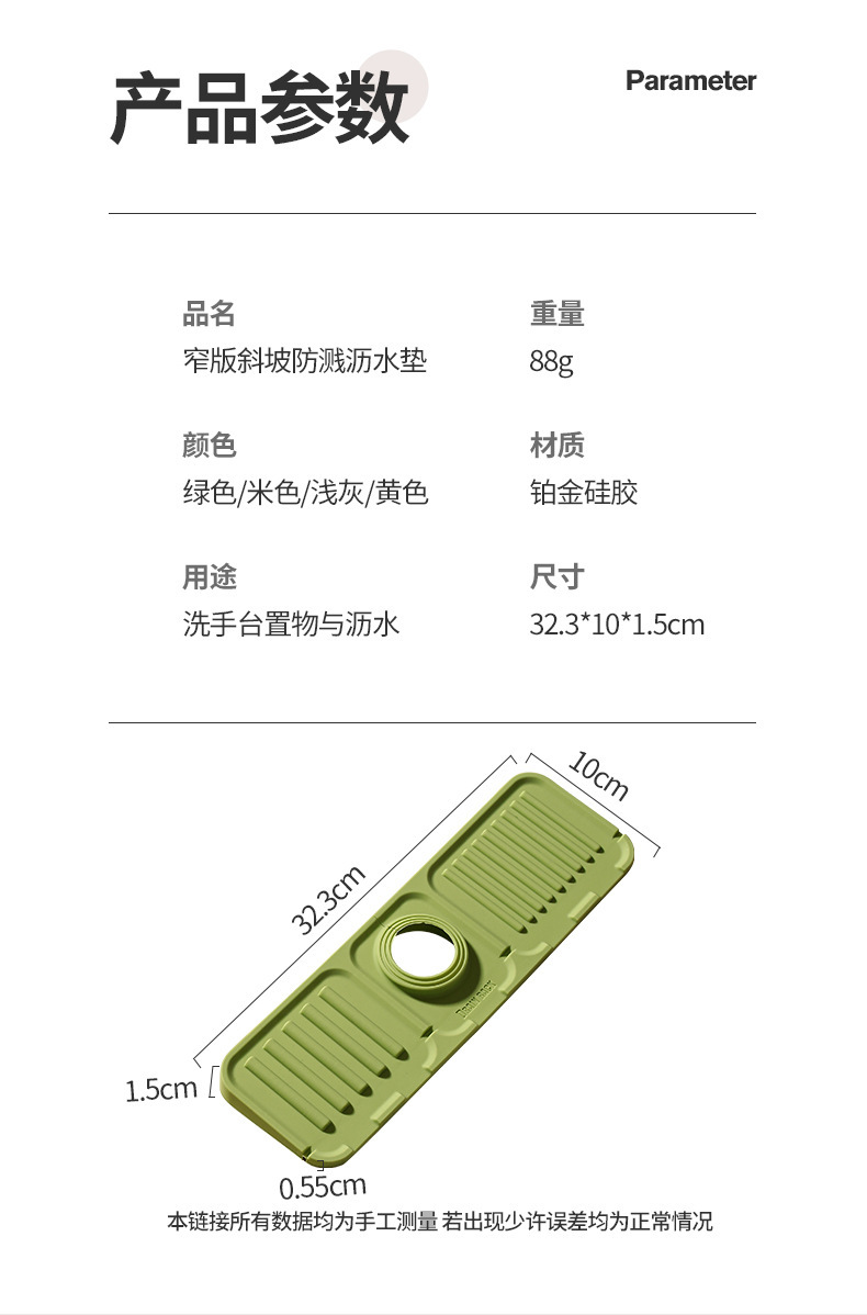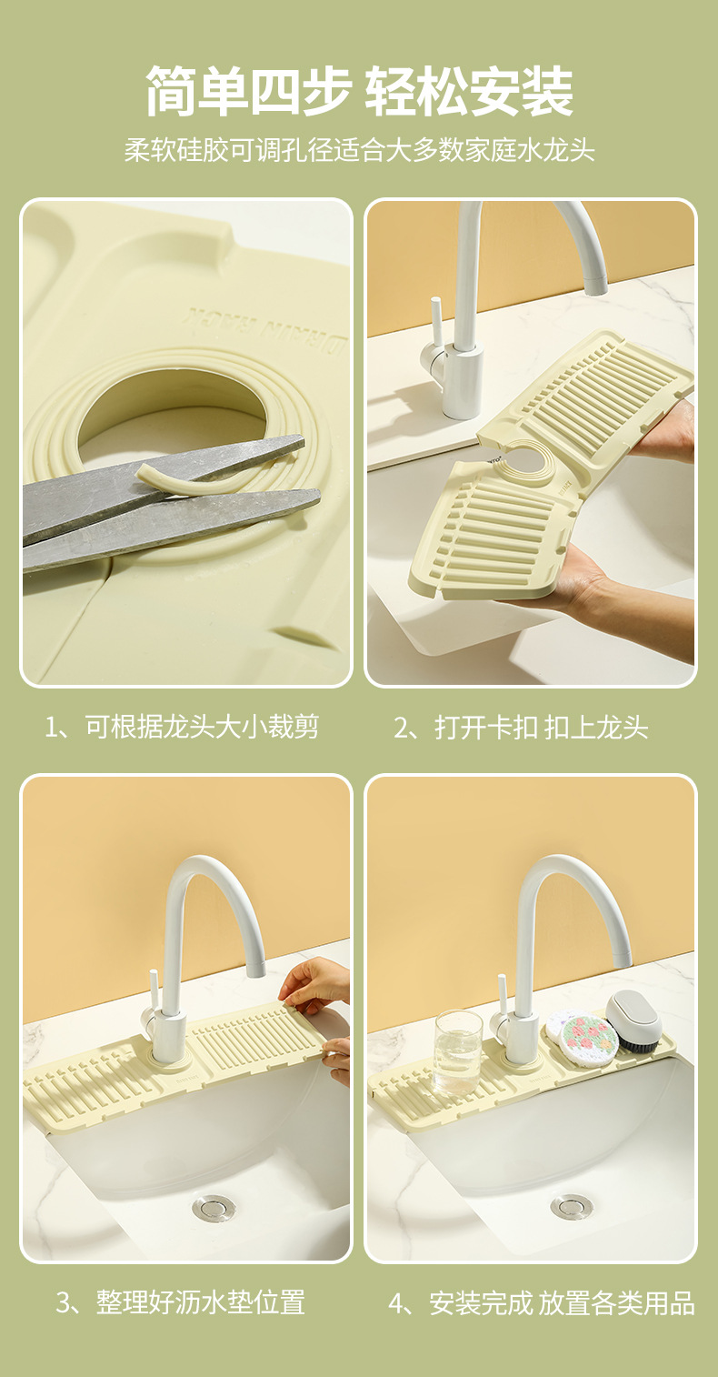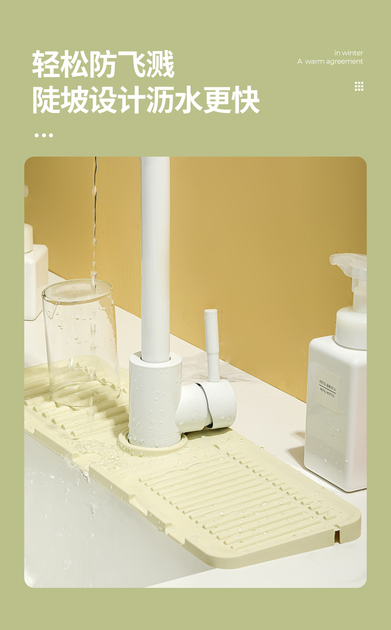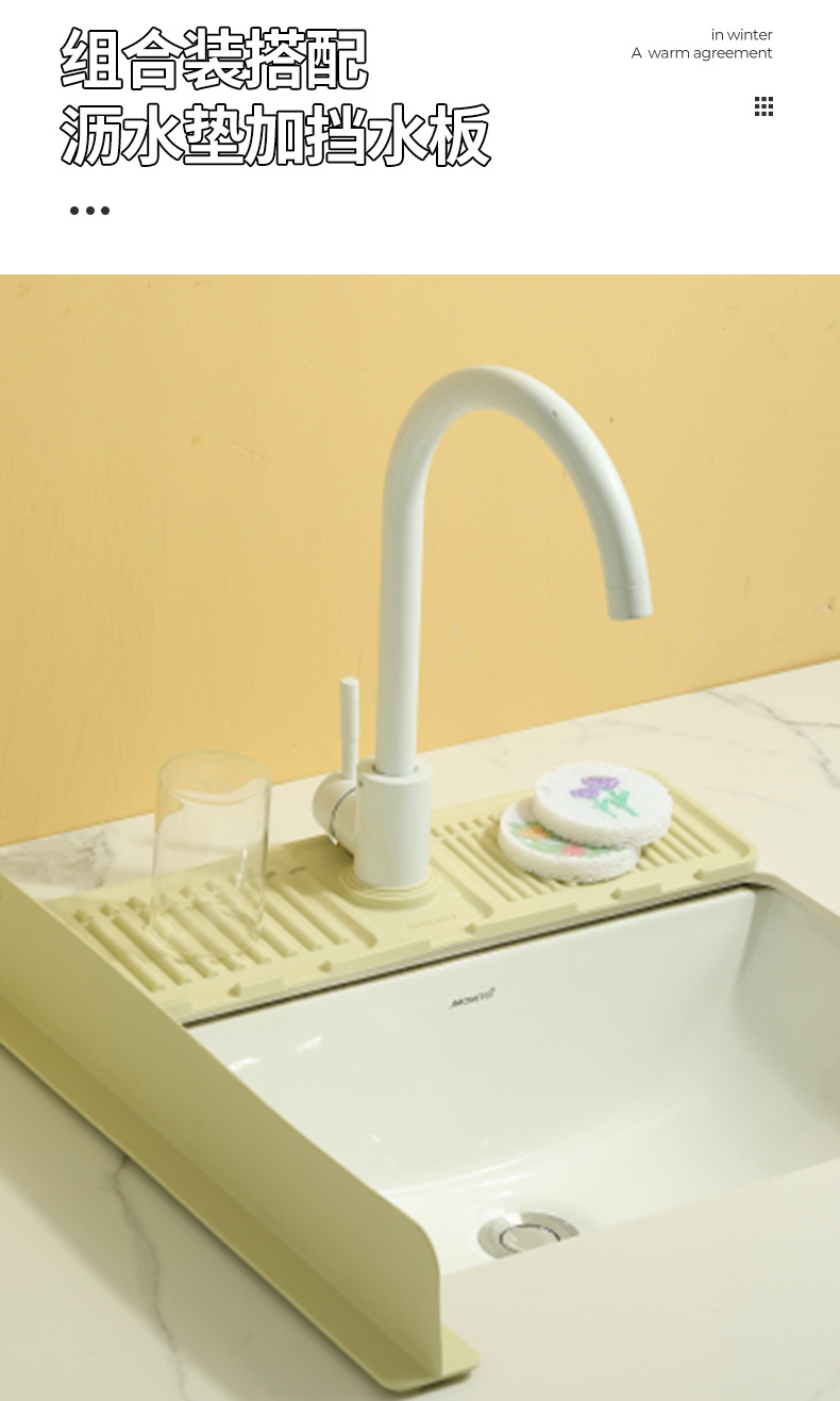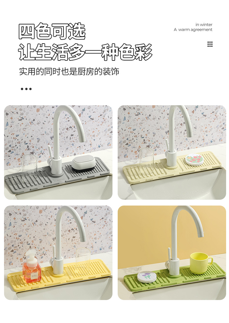 국경을 넘는 새로운 실리콘 배수 매트, 수도꼭지 물튀김 방지 매트, 주방 및 욕실용 가정용 높이가 높고 두꺼운 미끄럼 방지 매트