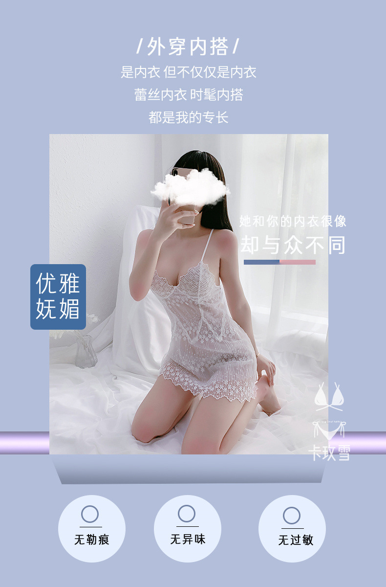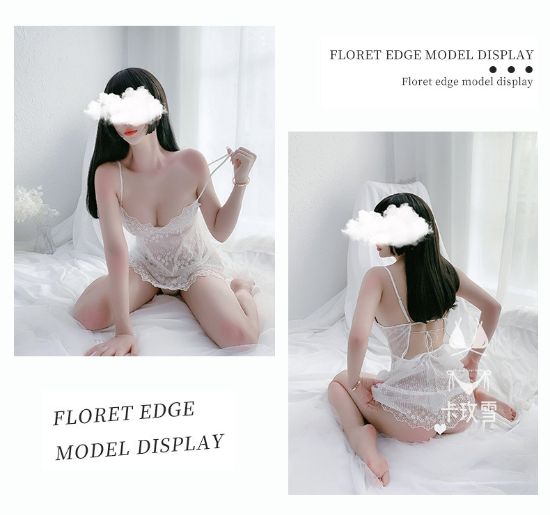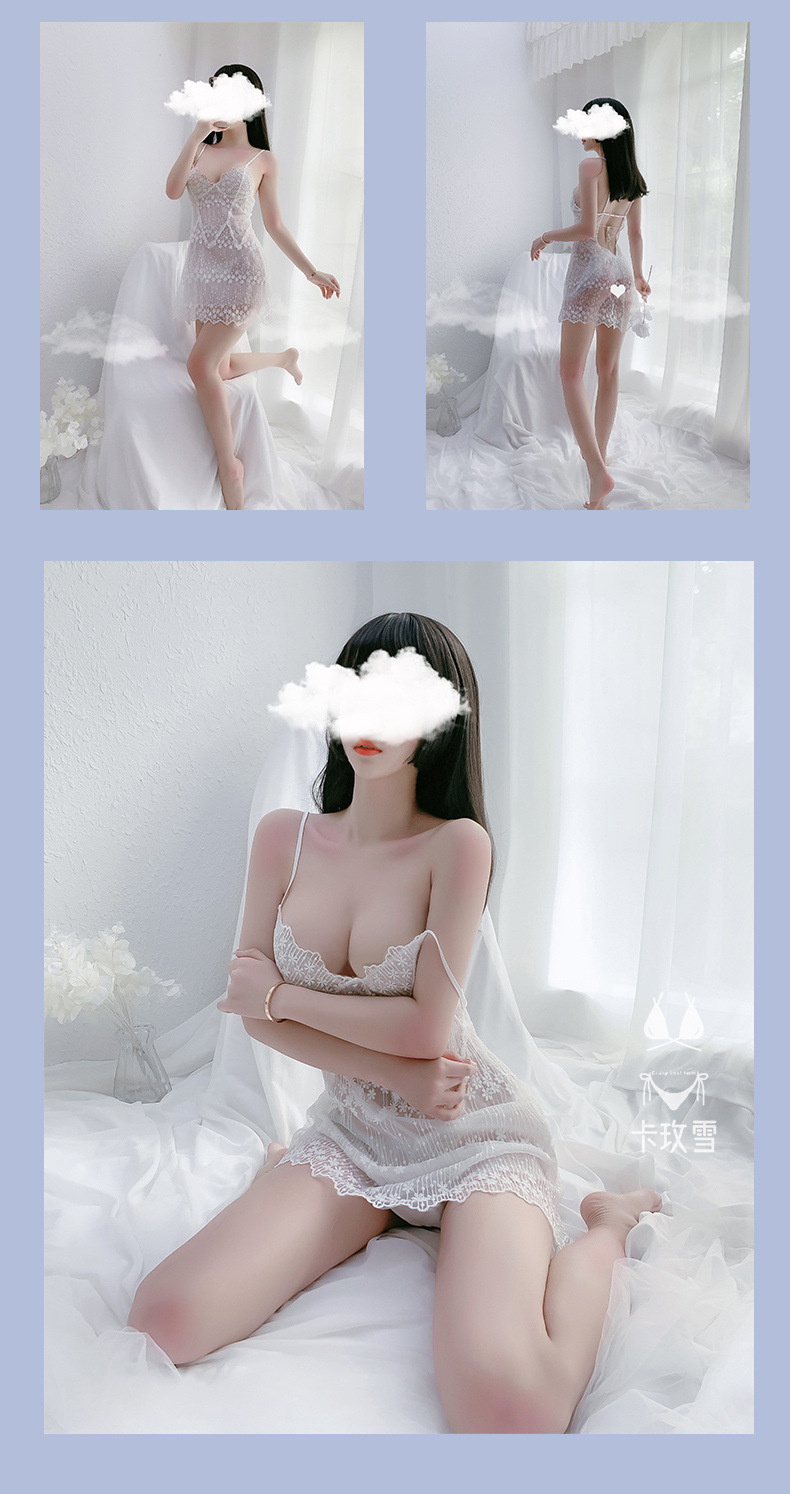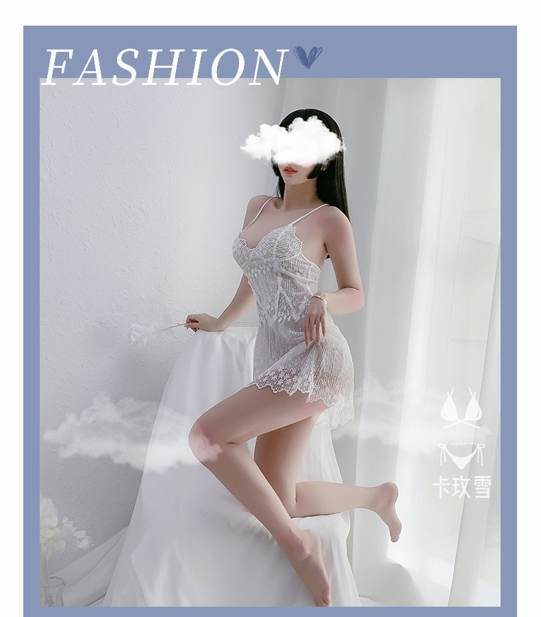 카메이쉐 에로틱 레이스 섹시 속옷 순수한 욕망의 메쉬 속이 비치는 나이트가운 등이 없는 유혹적인 작은 가슴용 슬립 드레스 1356