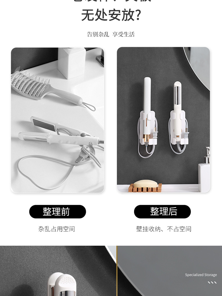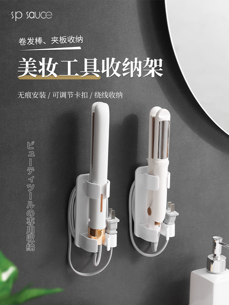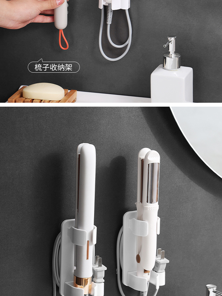 컬링 헤어 랙 스토리지 랙 화장실 벽걸이 부목 스트레이트 헤어 빗 헤어 드라이어 보관 랙 뷰티 메이크업 도구 보관 랙