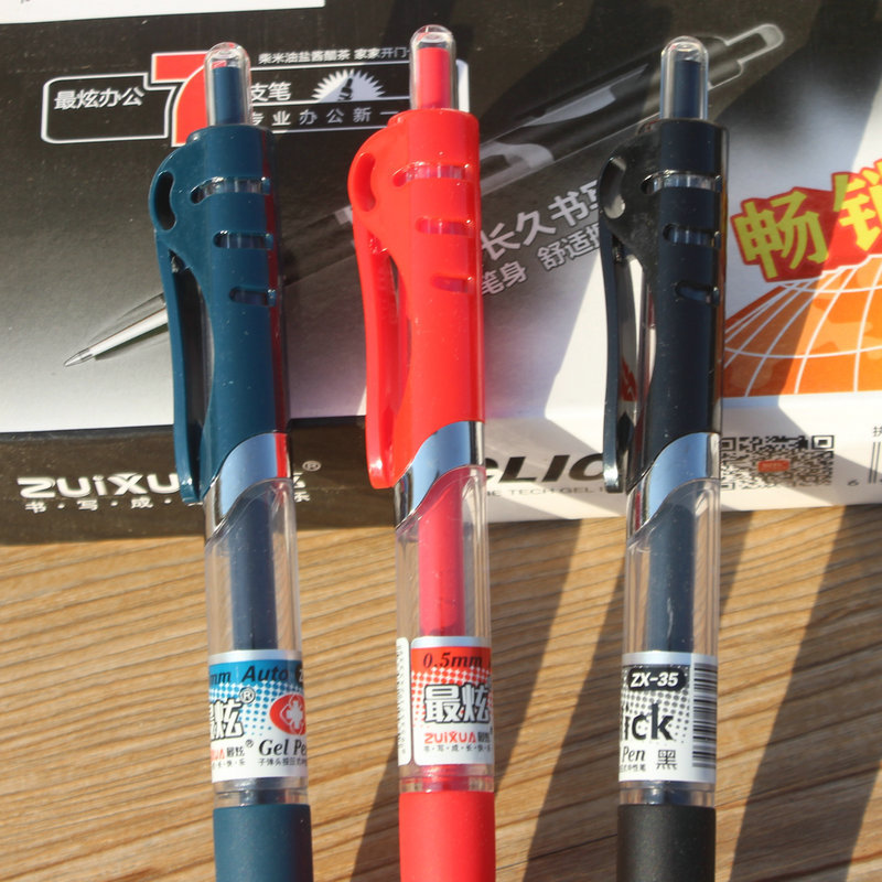 ZUIXUAN 프레스 젤 펜 0.5 총알 치는 사무실 사인 펜 ZX35 학생 시험 펜 문구