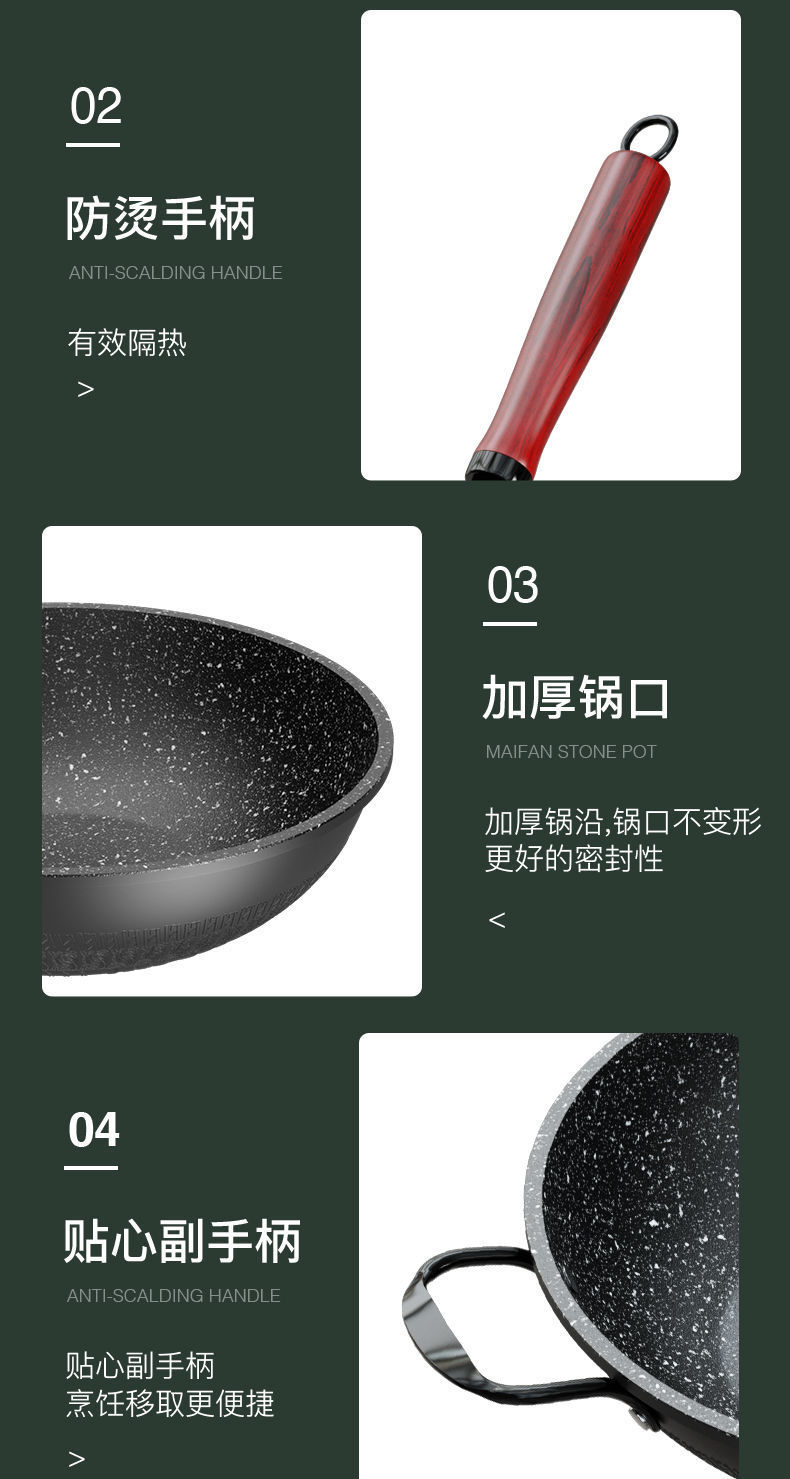 Maifan 돌 붙지 않는 팬 가정용 두꺼운 다기능 냄비 팬 비 흄 유도 쿠커 가스 렌지 범용