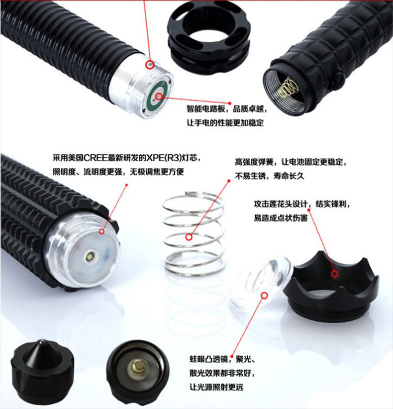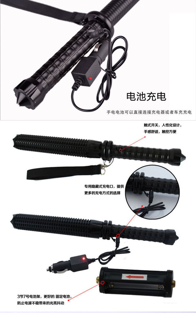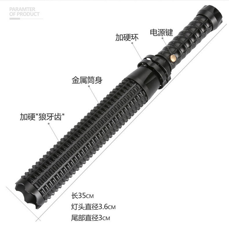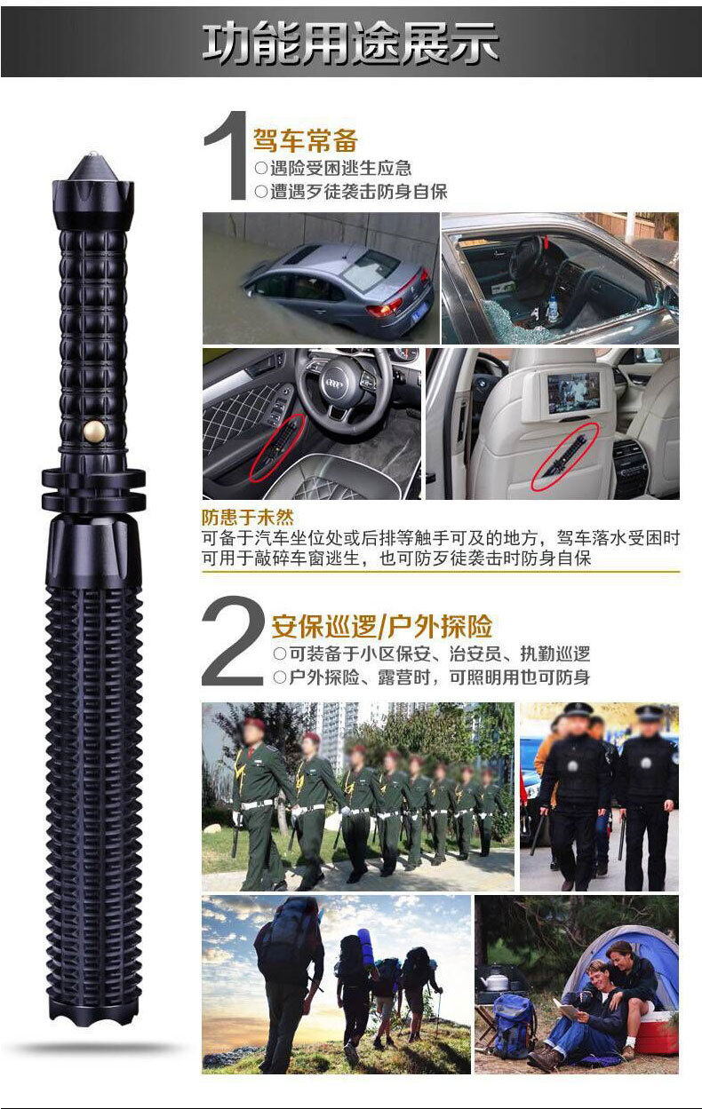 손전등 야외 강한 빛 충전 다기능 순찰 망원경 줌 메이스 원격 차량 장착 깨진 창 손전등