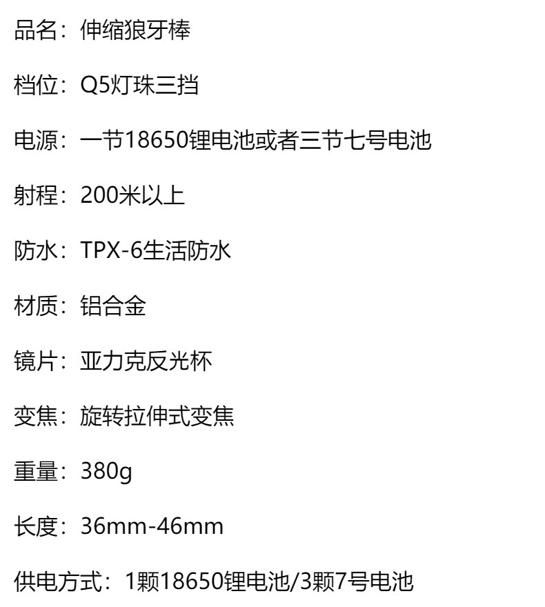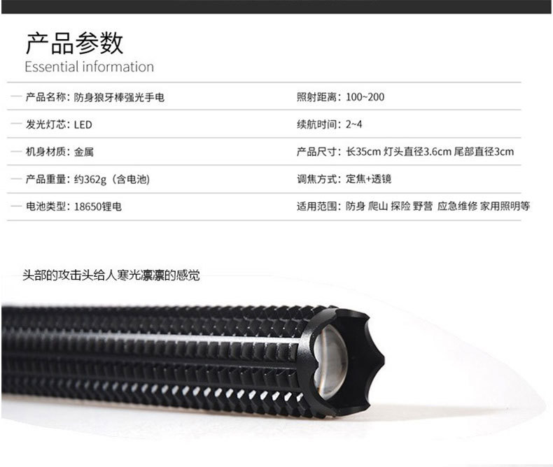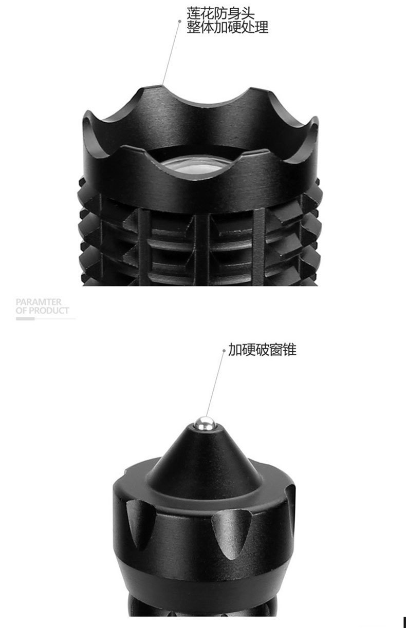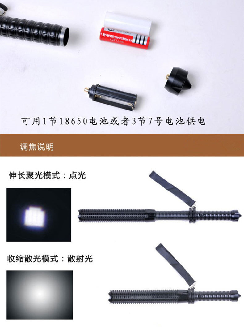 손전등 야외 강한 빛 충전 다기능 순찰 망원경 줌 메이스 원격 차량 장착 깨진 창 손전등