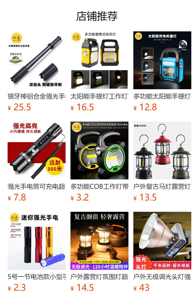 Y 손전등 야외 강한 빛 충전 다기능 순찰