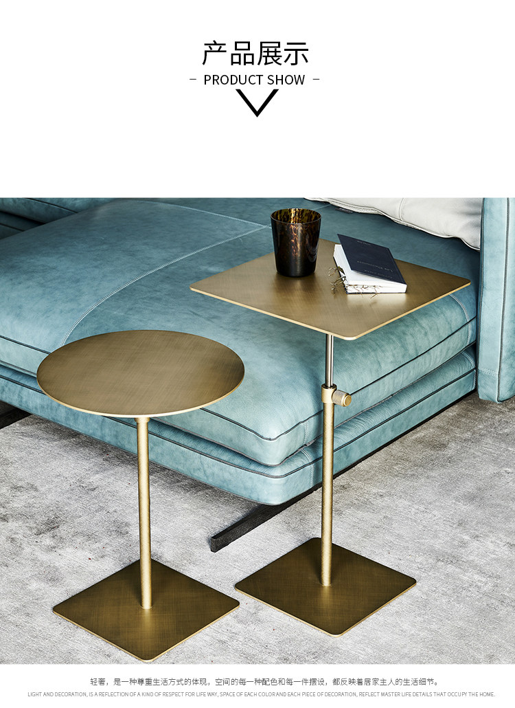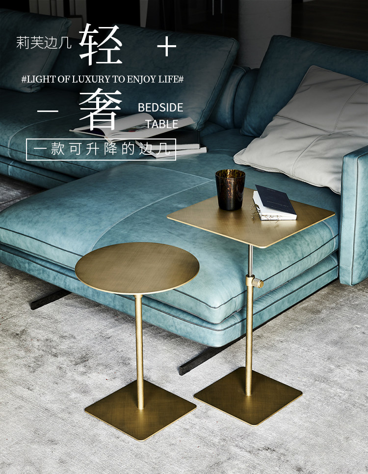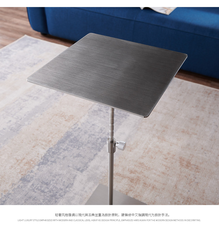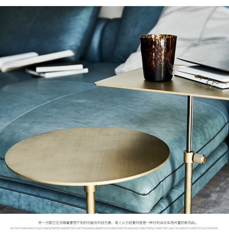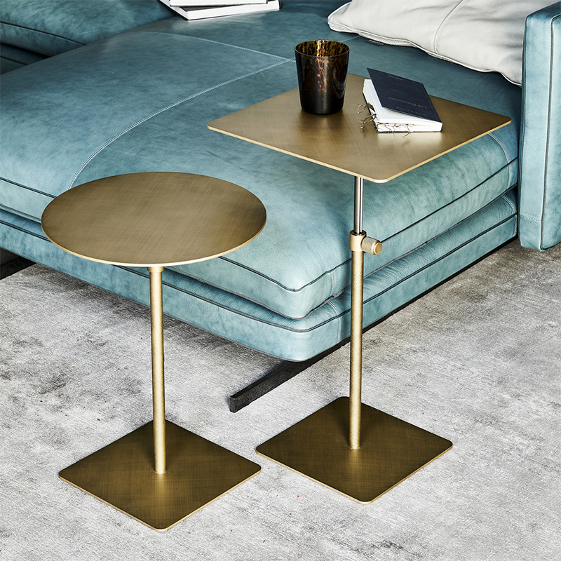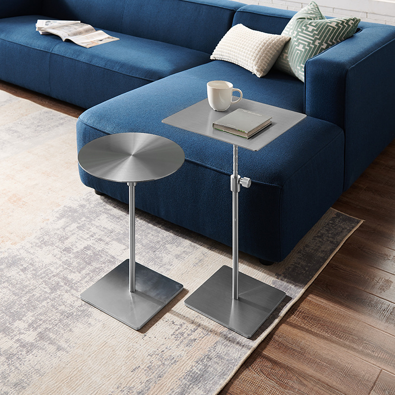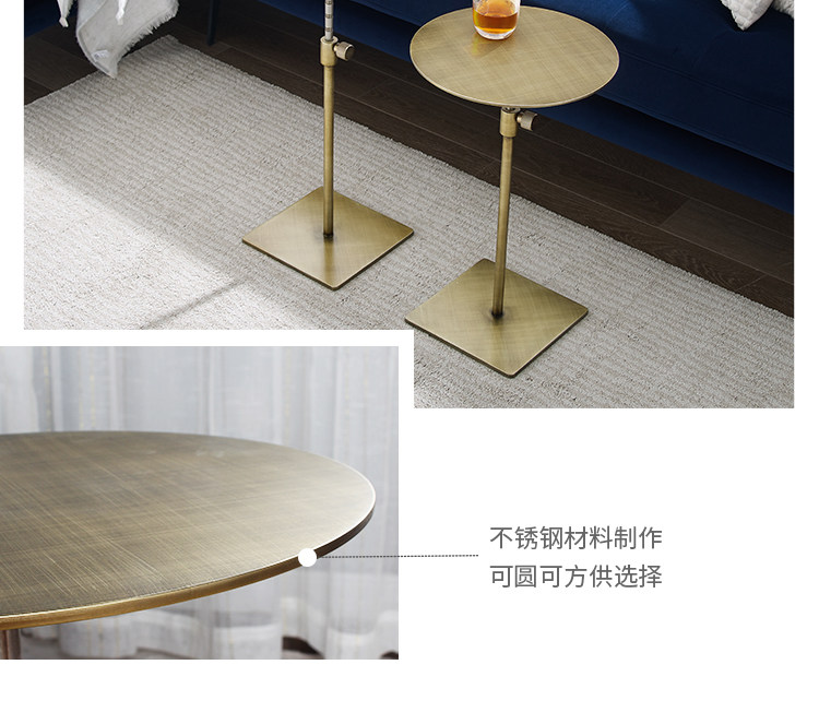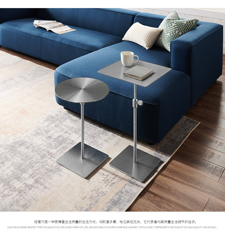 스테인레스 스틸 리프팅 사이드 테이블 작은 원형 테이블 높은 발 커피 테이블 커피 테이블 모바일 소파 사이드 테이블 조명 고급 금속 코너 테이블
