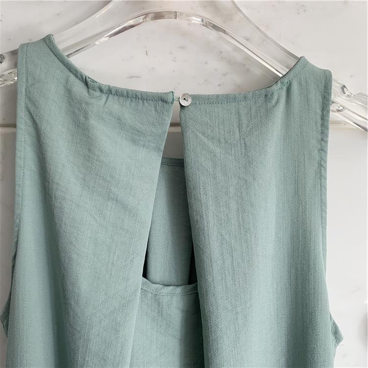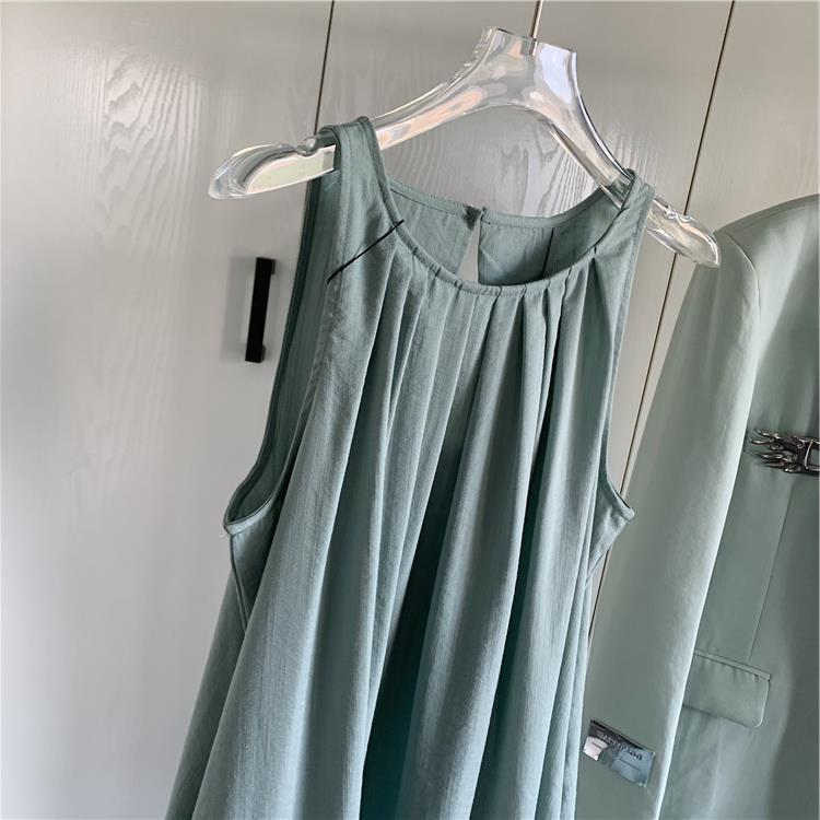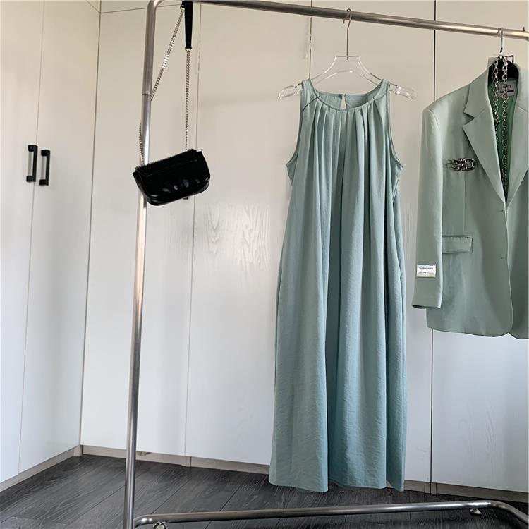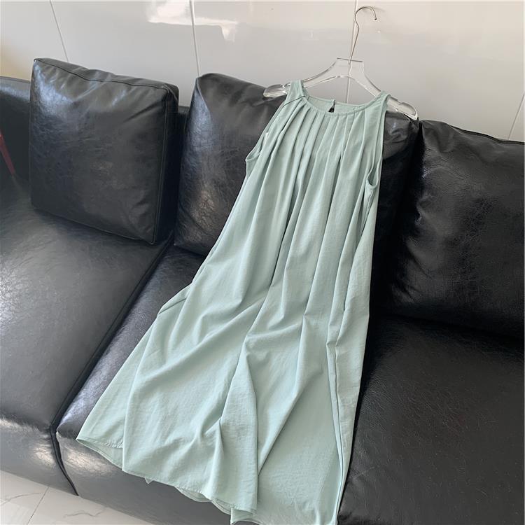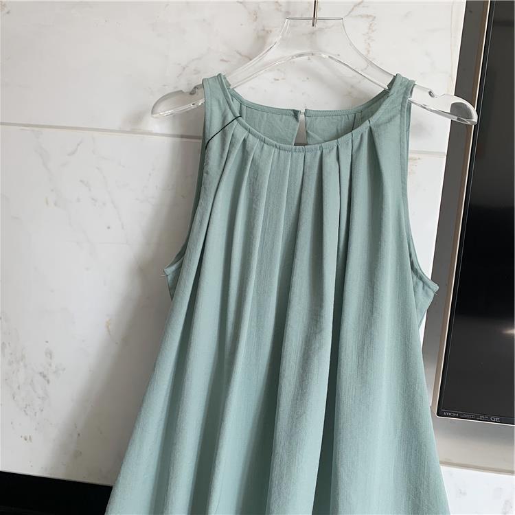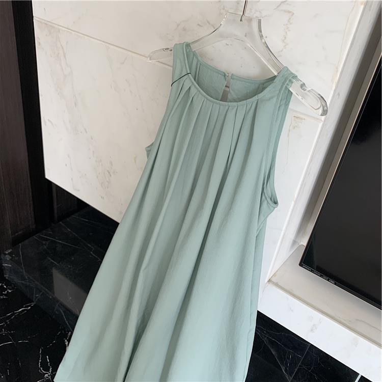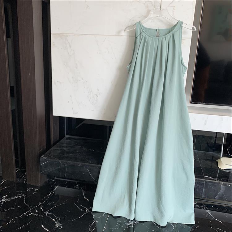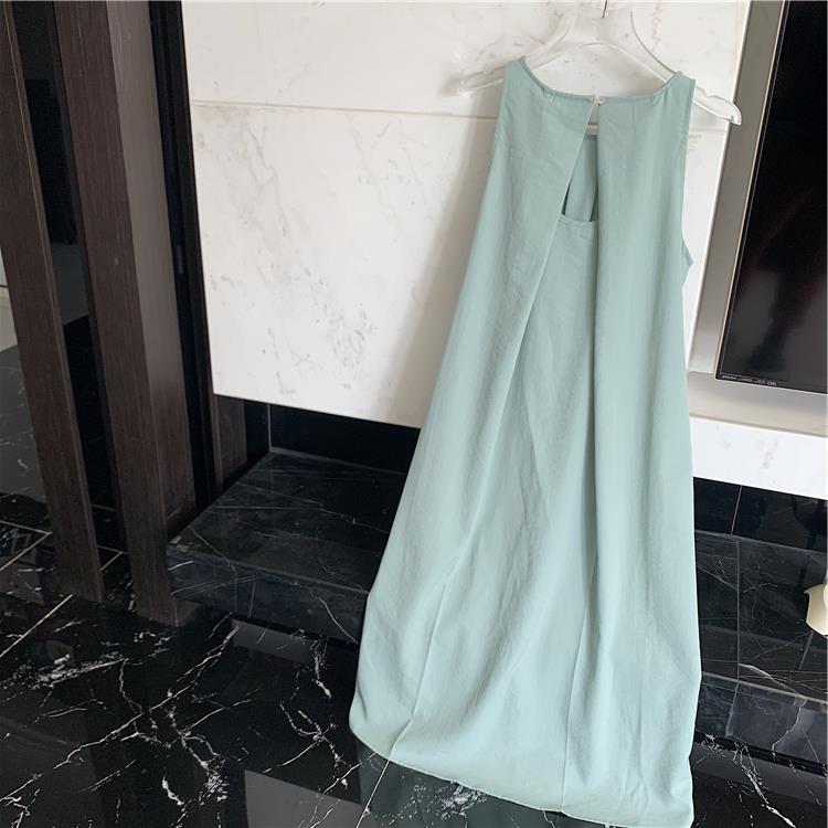 한국 디자인 틈새 느슨한 슬리밍 비치 긴 원피스 여성의 휴가 민소매 멋진 조끼 등이없는 원피스 여름