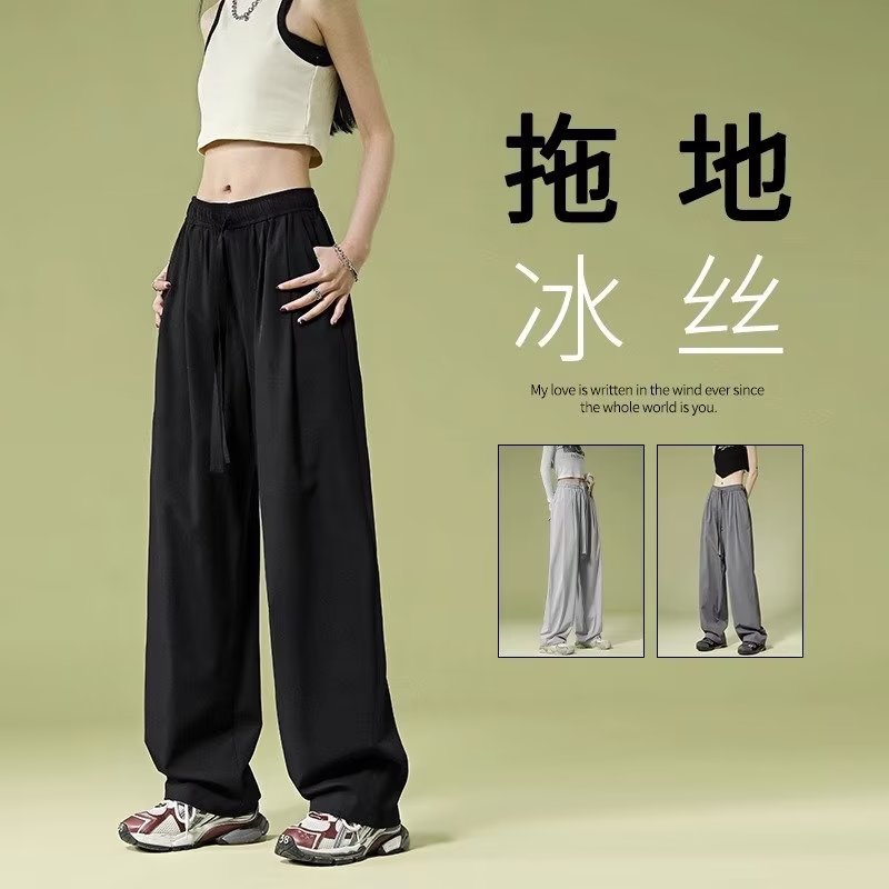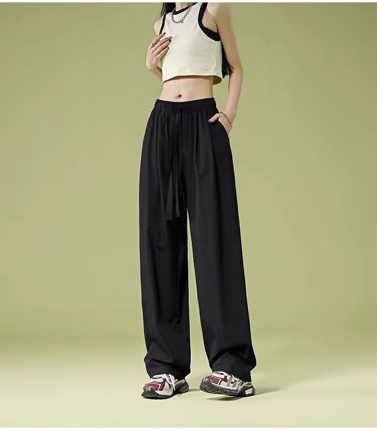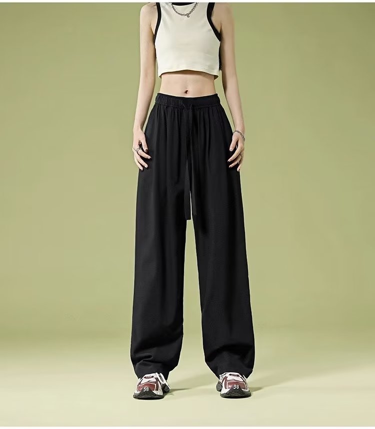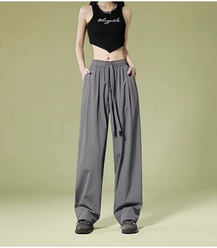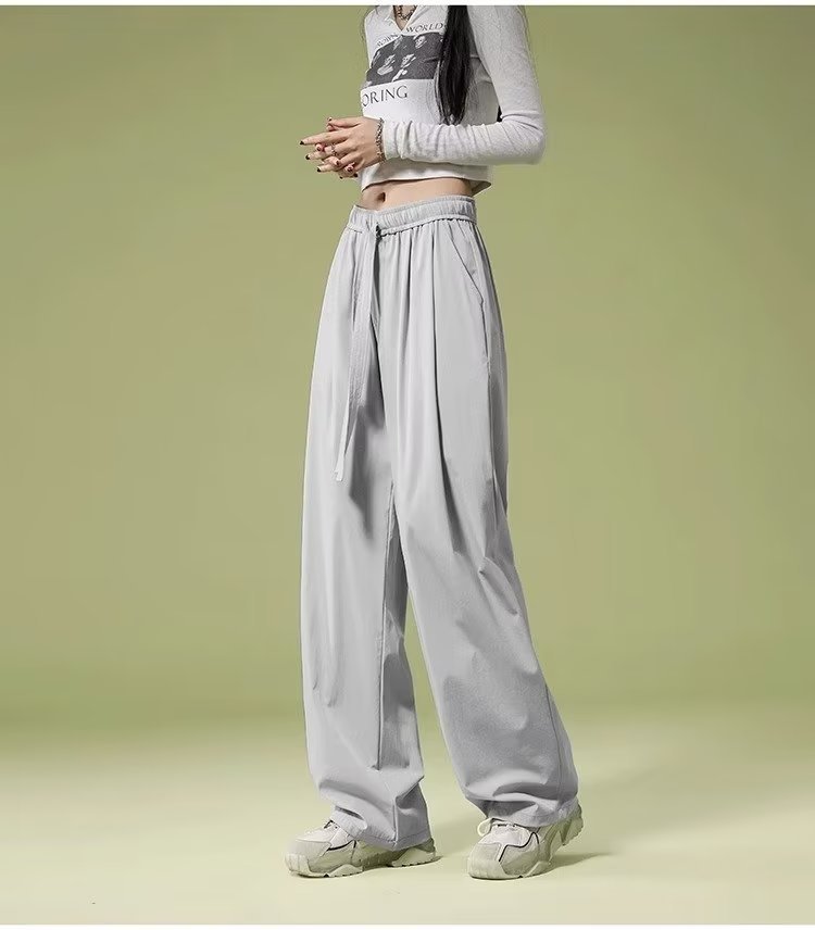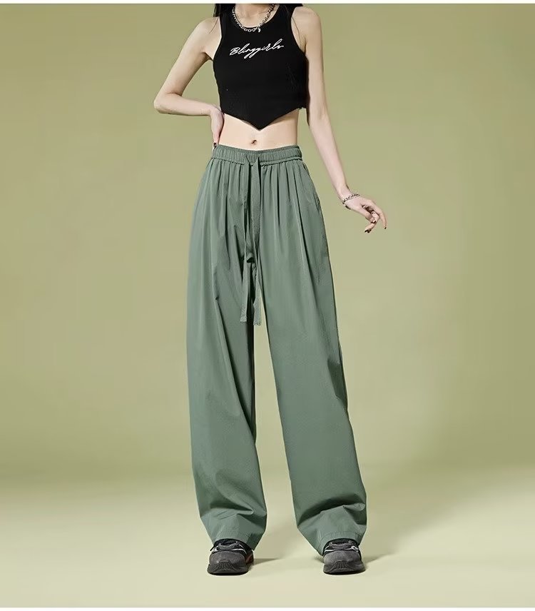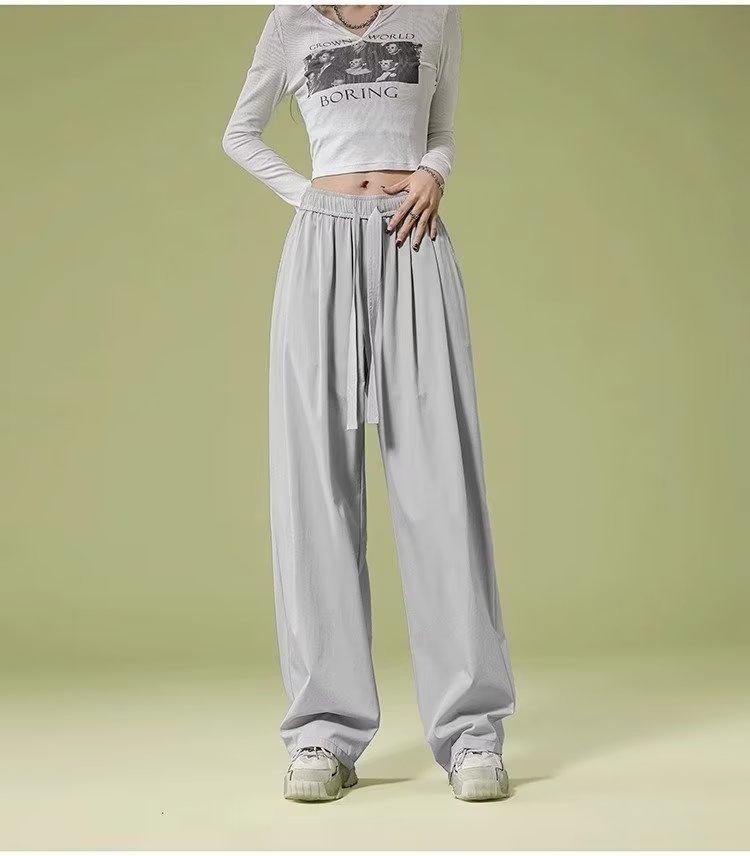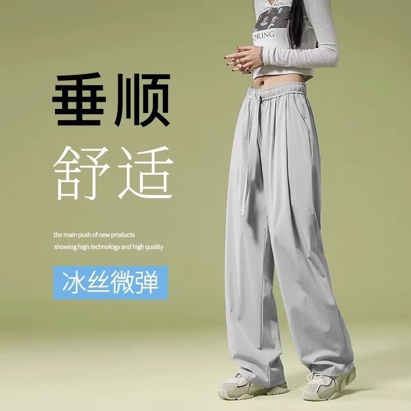 재즈 댄싱 재즈 팬츠 여성용 여름 소형 퀵 드라이 아이스 실크 와이드 레그 팬츠 아메리칸 스타일 레트로 스포츠 캐주얼 팬츠