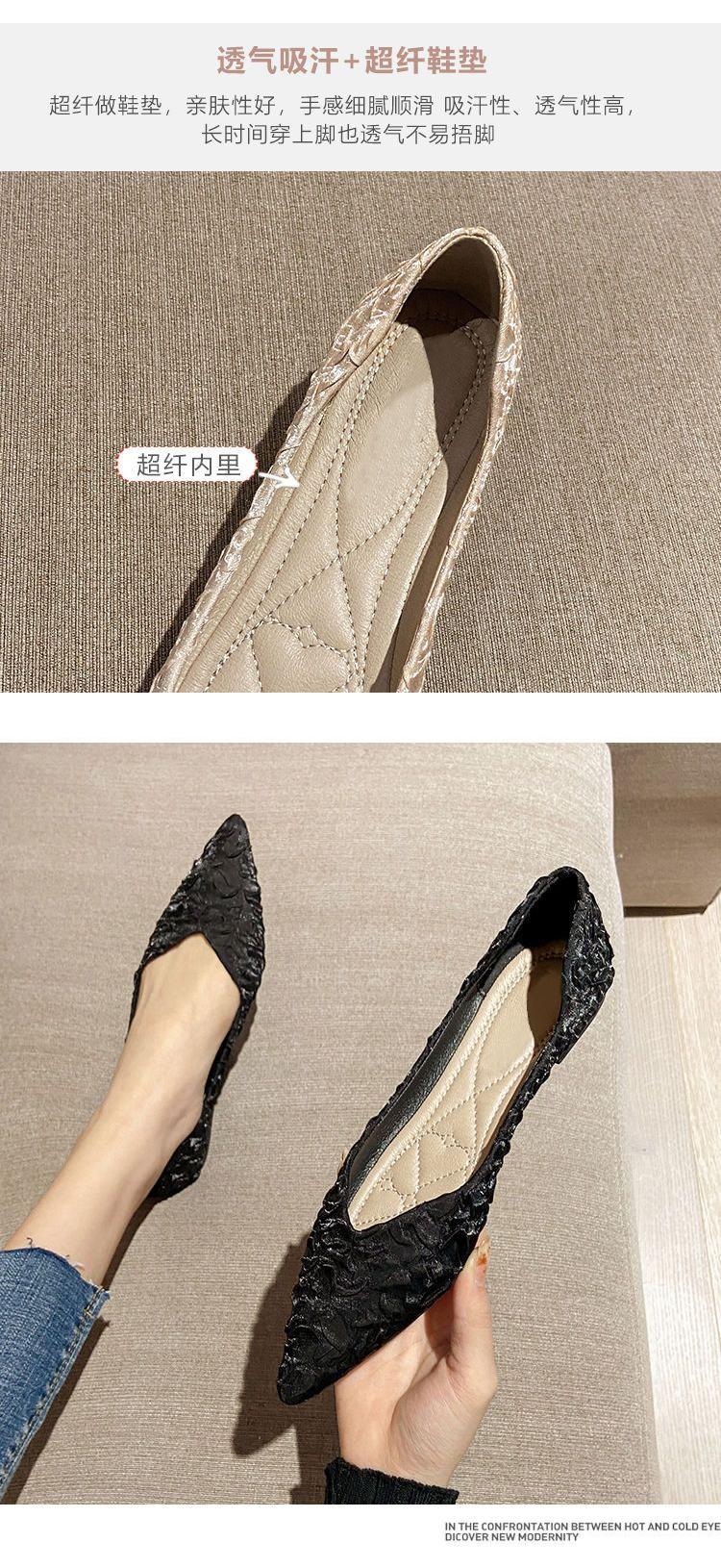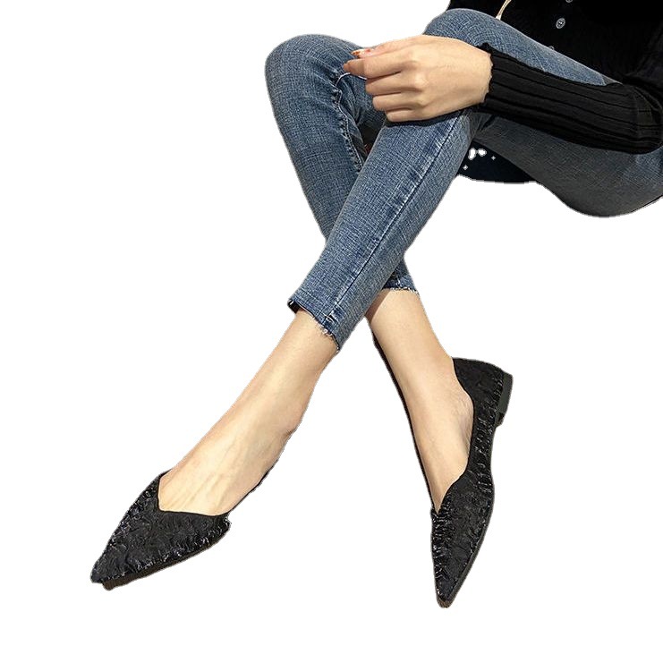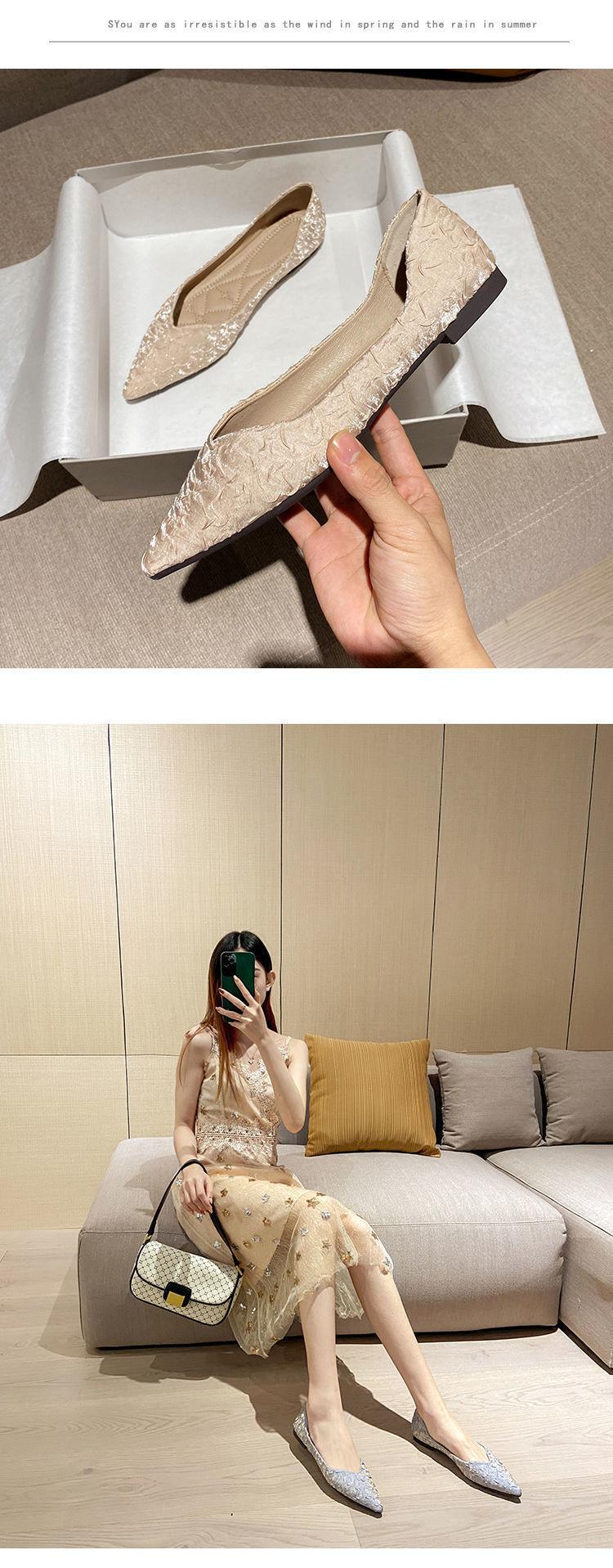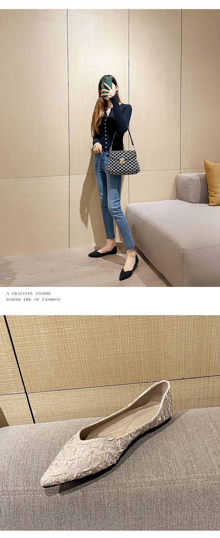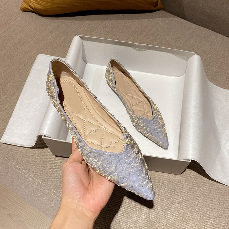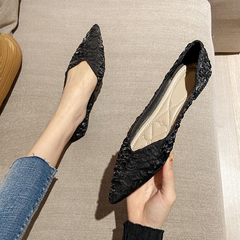 부드러운 이브닝 스타일 뾰족한 얕은 입 싱글 레이어 신발 여성용 플랫 2023 봄과 여름 새로운 간단한 임산부 완두콩 신발 작업 신발