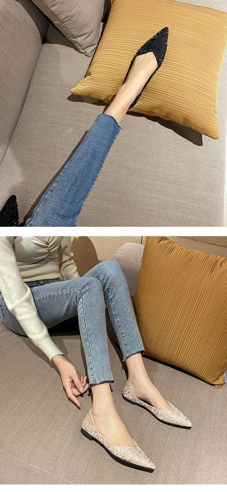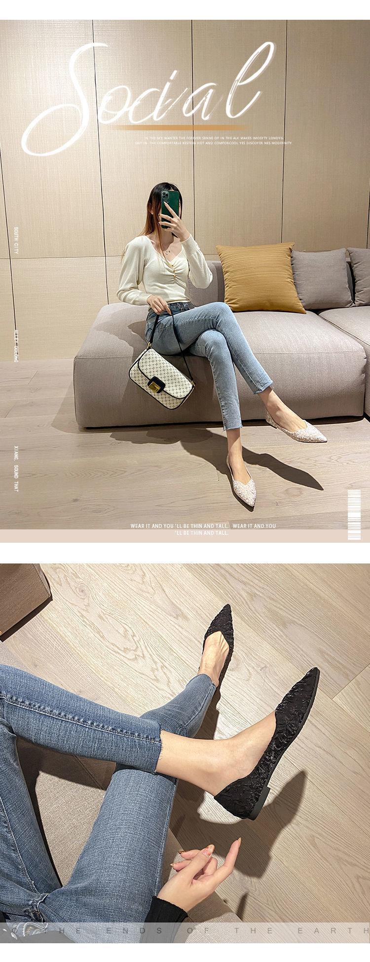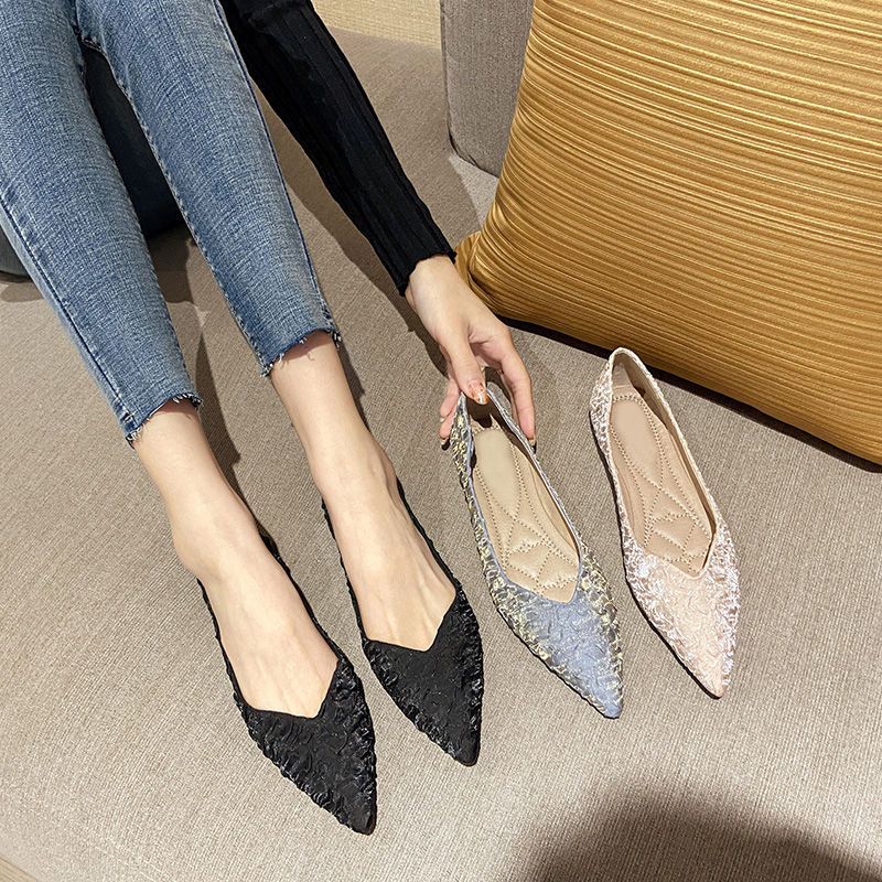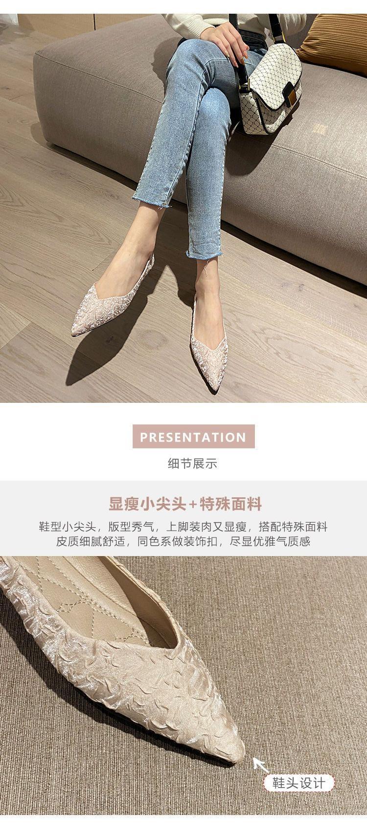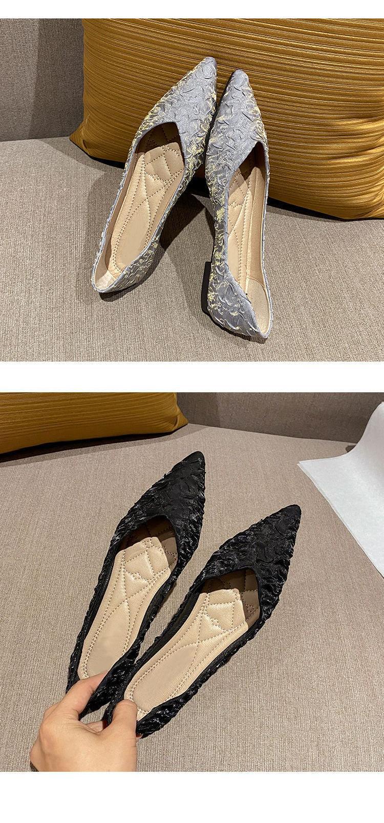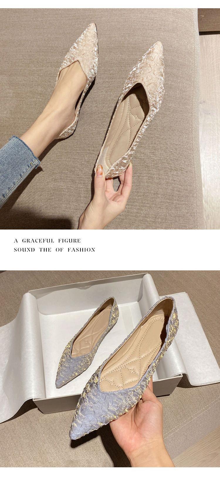 부드러운 이브닝 스타일 뾰족한 얕은 입 싱글 레이어 신발 여성용 플랫 2023 봄과 여름 새로운 간단한 임산부 완두콩 신발 작업 신발