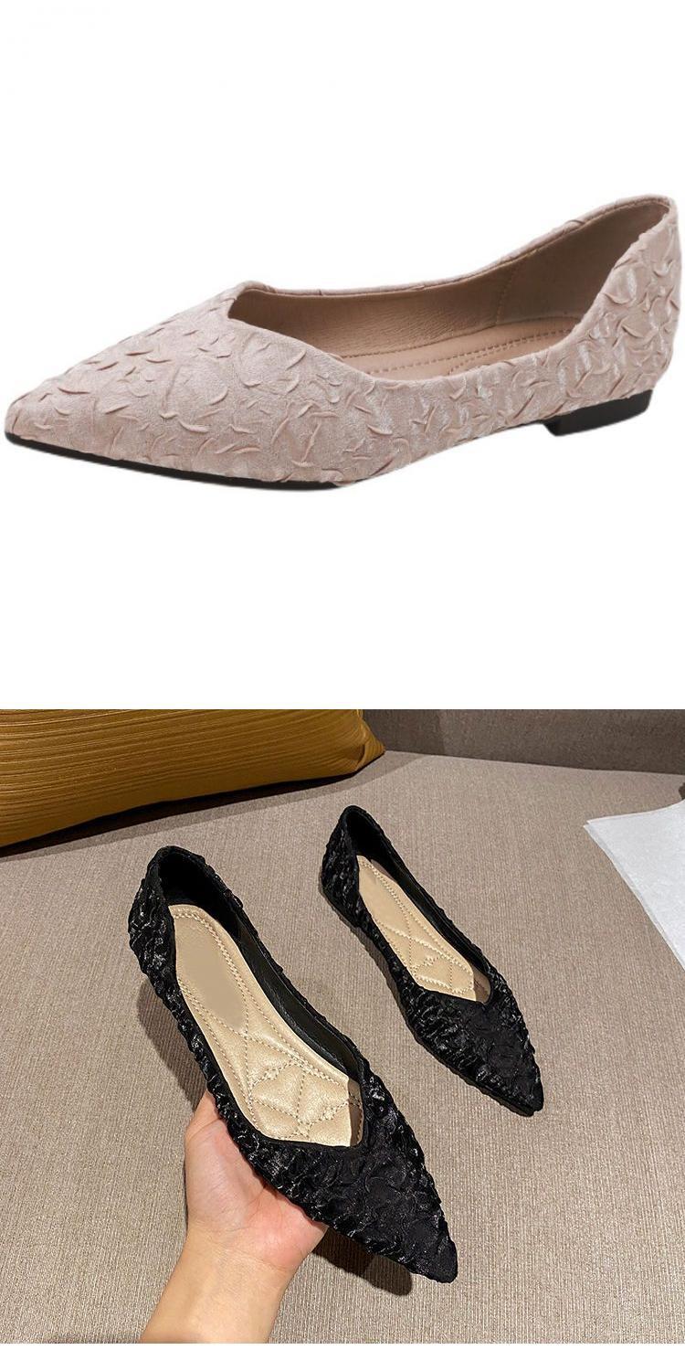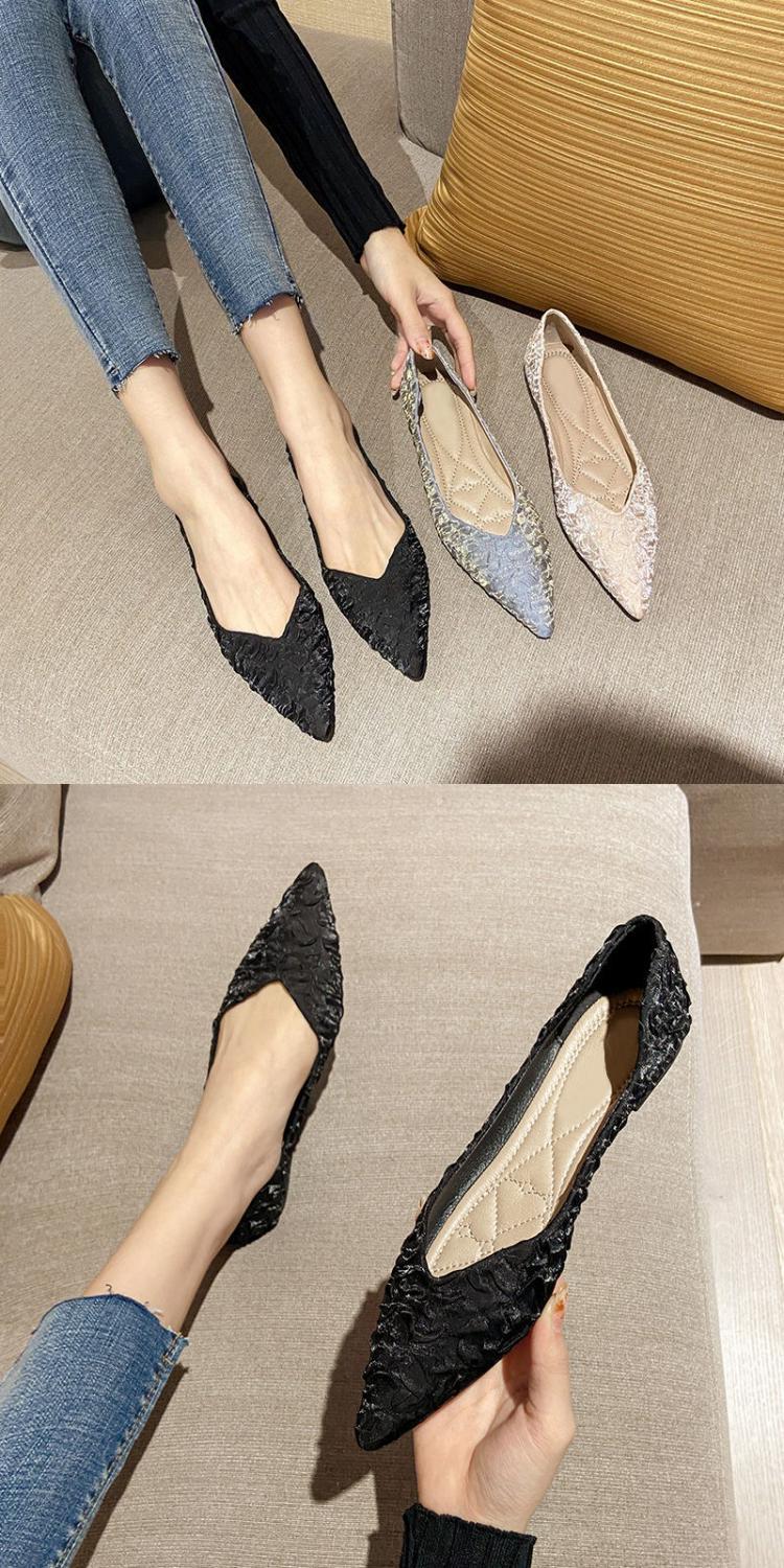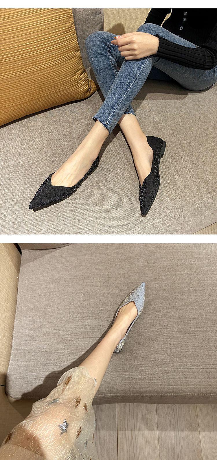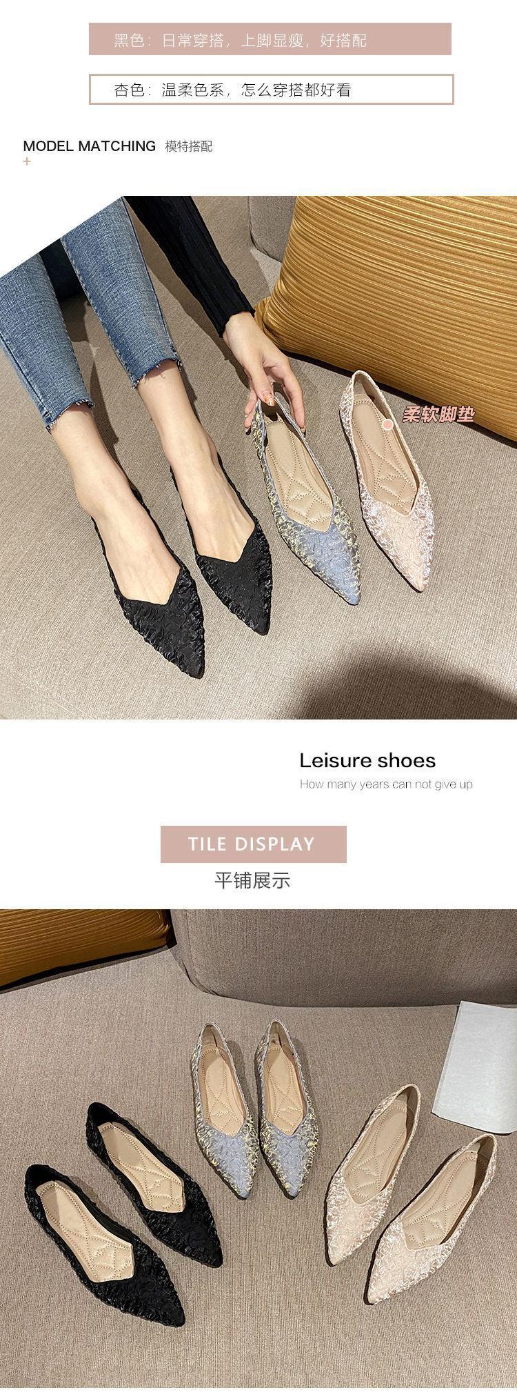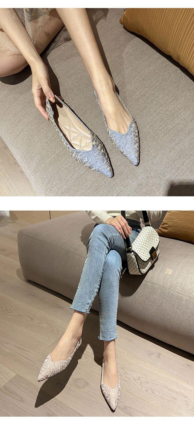 부드러운 이브닝 스타일 뾰족한 얕은 입 싱글 레이어 신발 여성용 플랫 2023 봄과 여름 새로운 간단한 임산부 완두콩 신발 작업 신발