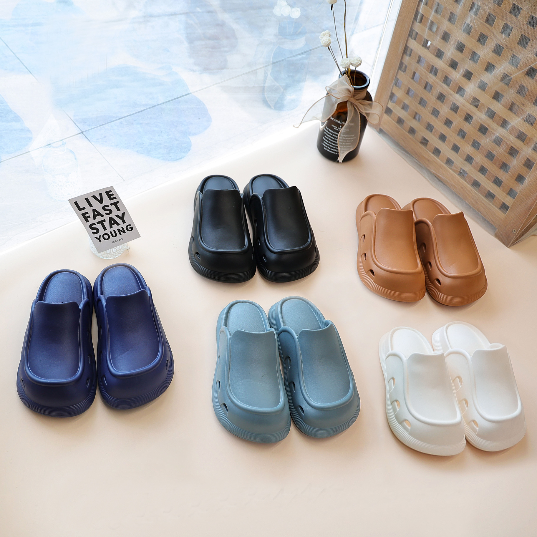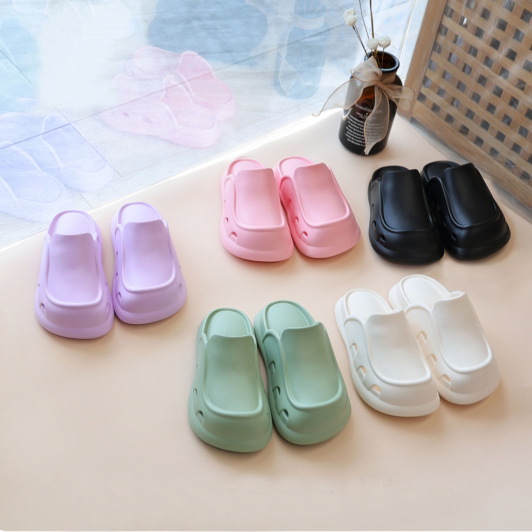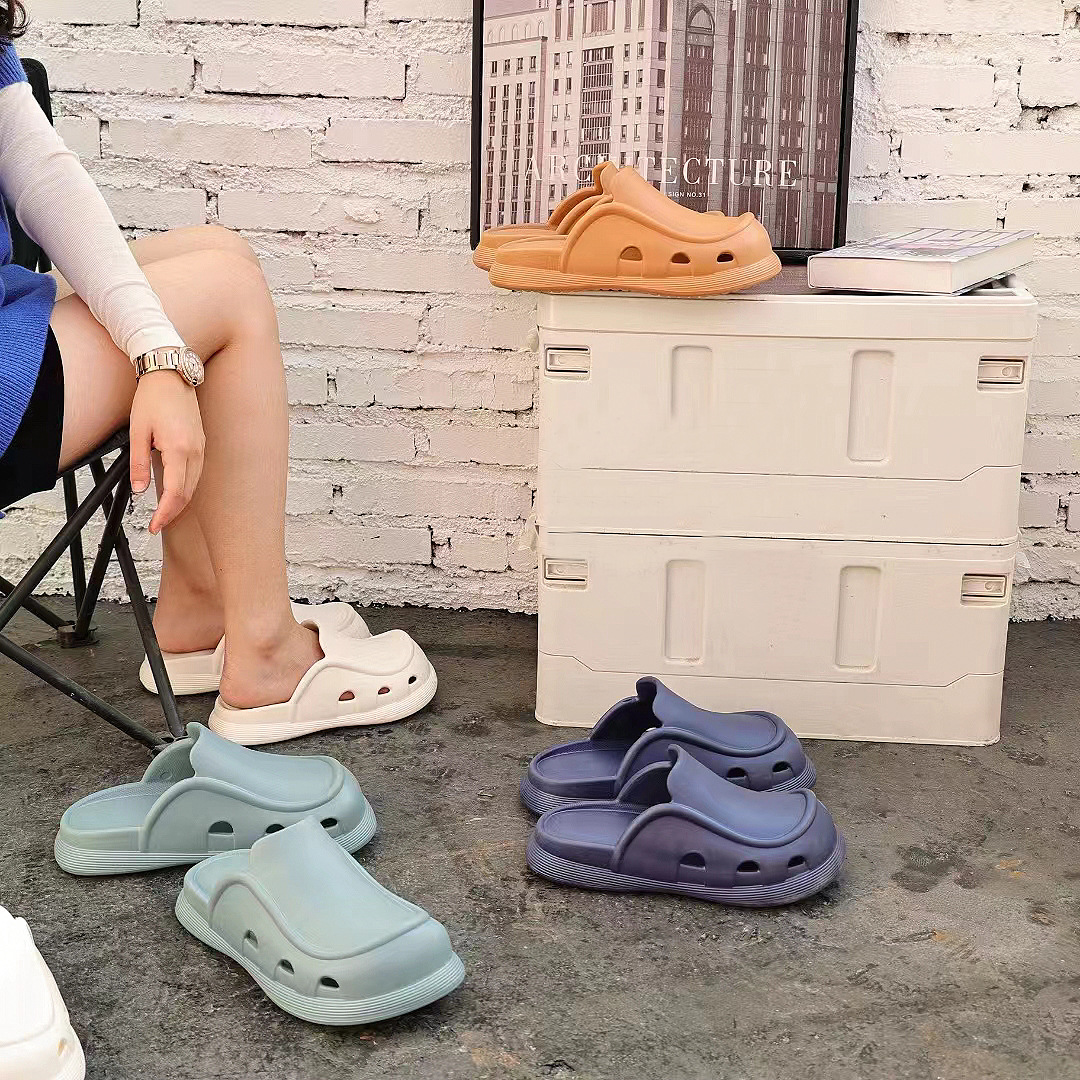 에바 슬리퍼 2023 커플을위한 슬립 온 신발 여름 새로운 여성의 간단한 두꺼운 밑창 야외 착용 홈 듀얼 사용