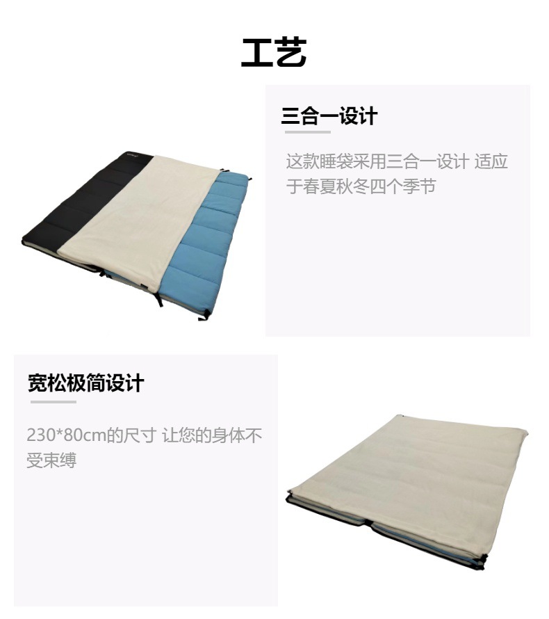야외 캠핑용 침낭, 사계절 사용 가능, 이중 연결 가능, 2인 여행 캠핑, 보온성 강화, 봉투형, 방한 기능