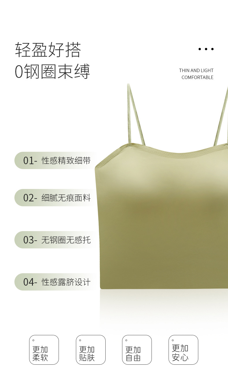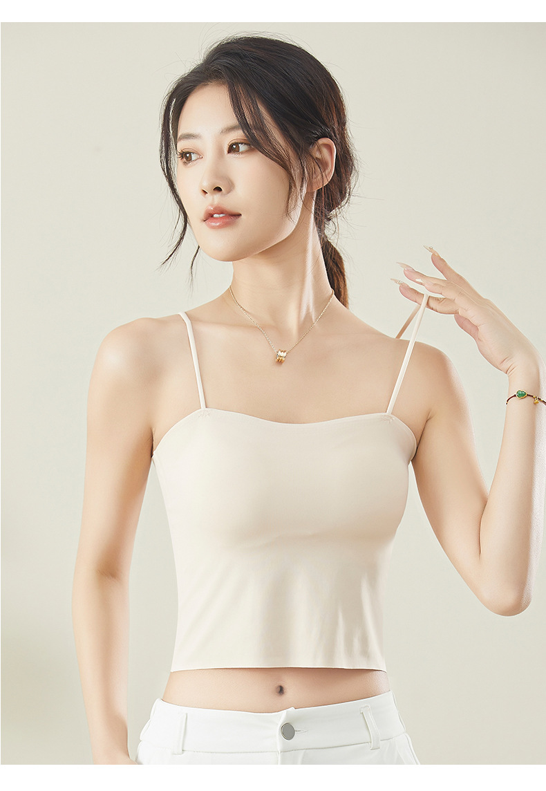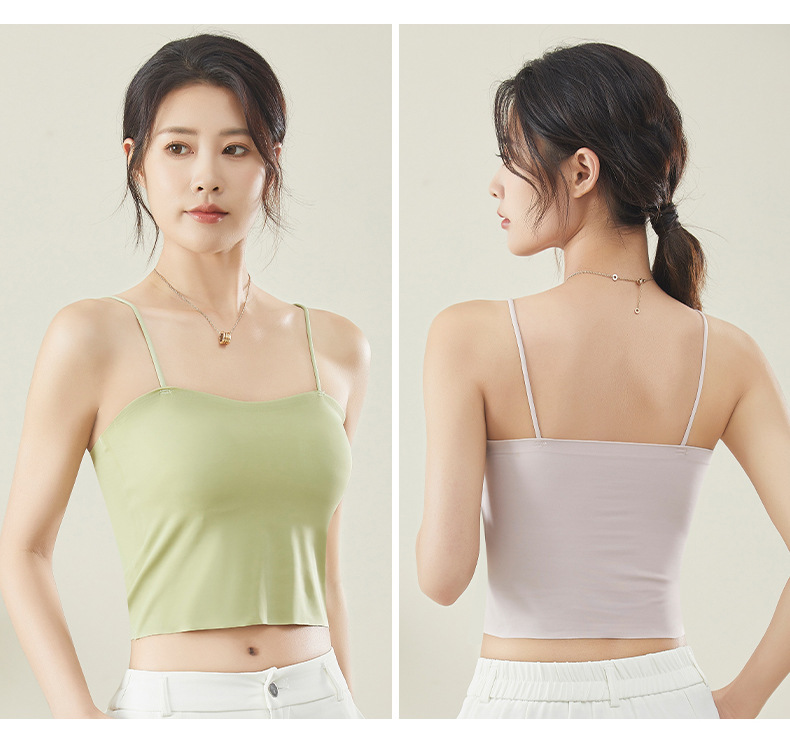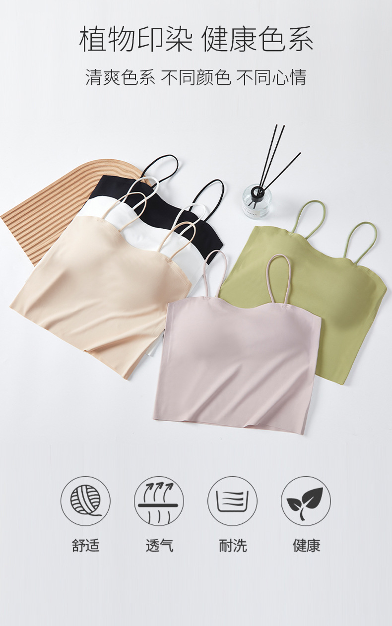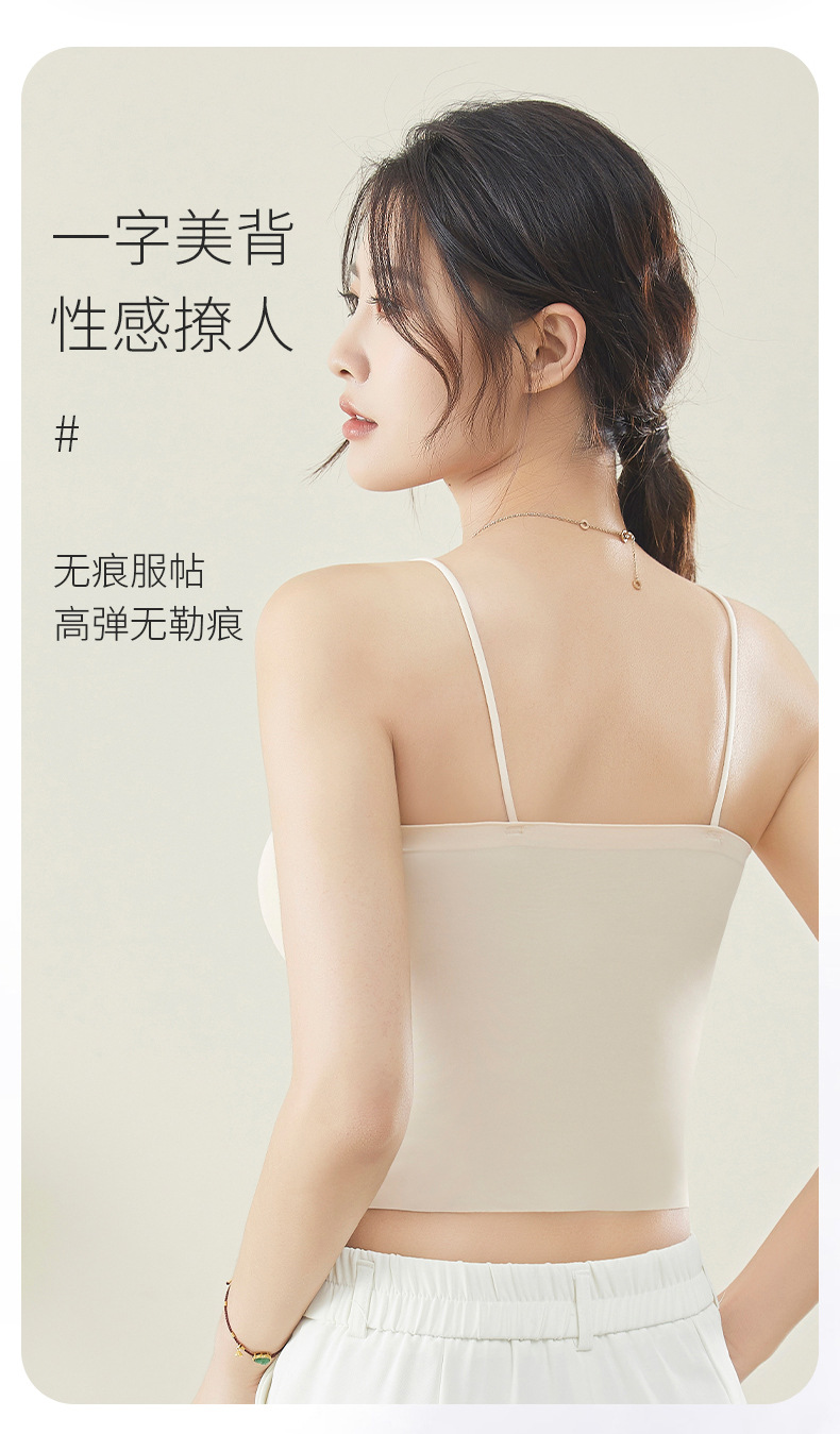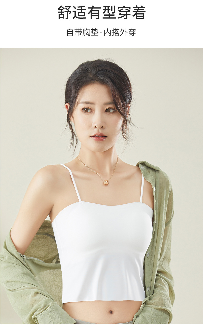 슬링 속옷 벨트 가슴 패드 아이스 실크 비 마킹 아름다운 백 마모 프리 브라 올인원 여성용 베이스 아우터 착용 흰색 조끼 여름