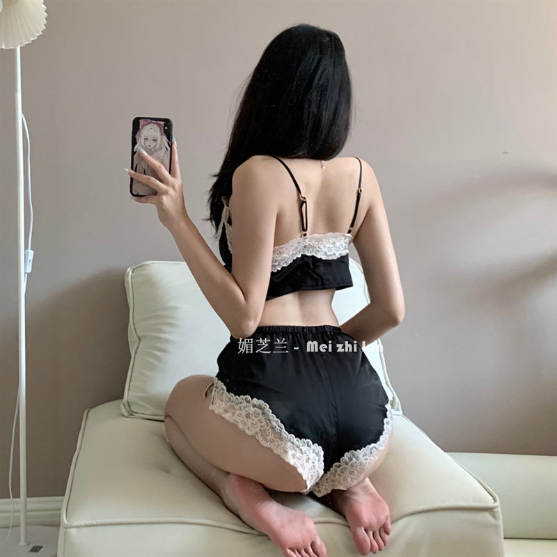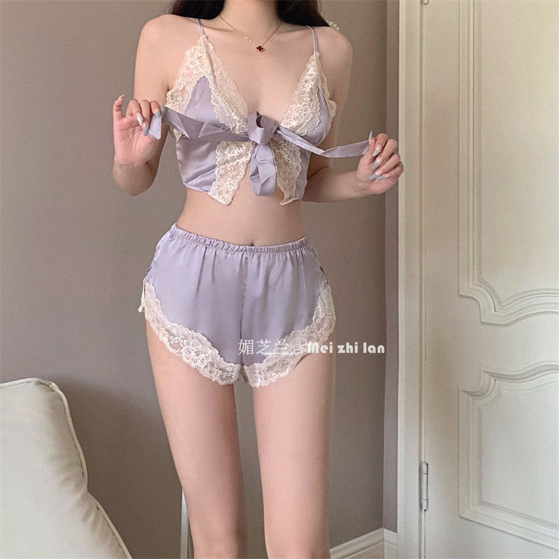 Mei Zhi Lan 새로운 섹시한 가정 옷 분할 잠옷 원피스 순수한 매력 통통녀 여자의 슬링 안티 실크 세트