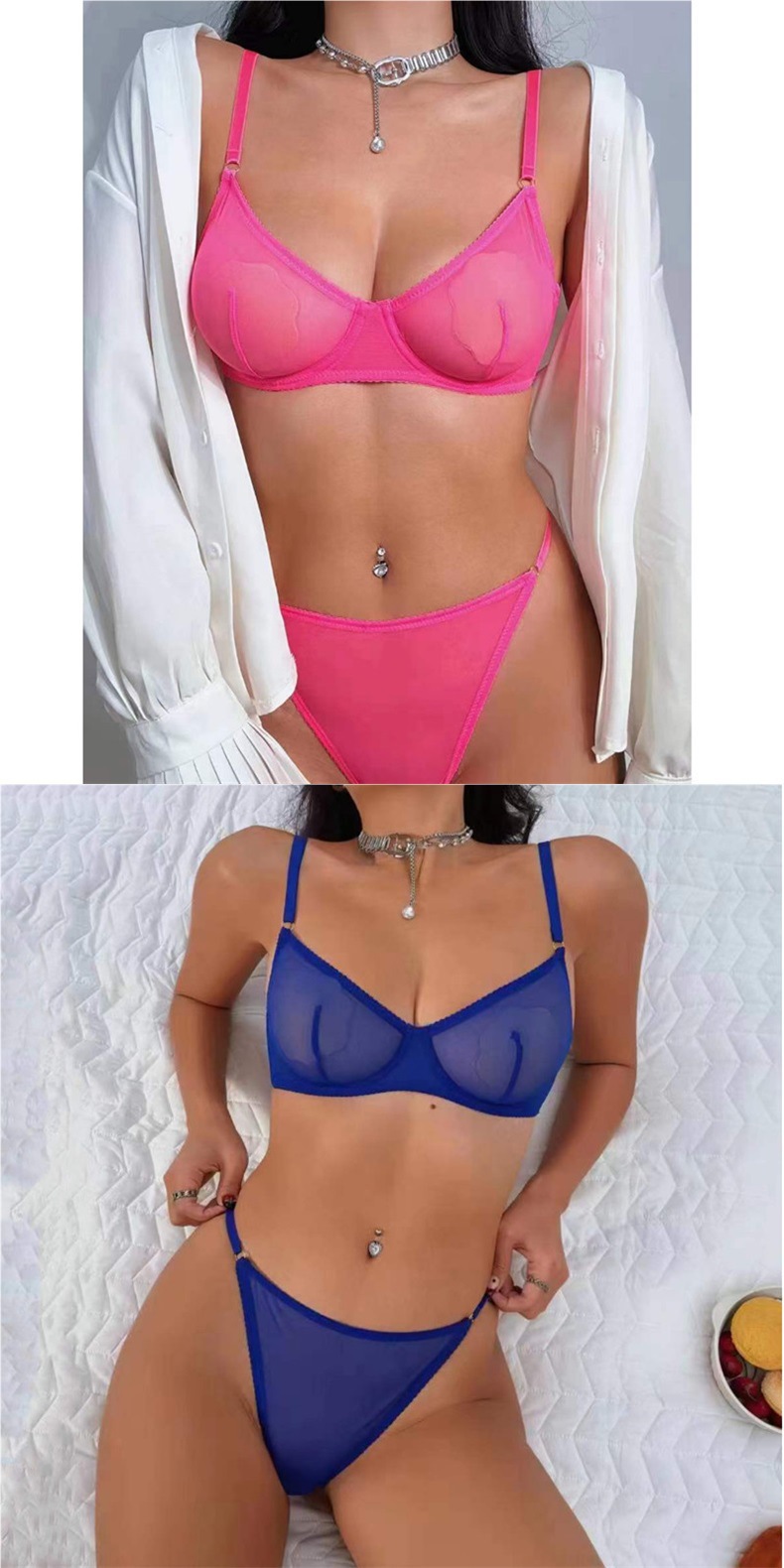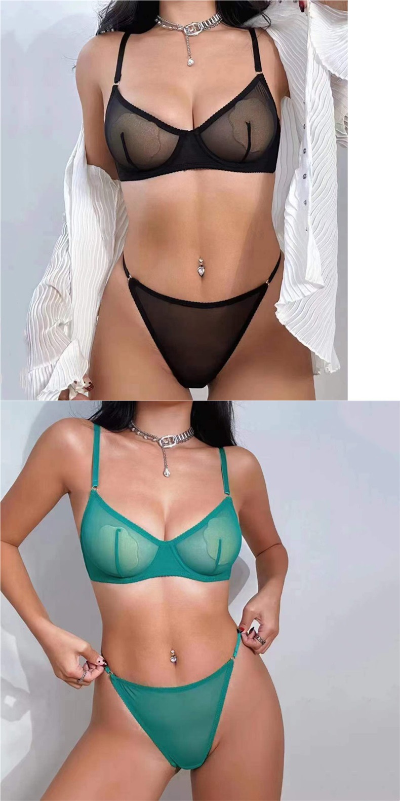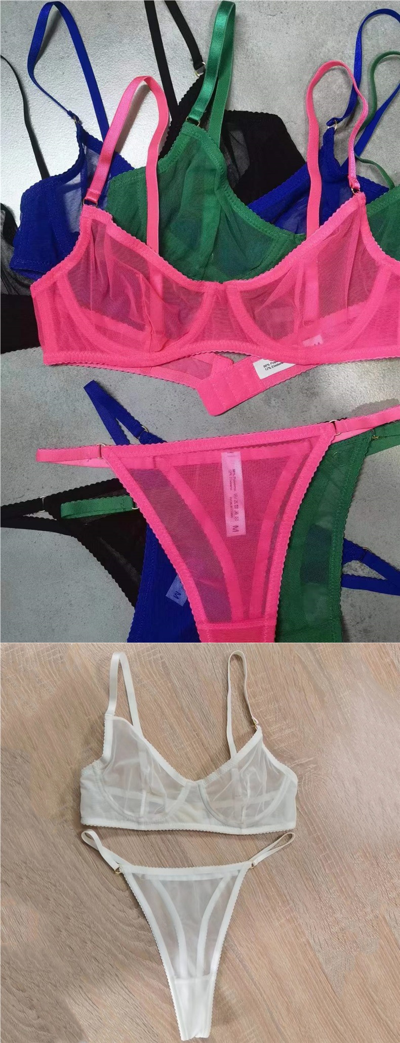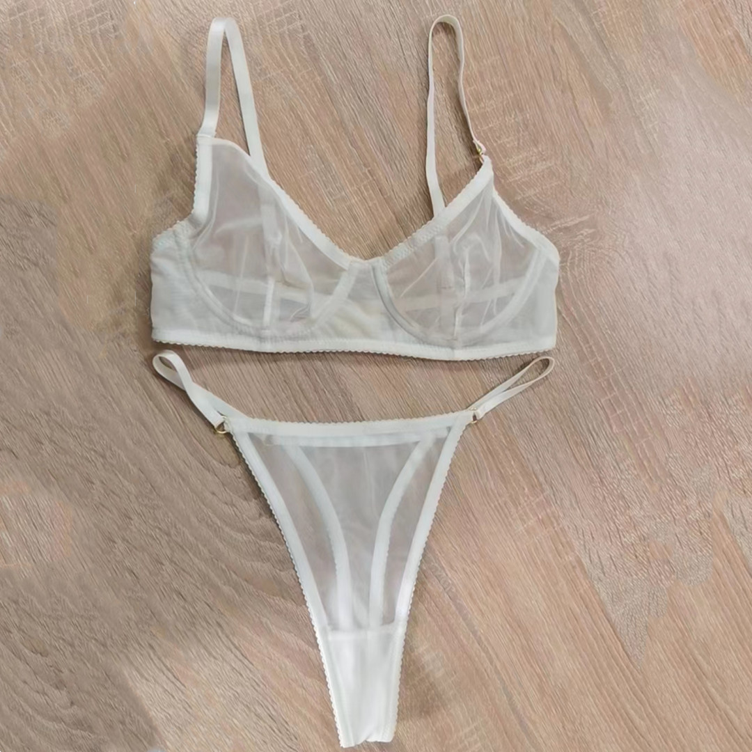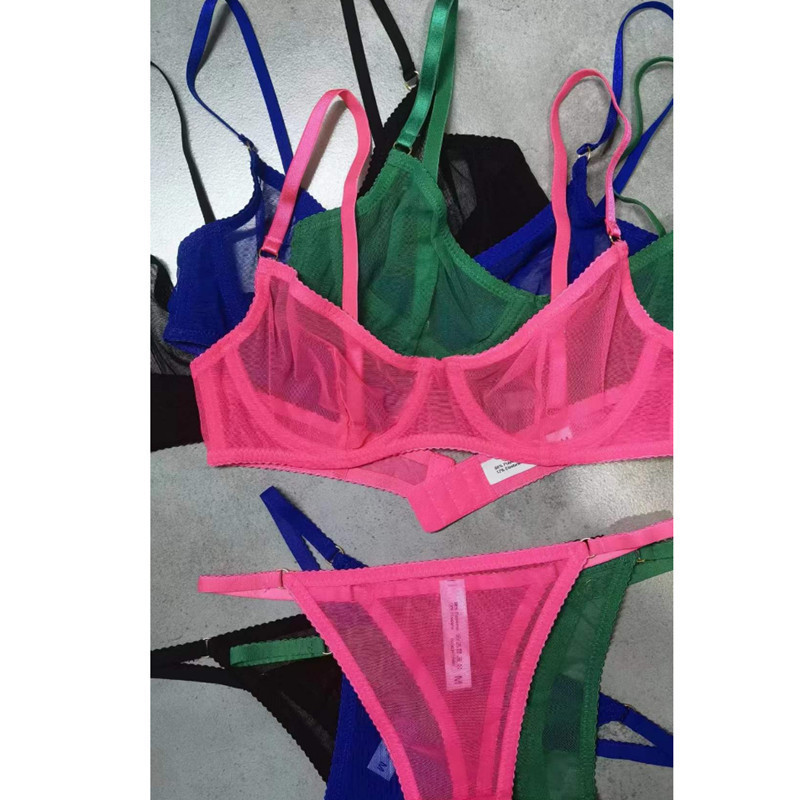 크로스 보더 새로운 울트라 씬 메쉬 브라 세트 큰 가슴 작은 섹시 투명 브라 해외 무역 끈 레이스 속옷