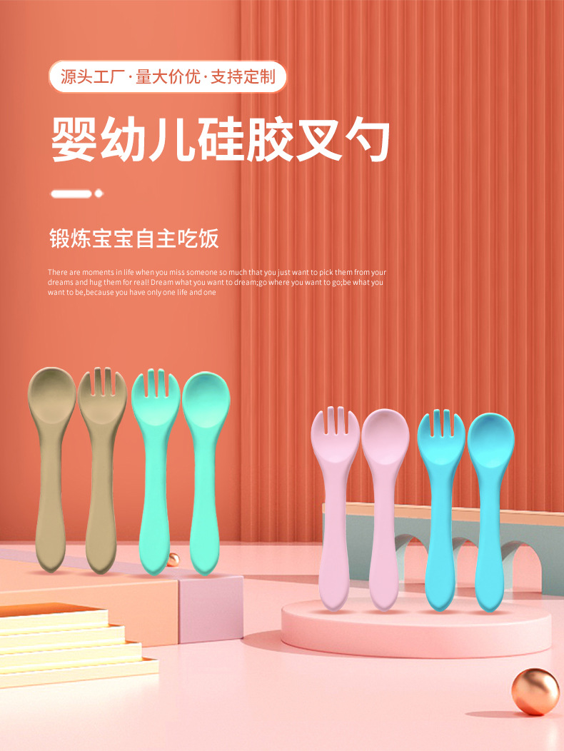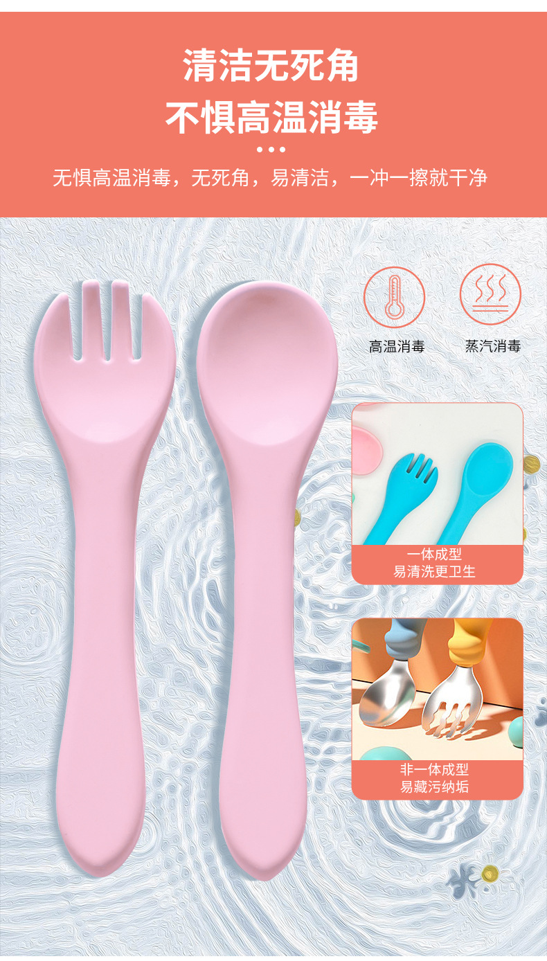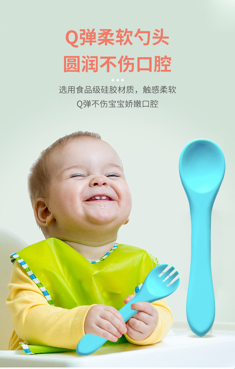 식품 학년 실리콘 베이비 스푼 베이비 보충 식기 실리콘 긴 손잡이 어린이 숟가락 수유 모성 및 유아 용품