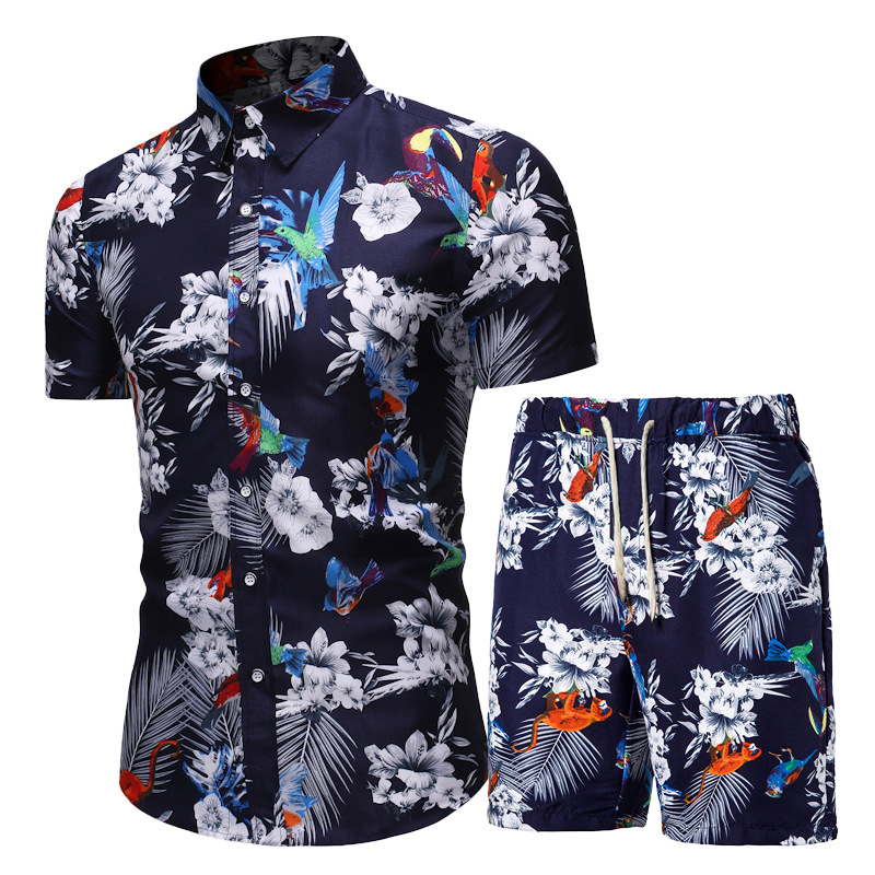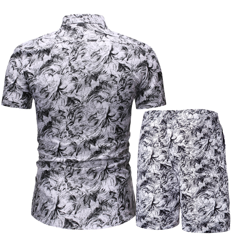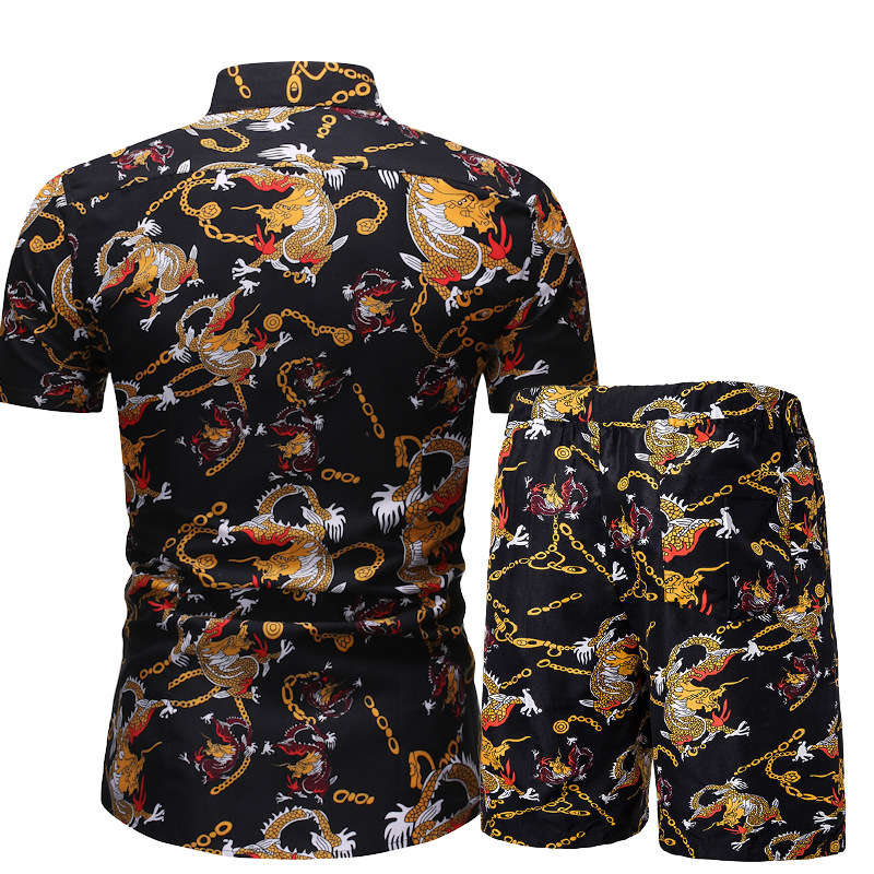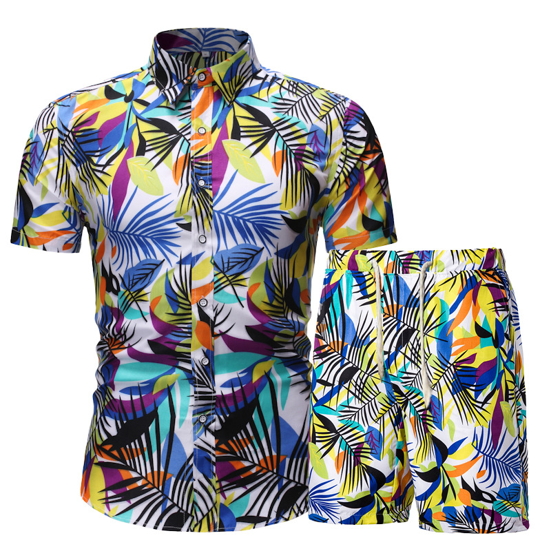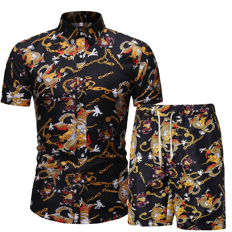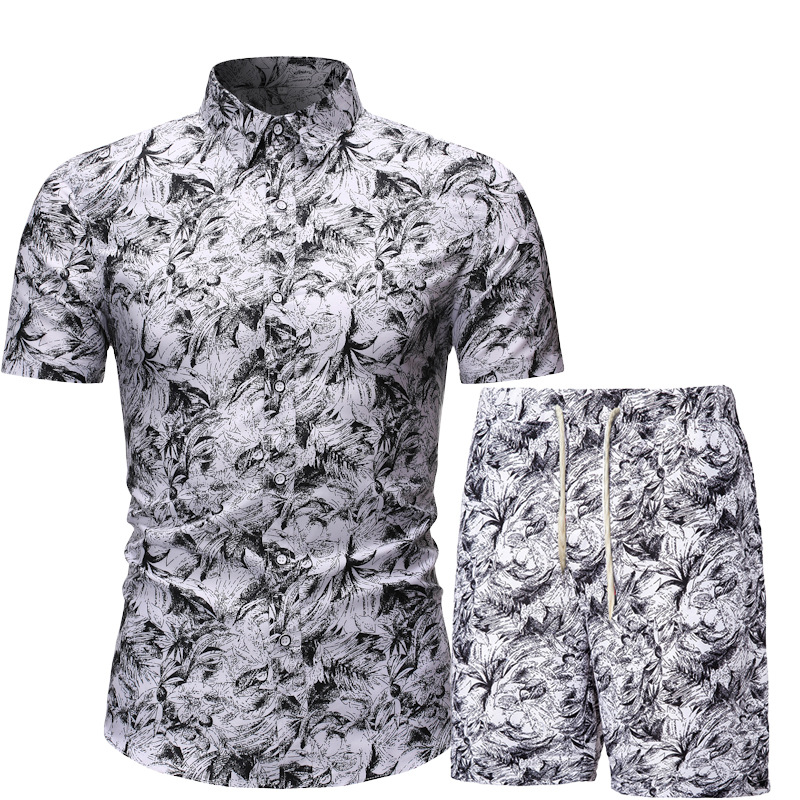 유럽과 미국 남성 캐주얼 스포츠 세트 대외 무역 크로스 보더 플러스 사이즈 느슨한 셔츠 반바지 비치 남자의 유럽 사이즈 셔츠