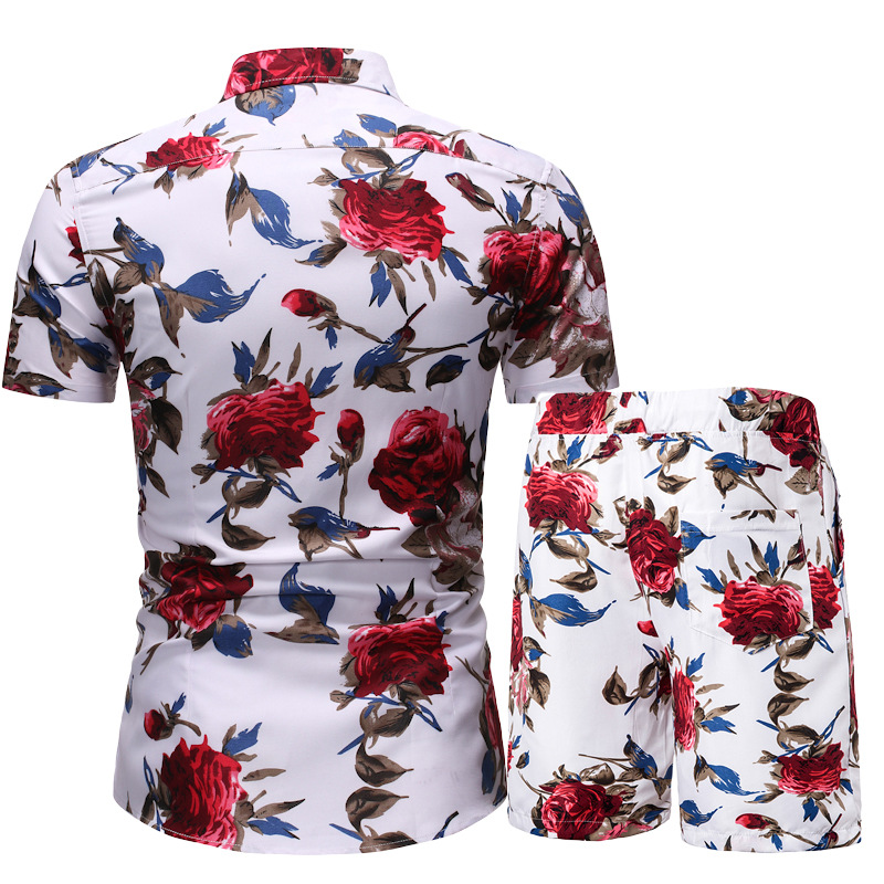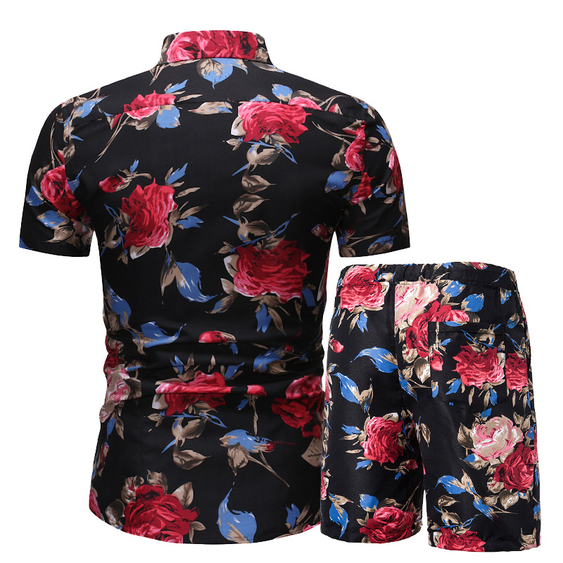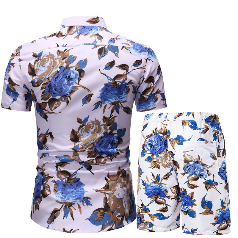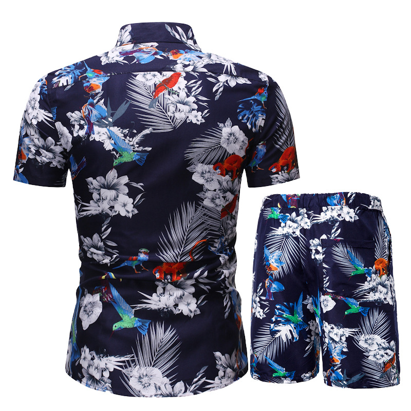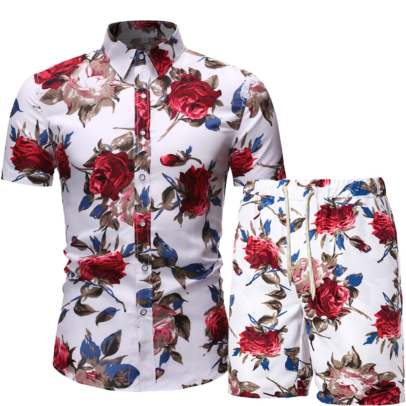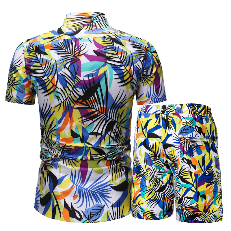 유럽과 미국 남성 캐주얼 스포츠 세트 대외 무역 크로스 보더 플러스 사이즈 느슨한 셔츠 반바지 비치 남자의 유럽 사이즈 셔츠